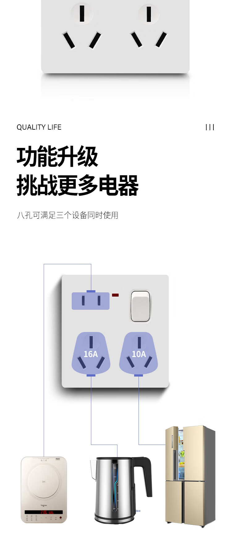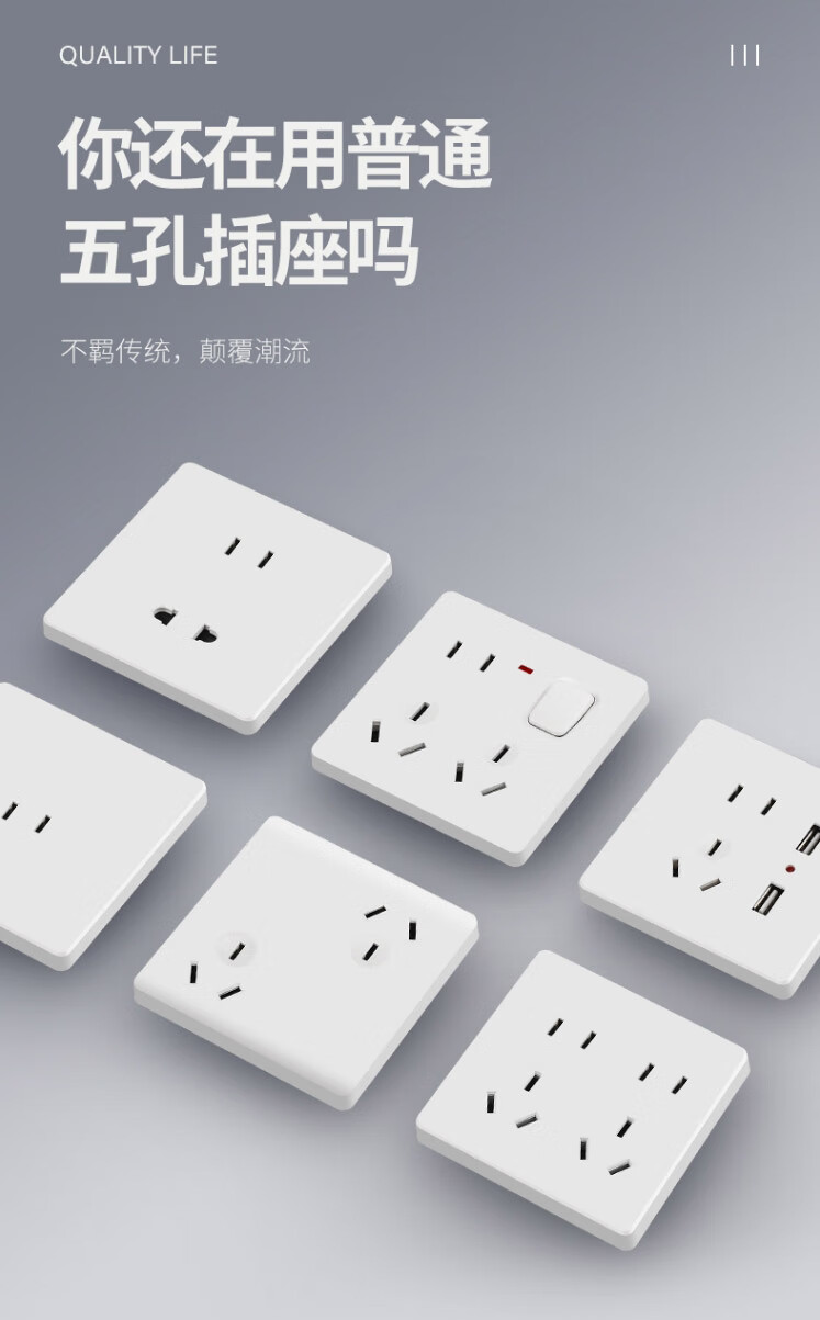 白色六孔插座86型错位暗装6孔三三插双10A面板两个六眼3斜三孔口