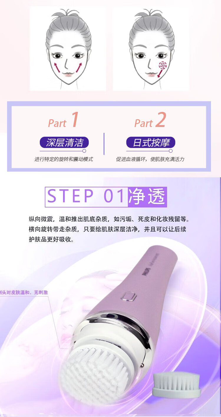 Philips Electric Facial Cleanser SC5340 Pore Cleaner Facial Washer SC2800 Skin Nourishing Device Deep Cleansing Essence Import as a Mother's Day Gift for Girlfriend Authentic RQ575 Brush Head Includes Base + Brush Head BSC111