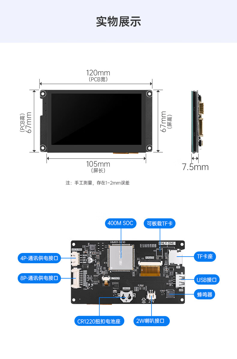 Punctual Atomic HMI 4.3-inch serial screen touch screen TFT LCD liquid crystal screen M series capacitive display HMI01-0430 800480 IPS version