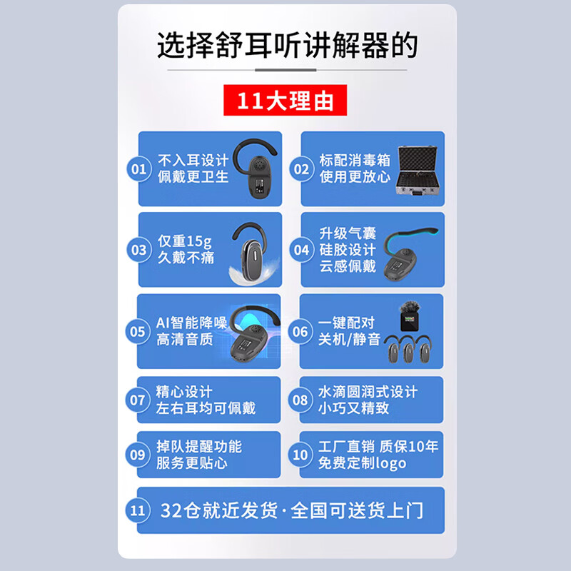 Mountains and rivers, comfortable to listen to, high-end, long-lasting wireless interpreter, one-to-many Bluetooth headsets, government conferences, factory exhibition halls, tour guides to explain teaching and training, exclusive version of ShuerTing 1 to 50 set (team of 50 people, ready to use after receipt)