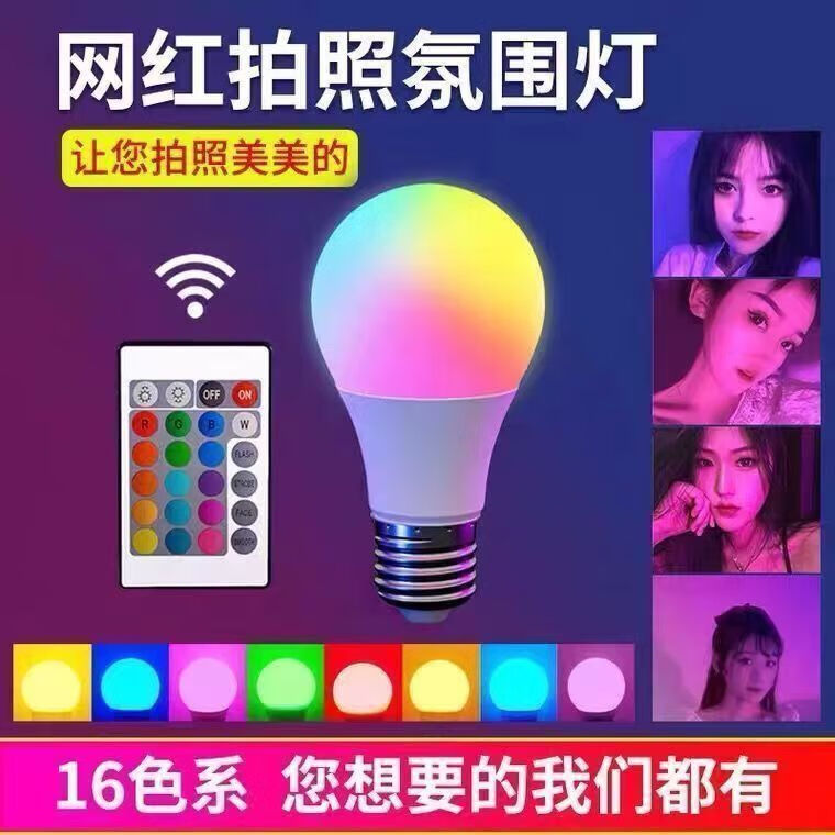 LED light bulb, photo atmosphere light, colorful light, internet red, blue and purple background light, couple remote control, romantic atmosphere, mood night light/warm light, home bedroom incandescent lamp, warm light incandescent lamp 5W2 pack (limited time sale)