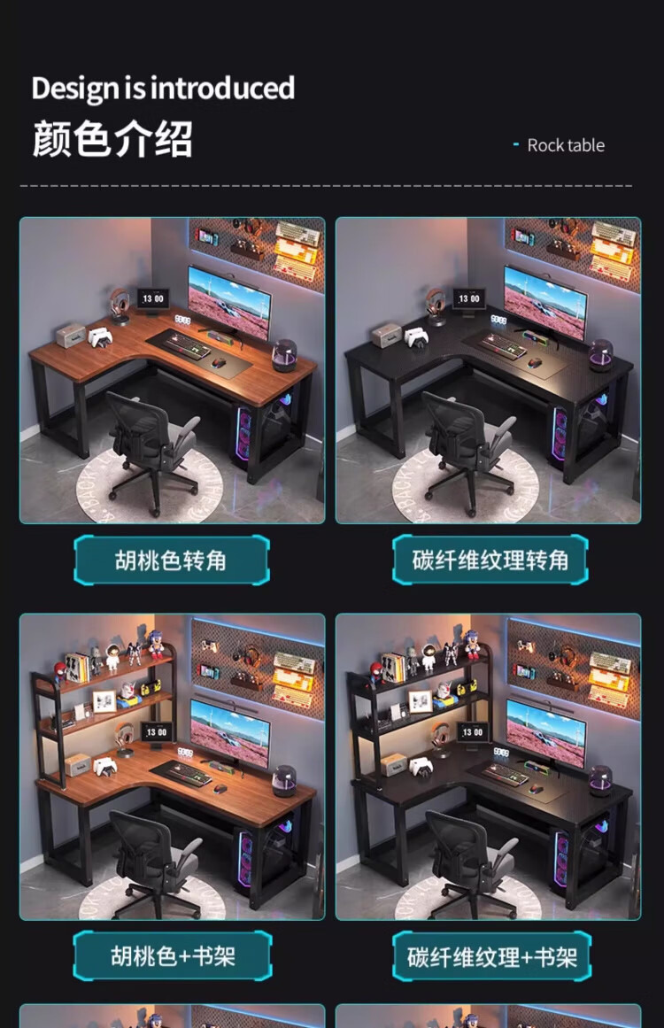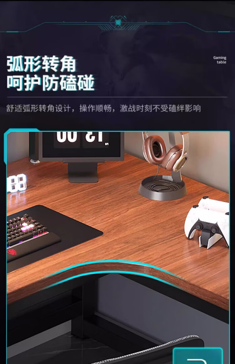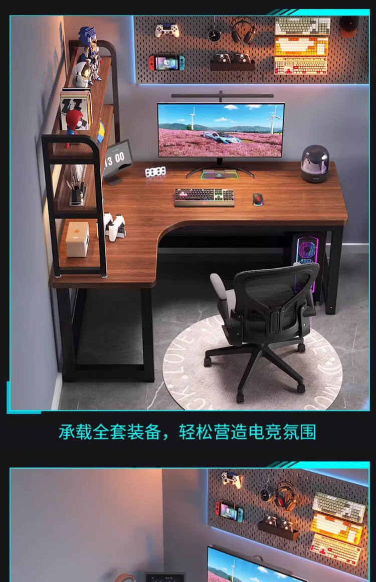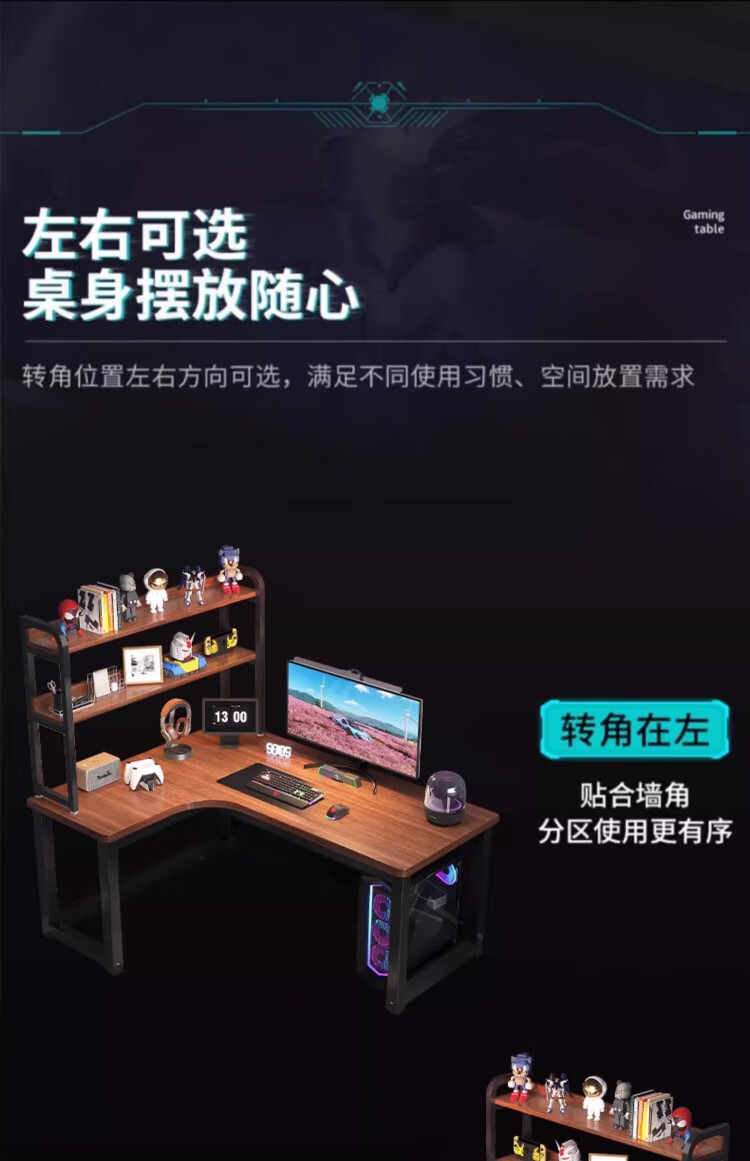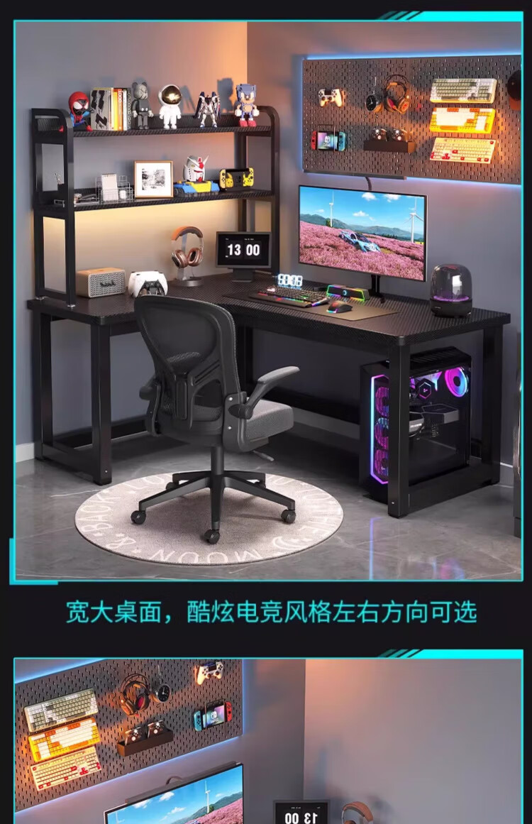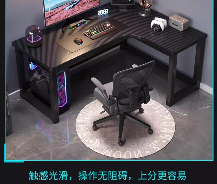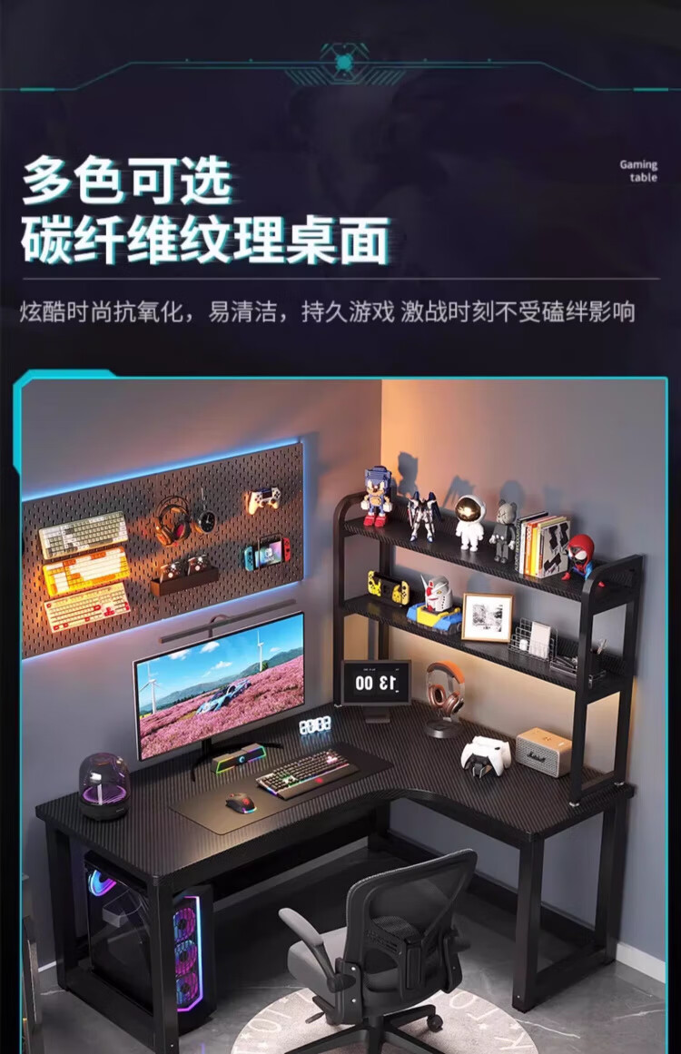 Huanglu Corner Computer Desktop Competition Desktop Home Double Desk Stand Bedroom Corner Table Desk Study Table Carbon Fiber Black Right Corner 120*80cm