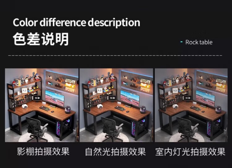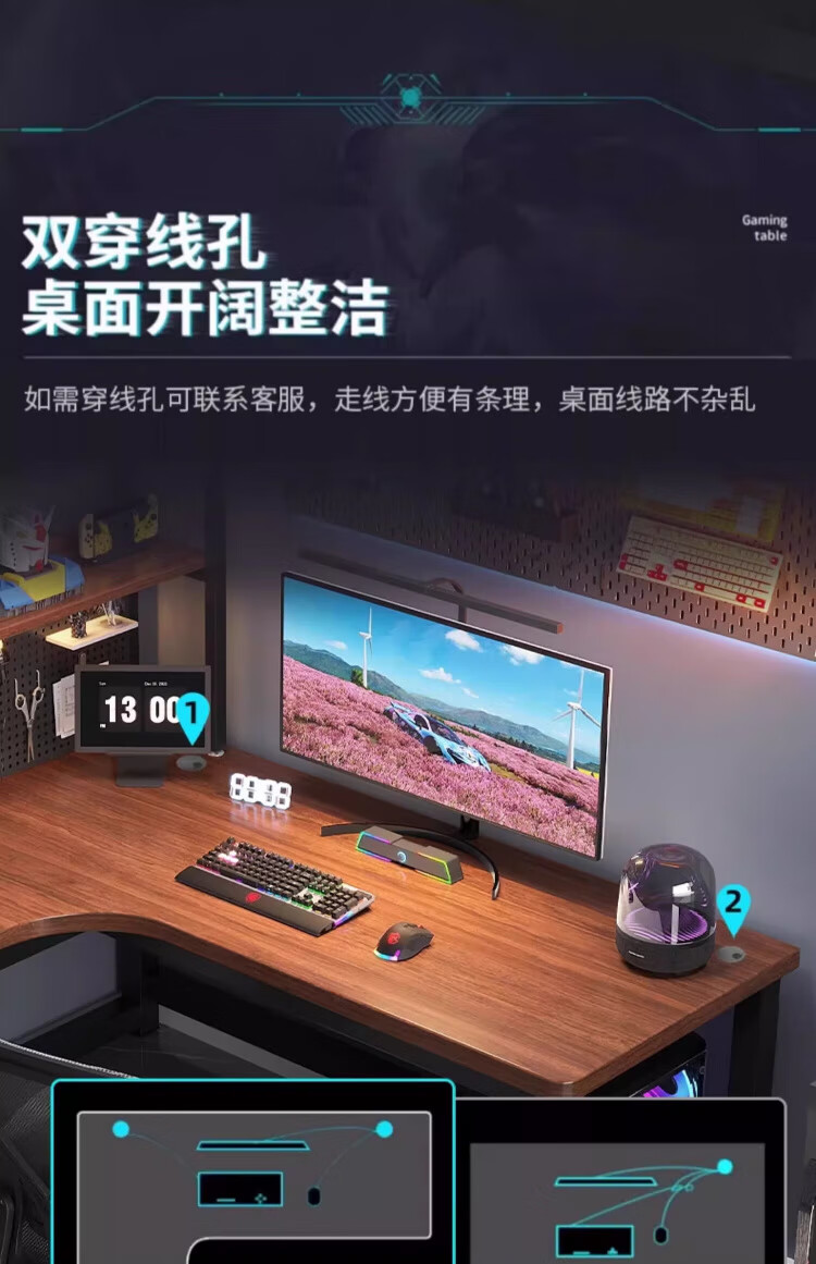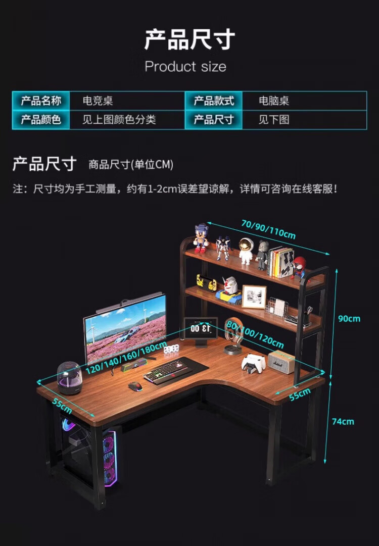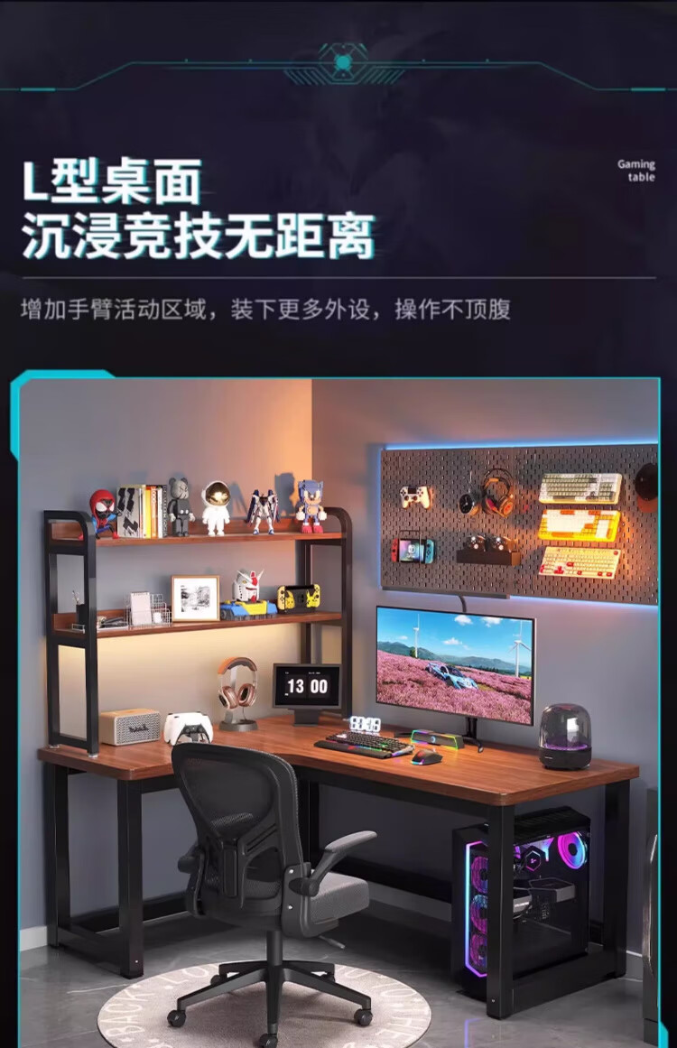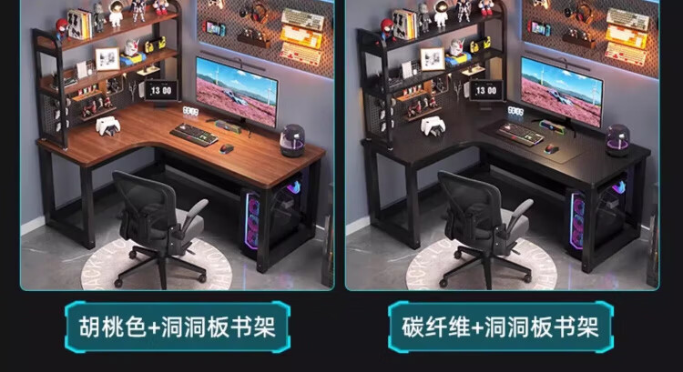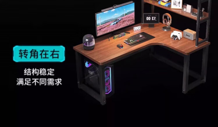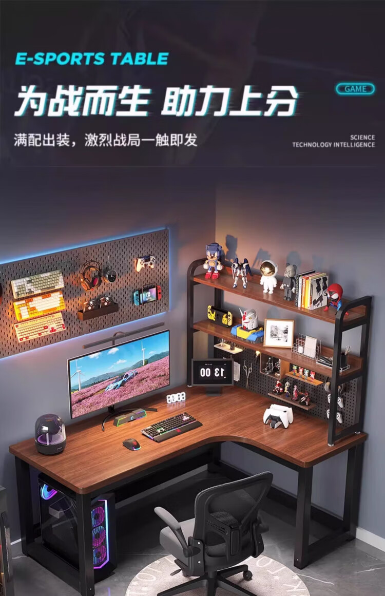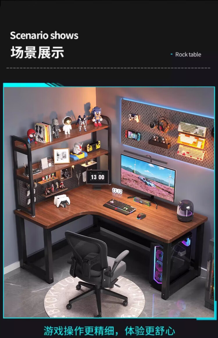 Huanglu Corner Computer Desktop Competition Desktop Home Double Desk Stand Bedroom Corner Table Desk Study Table Carbon Fiber Black Right Corner 120*80cm
