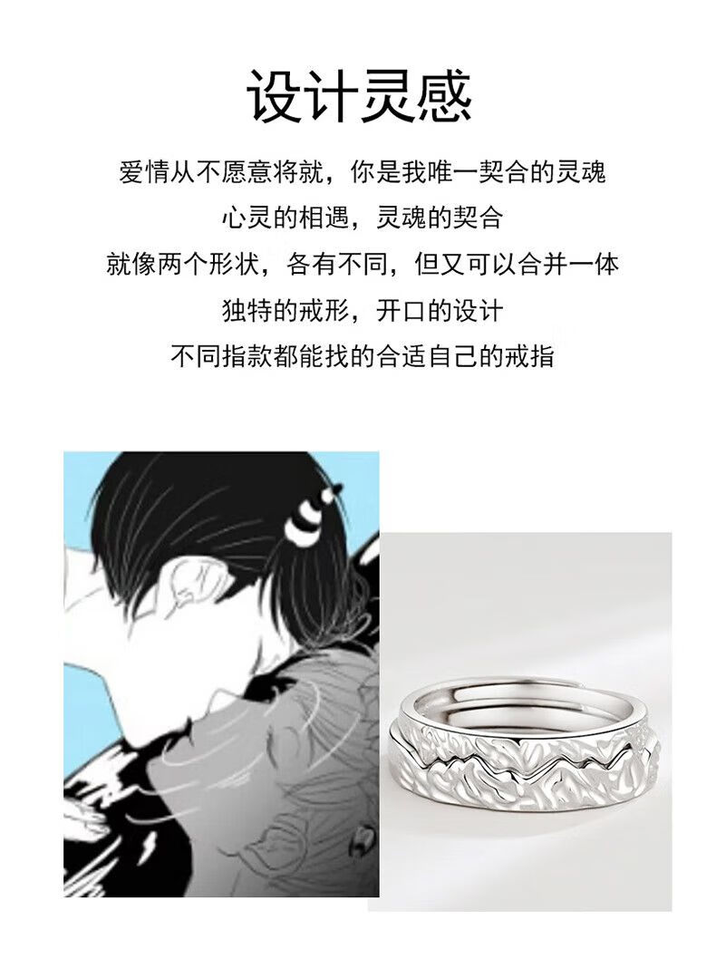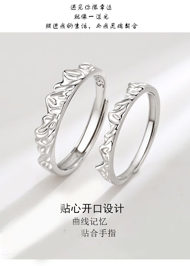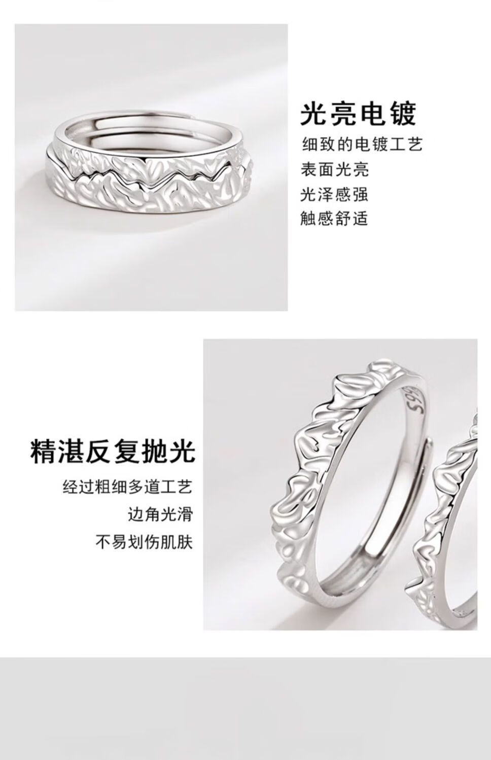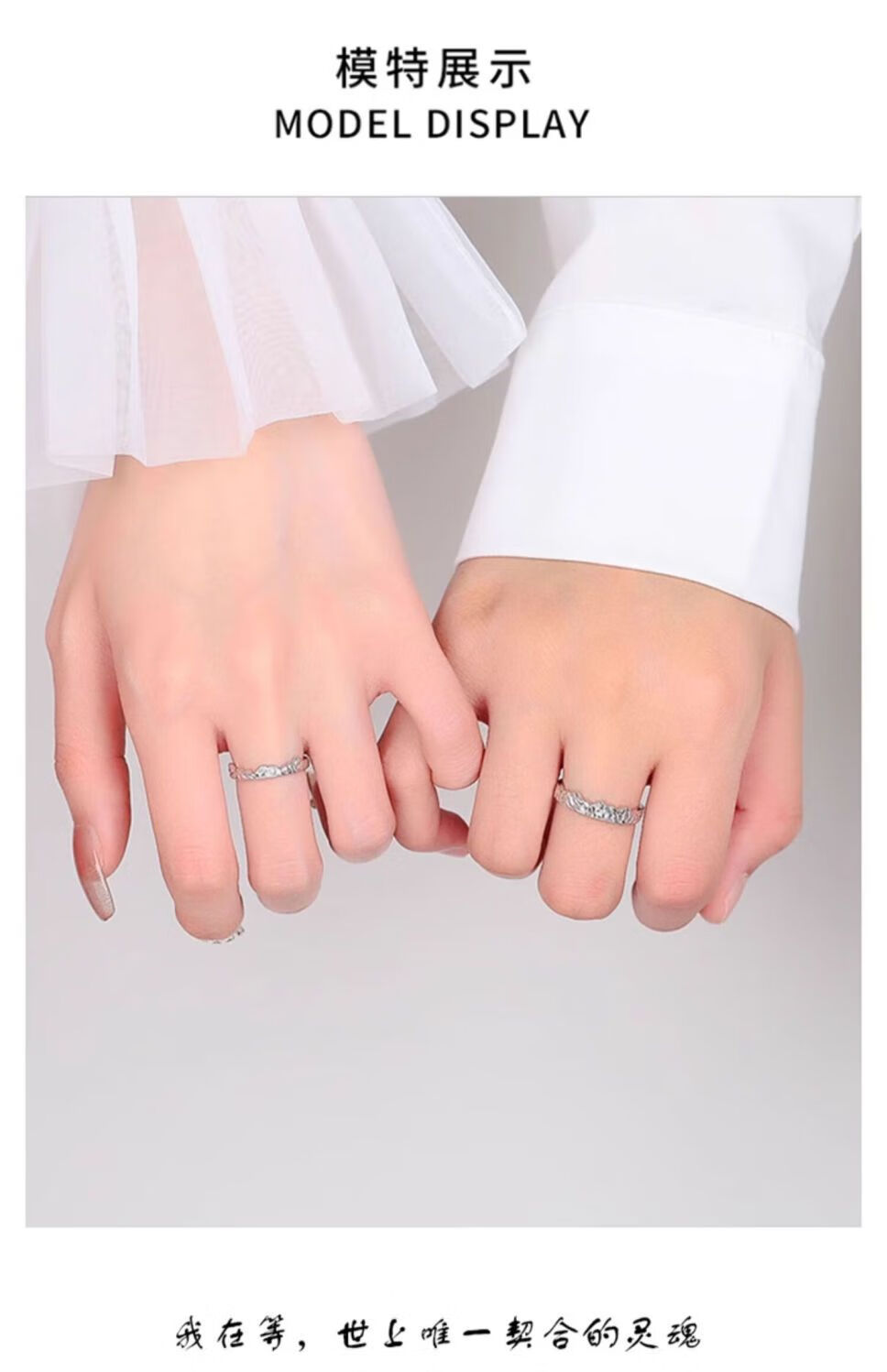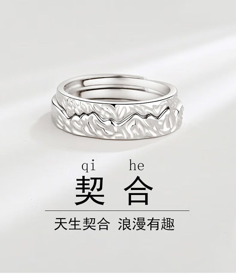 Lao Fengxiang's pure silver two-in-one ring, men's and women's couple rings, Valentine's Day birthday gift for boyfriend and girlfriend, pure silver two-in-one ring, matching ring