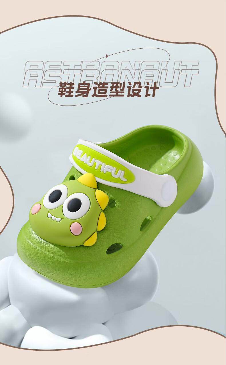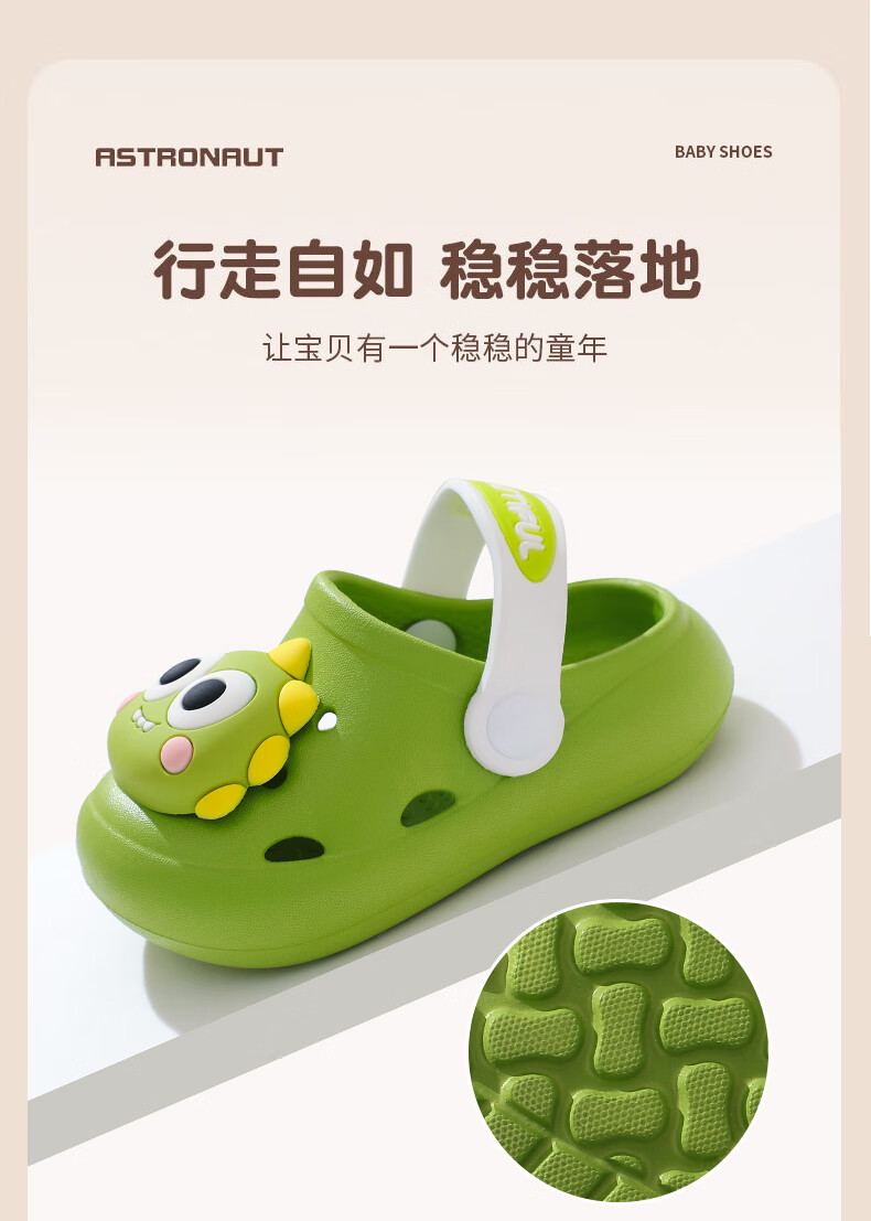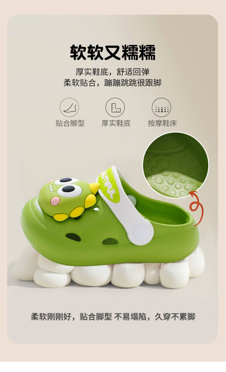 Children's Crocs Summer Soft Sole Anti-Slip Baby Boys and Girls Cartoon Indoor and Outdoor Baby Beach Sandals and Slippers Beach Green 16