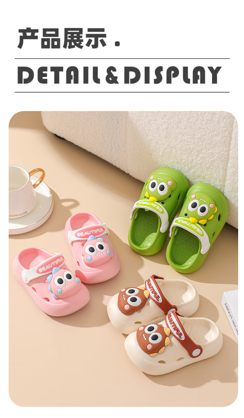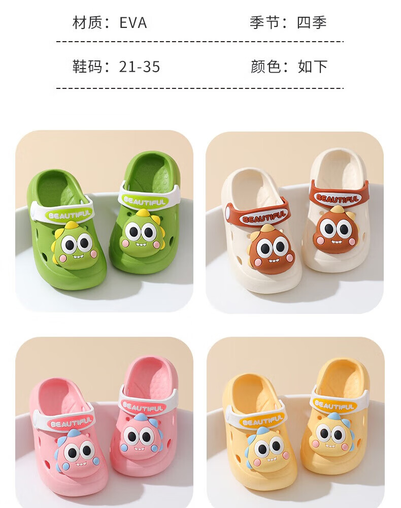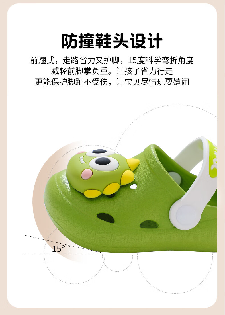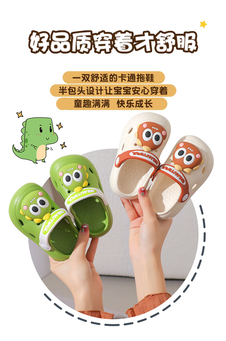 Children's Crocs Summer Soft Sole Anti-Slip Baby Boys and Girls Cartoon Indoor and Outdoor Baby Beach Sandals and Slippers Beach Green 16