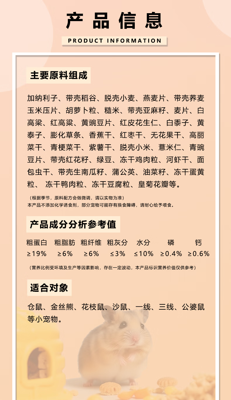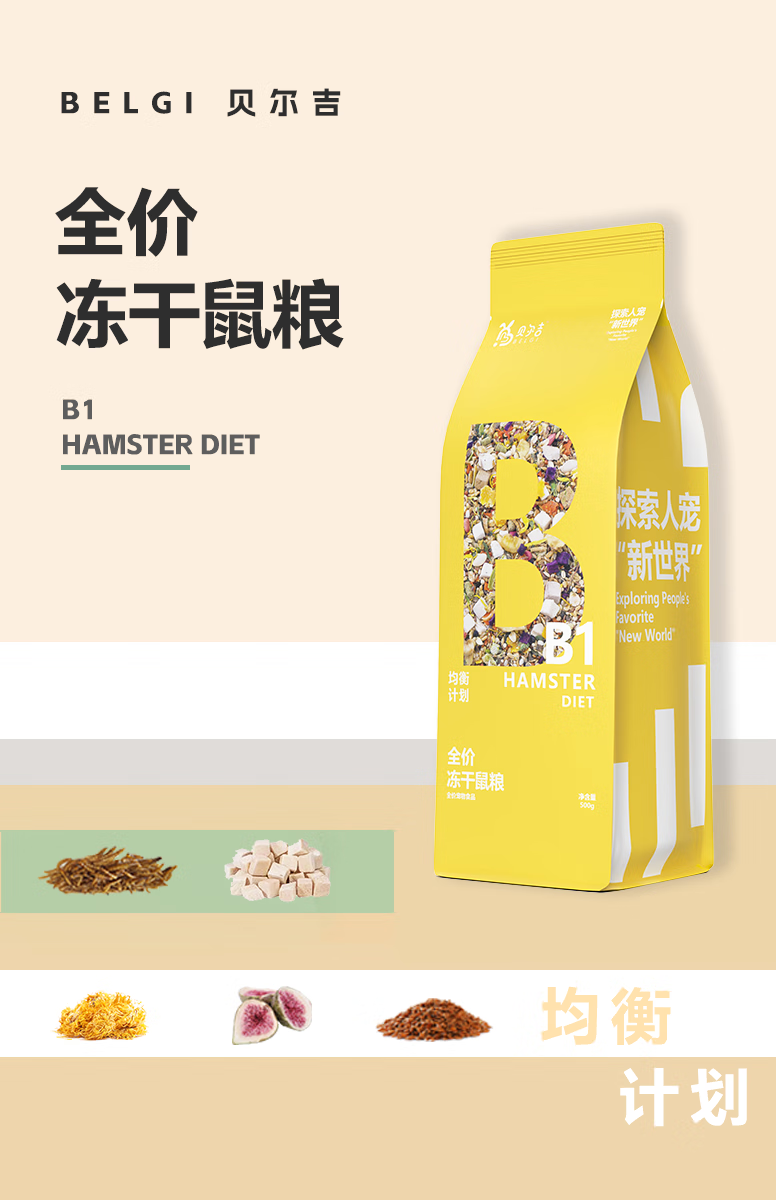BELGI full-price freeze-dried rat food, high-quality nutritional feed, snack set, hamster food, golden bear staple food B2-salmon freeze-dried nut food 500g
