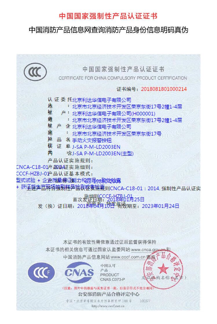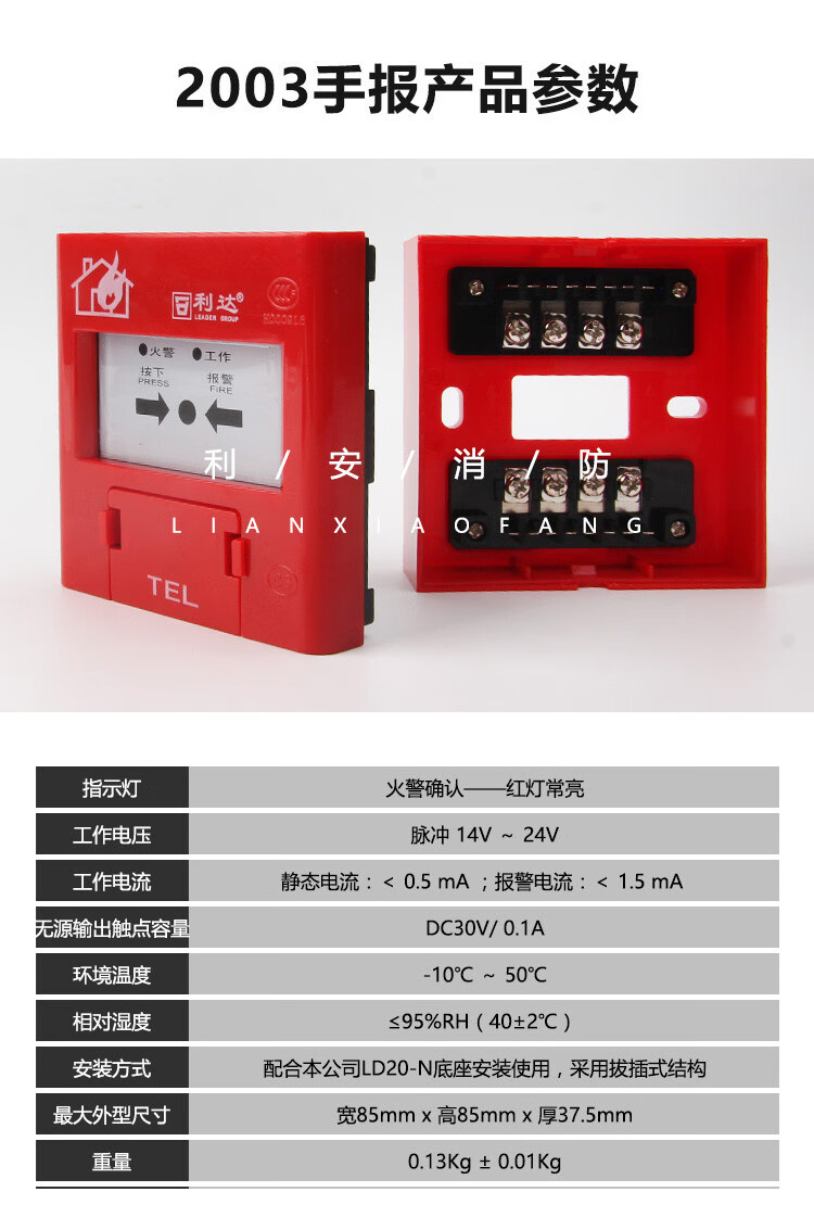 Lida Beijing hand alarm LD2003EN fire smoke detector emergency switch manual fire alarm button LD2003EN hand alarm + base does not include key