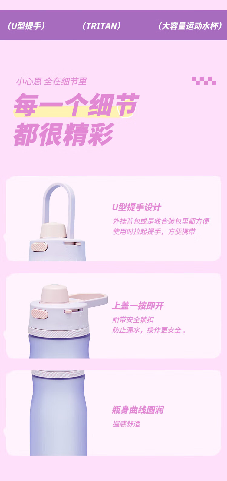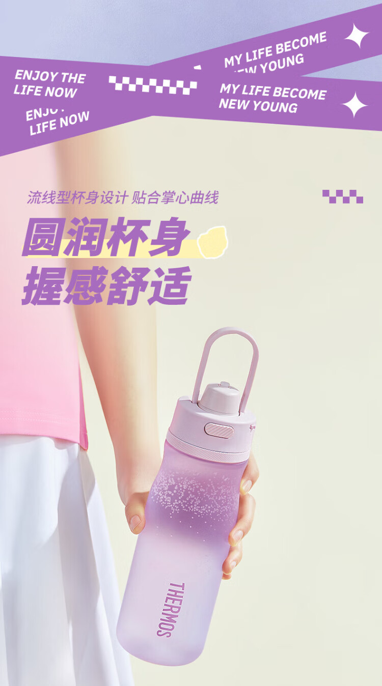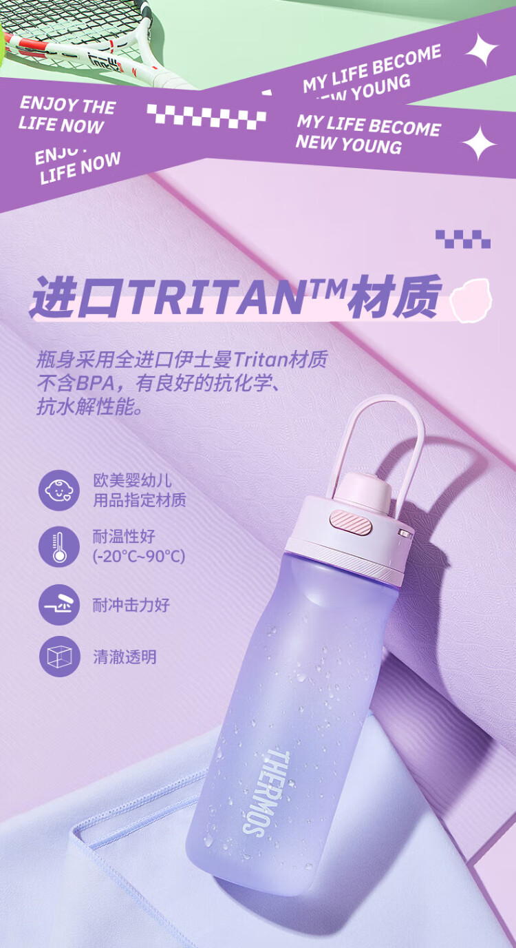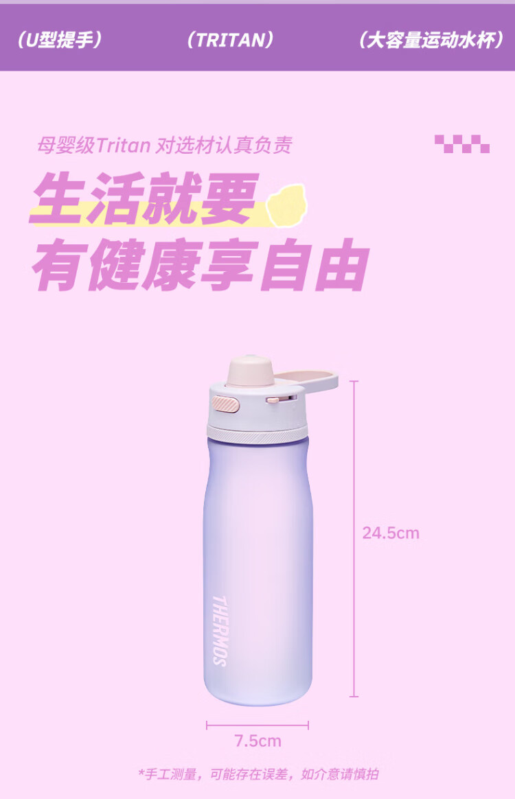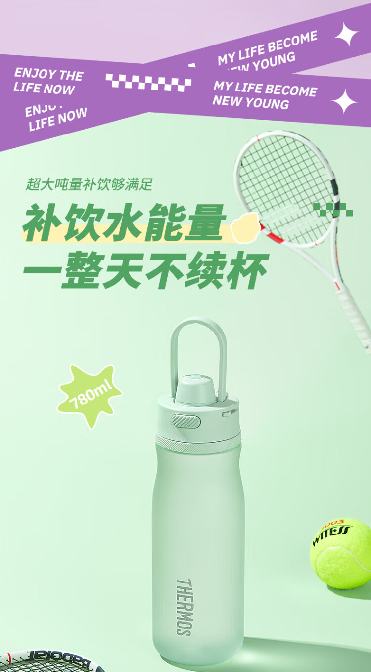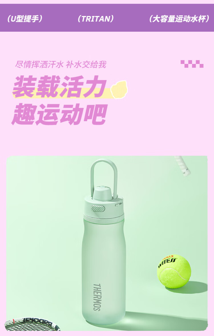 Thermos Tritan plastic summer sports water cup for men and women large capacity cup birthday gift TCSU black 780ml