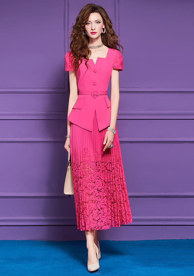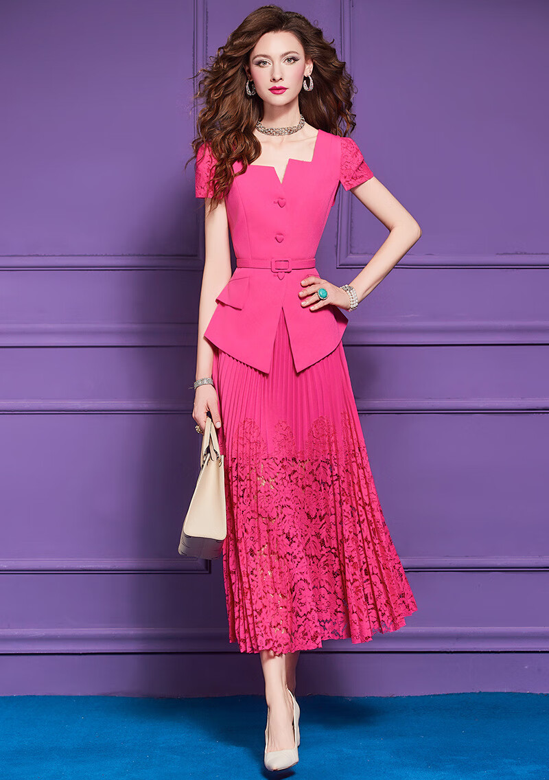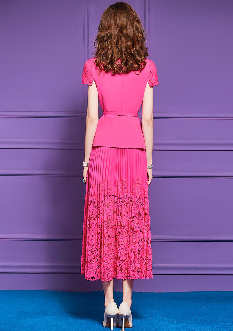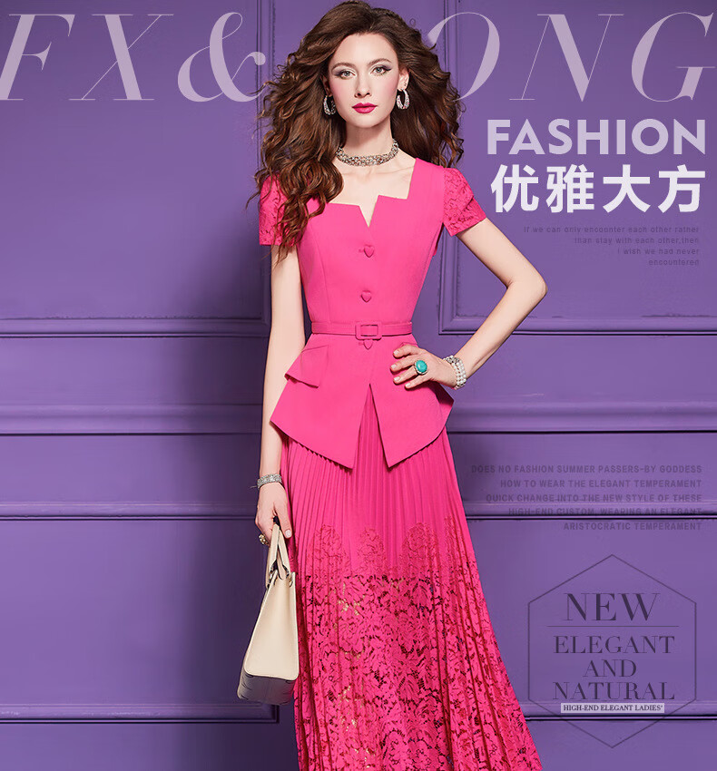 Feimeng Yigan's age-reducing set of women's summer design ruffled waist top lace pleated skirt goose yellow M