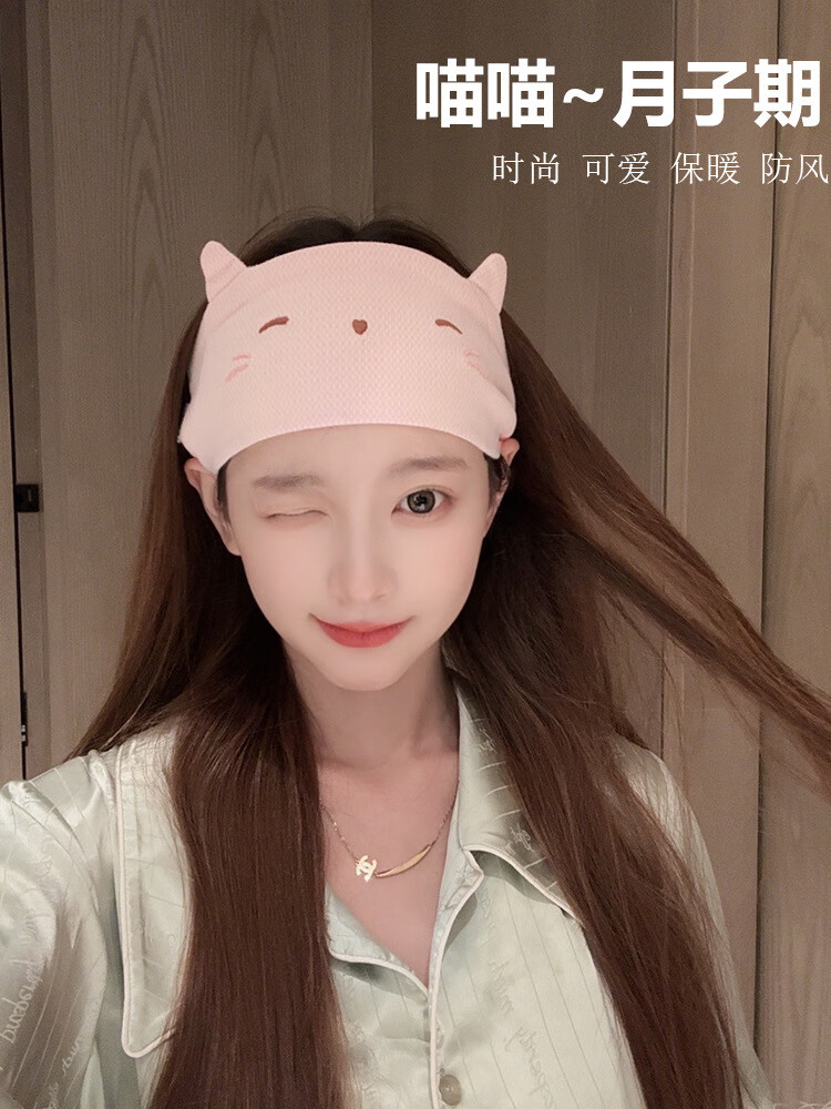 Jingyouyu confinement headband for women in summer thin maternity forehead protector headscarf air-conditioned room windproof maternity confinement hat postpartum spring and autumn blue elephant one size