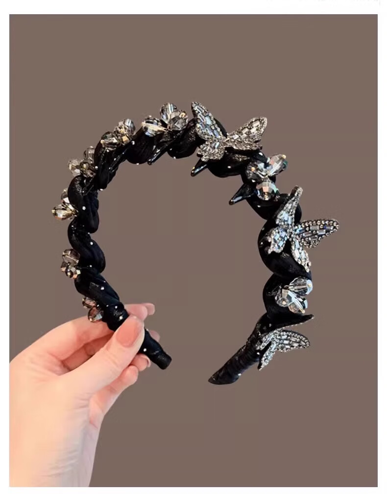 Idel 2025 new Paris Princess Butterfly Hair Hoop for women, high-end, fashionable hairpin for face wash, super nice headband F3427 double rhinestone butterfly headband