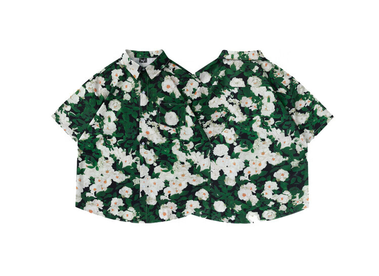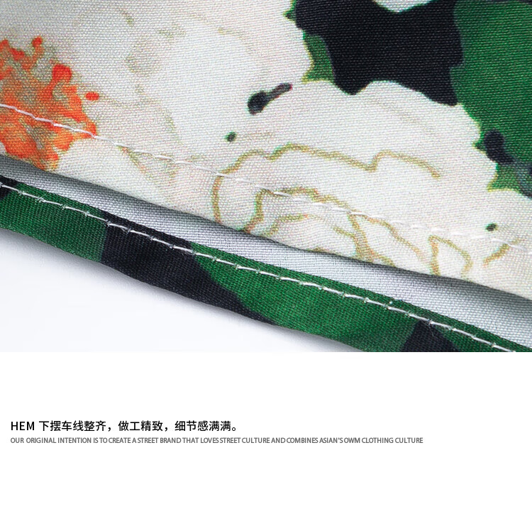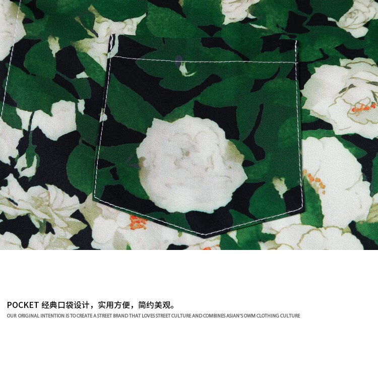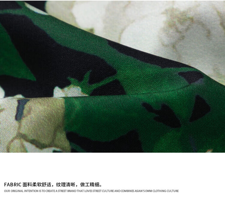 Jiangong flower shirt men's Hawaiian casual Hong Kong style men's floral shirt short-sleeved shirt summer loose beach vacation jacket oil painting flower shirt丨green 2XL (recommended 170-180CM) loose version