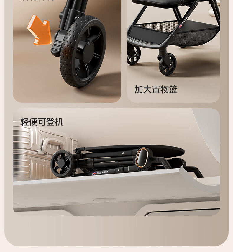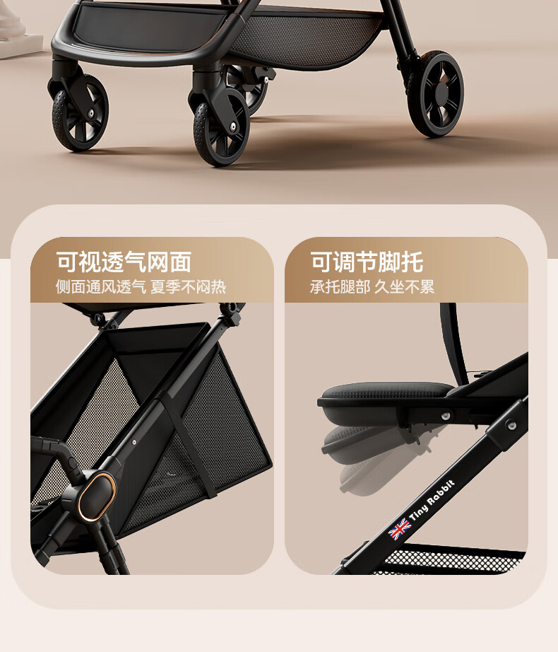 Tinyrabbit is a lightweight baby stroller, a pocket stroller that can board airplanes and station wagons, and is a one-touch baby walker that closes the car. High-end black. Can sit or lie down. Just lift and go.