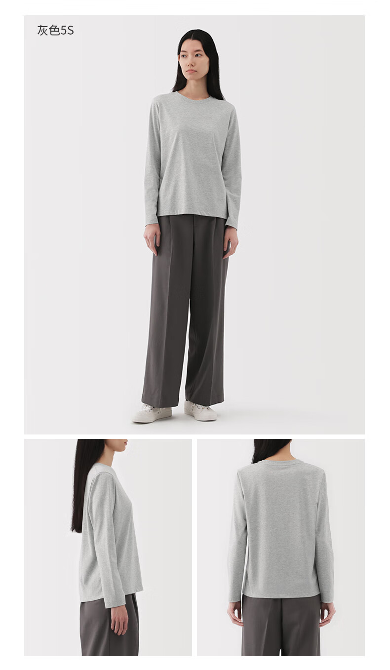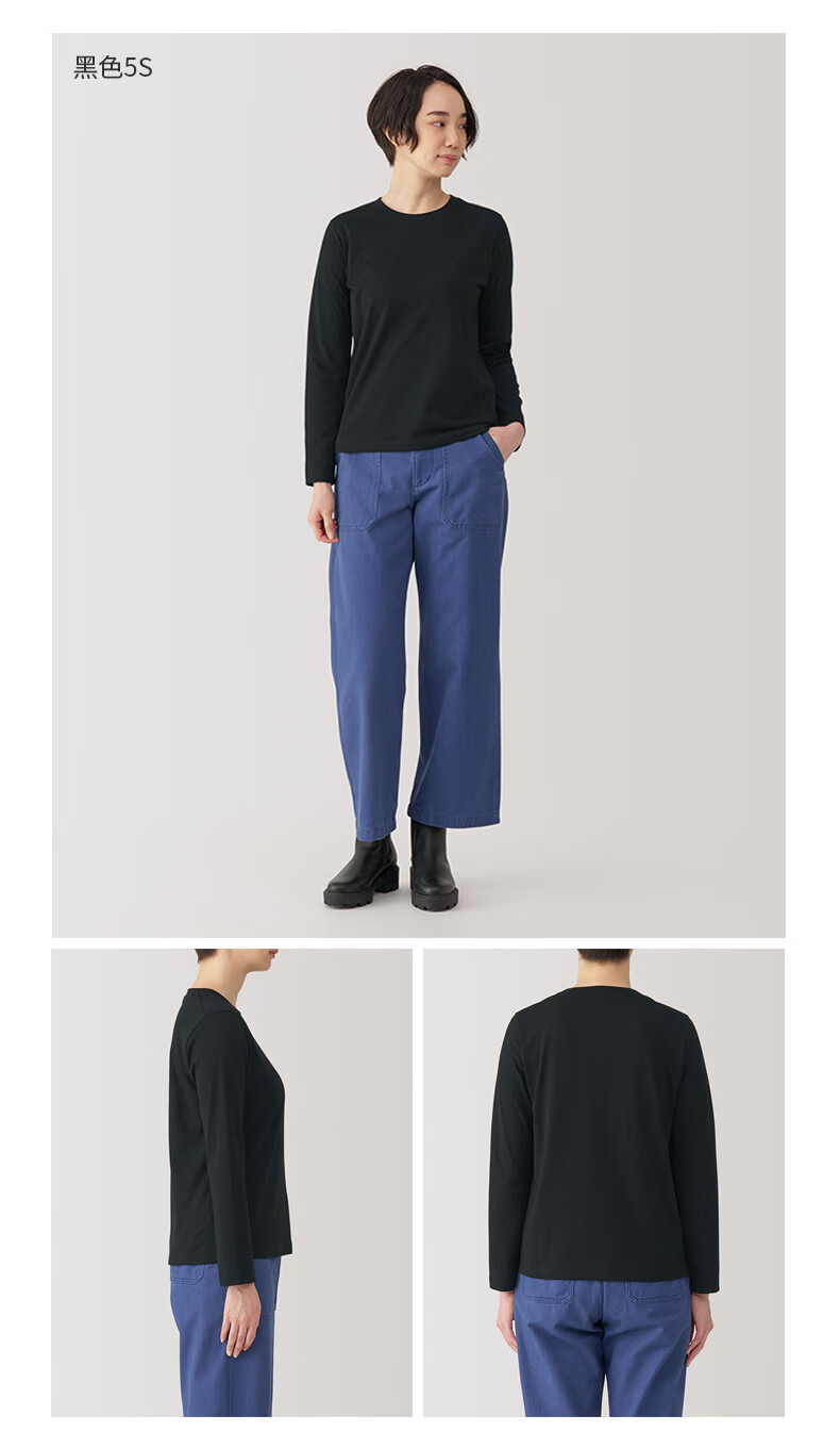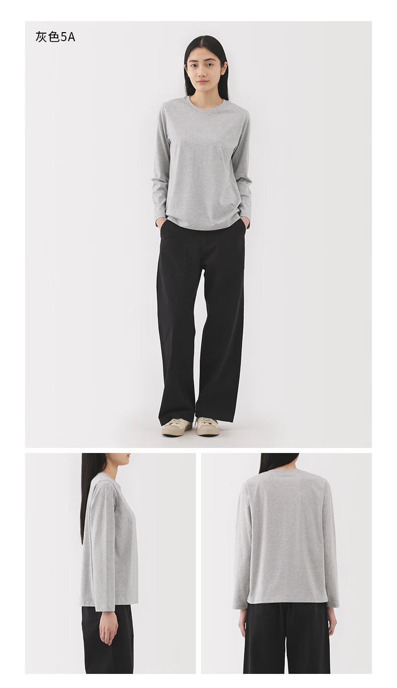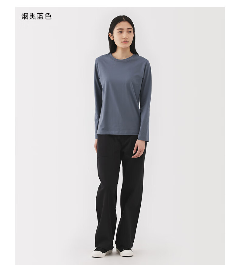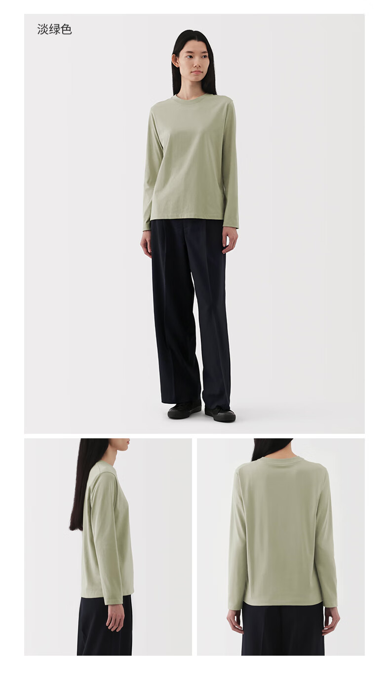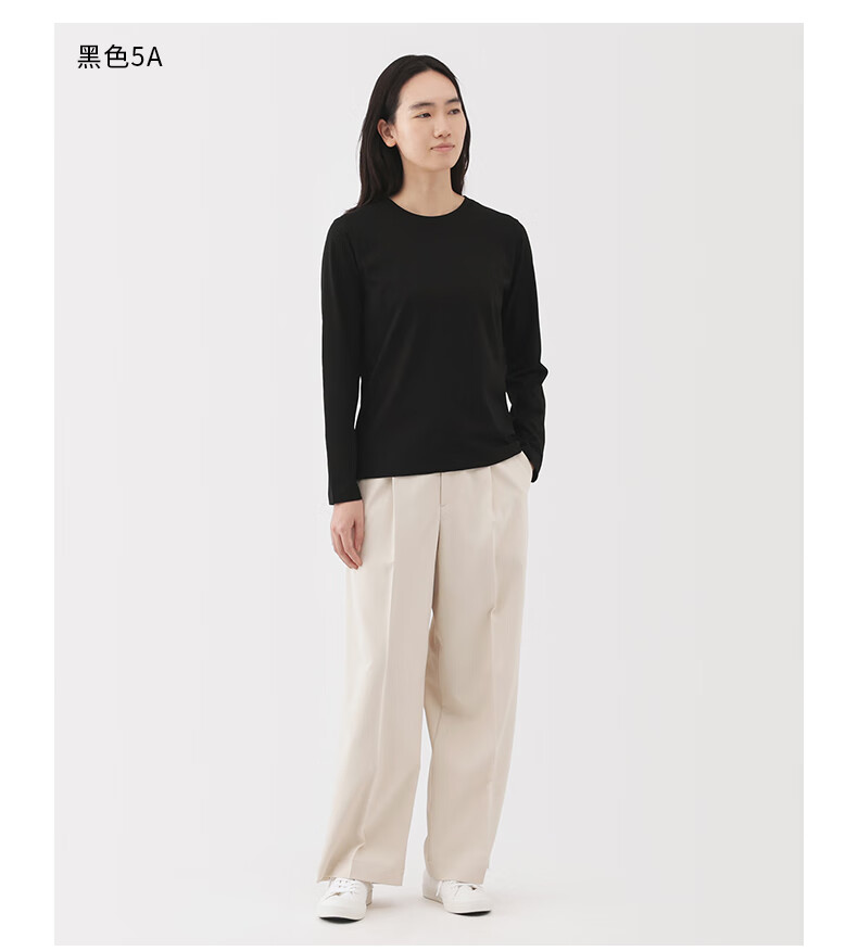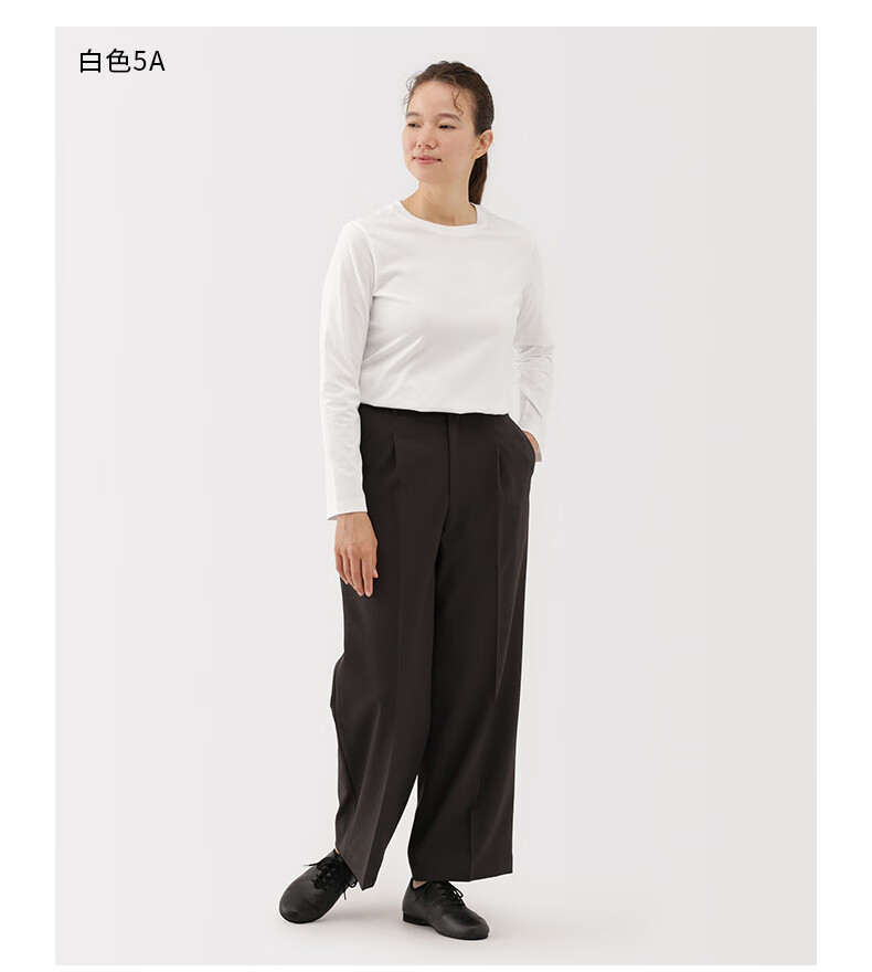 MUJI women's Tianzhu woven long-sleeved T-shirt tops bottoming shirt for women with women's clothing winter white 5A M (160/84A)