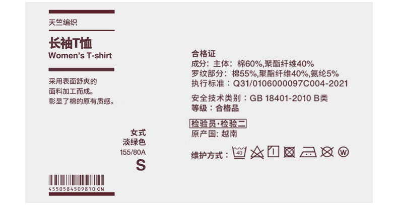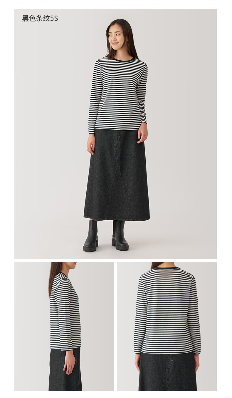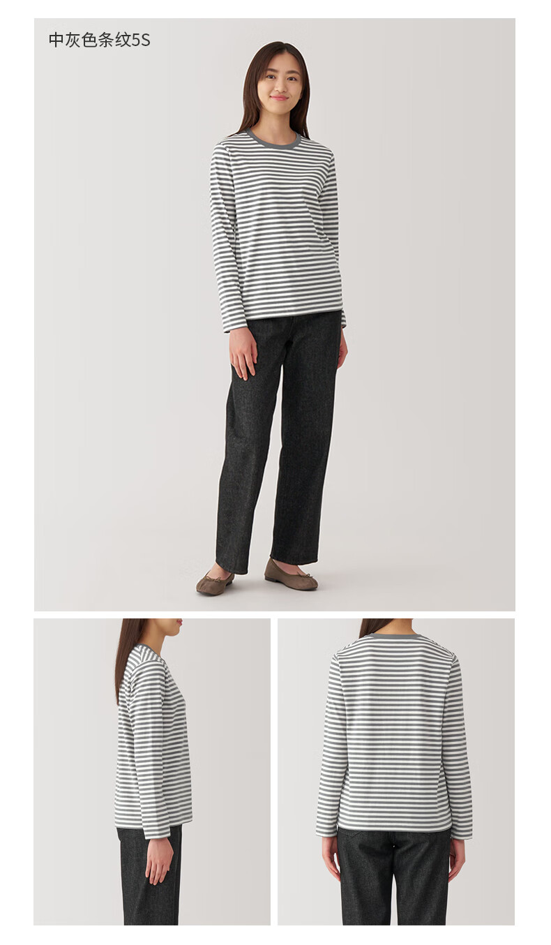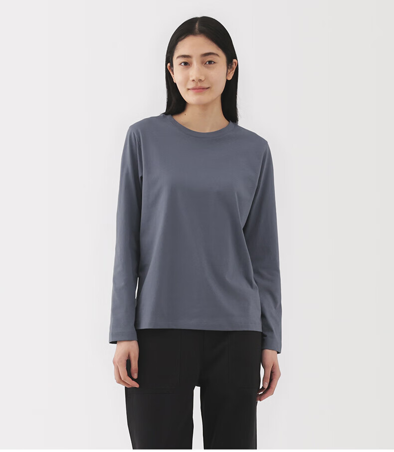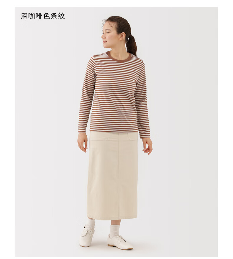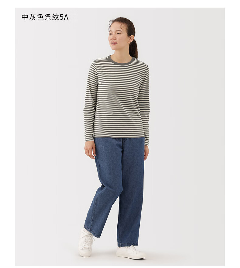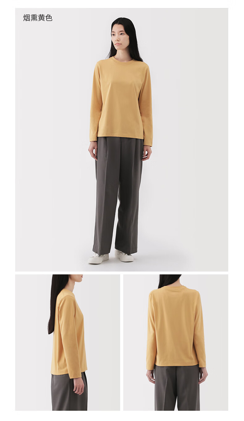 MUJI women's Tianzhu woven long-sleeved T-shirt tops bottoming shirt for women with women's clothing winter white 5A M (160/84A)