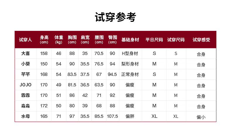 China (cm) 160-165/84-86 165-170 / 88-90 167-172 / 92-96 168-173 / 98-102 170-176 / 106-110
