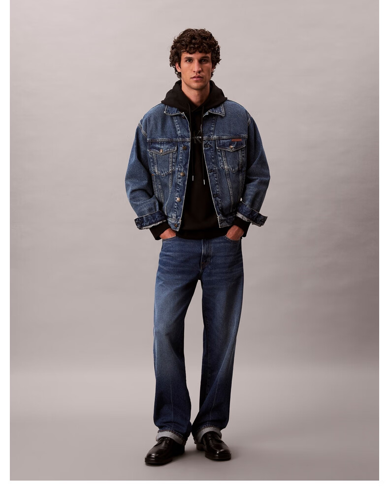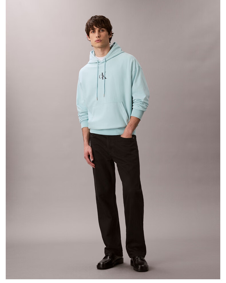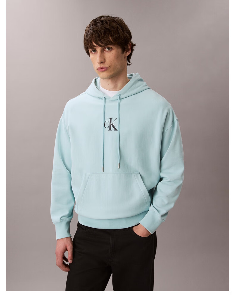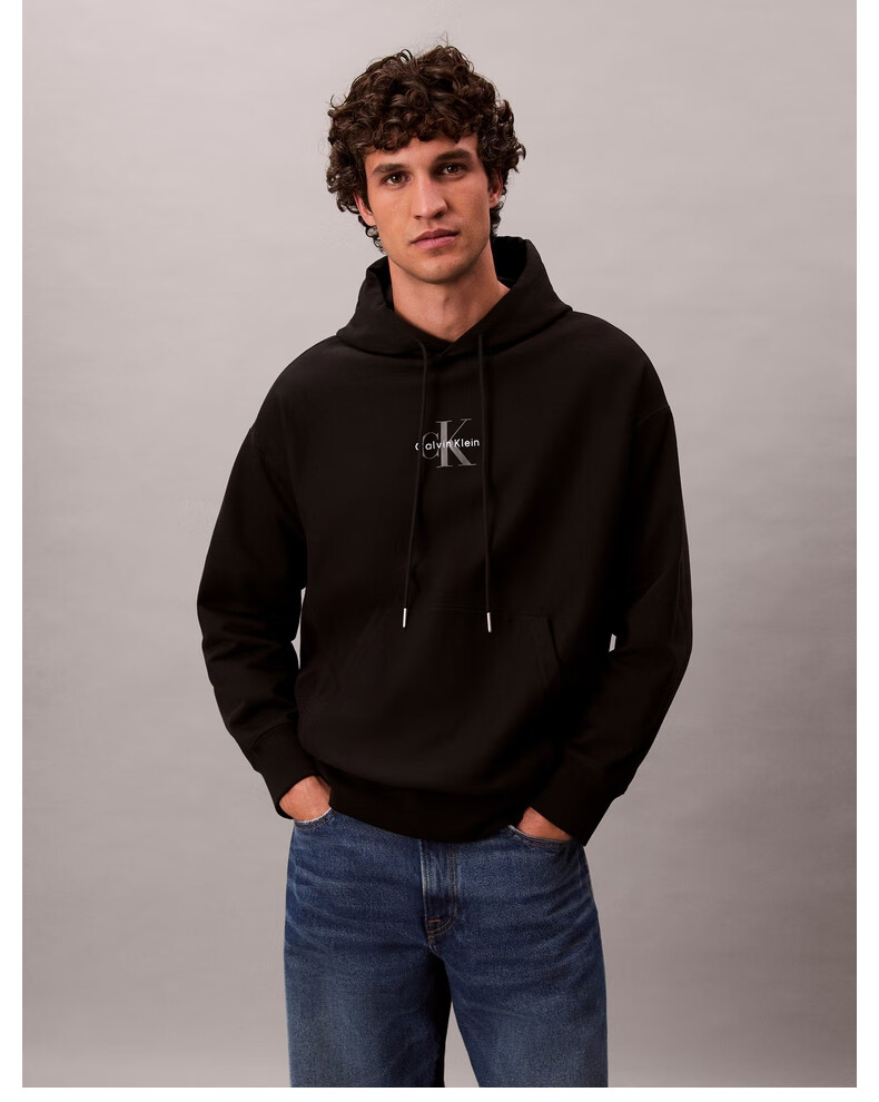 Calvin KleinJeans spring and autumn men's trendy American casual style classic simple ck letter loose sports hooded sweatshirt UB1-space black M