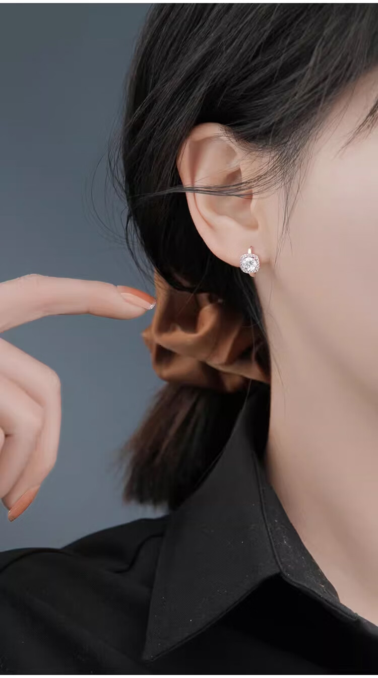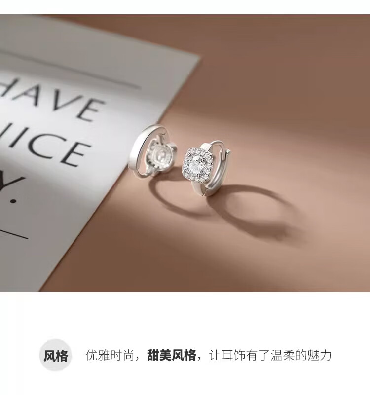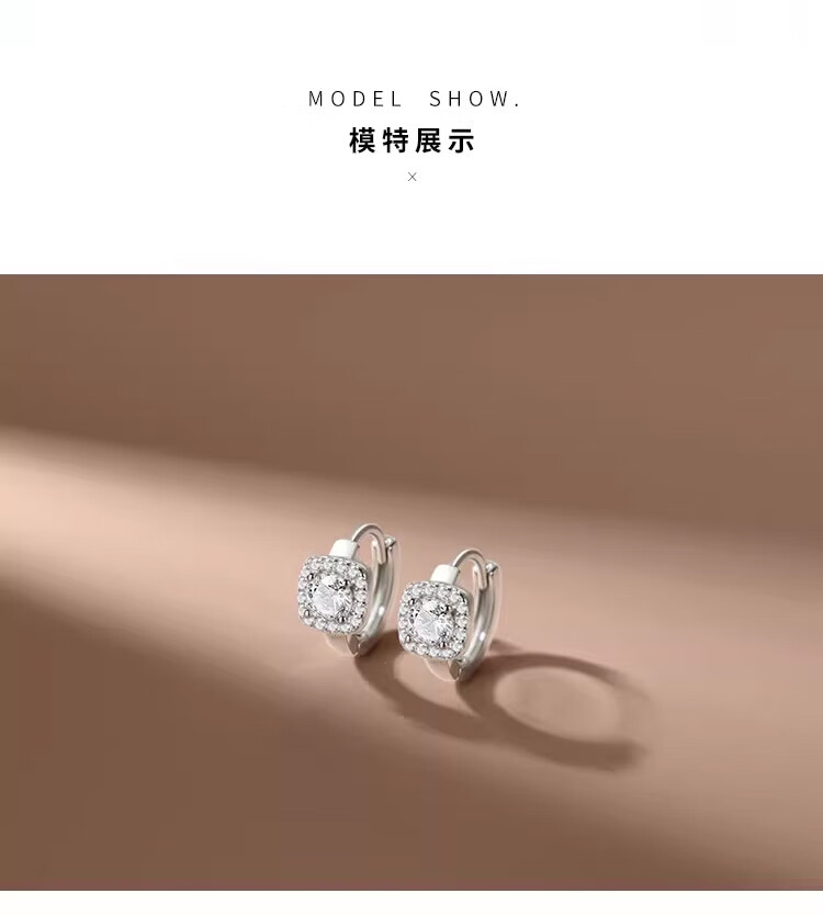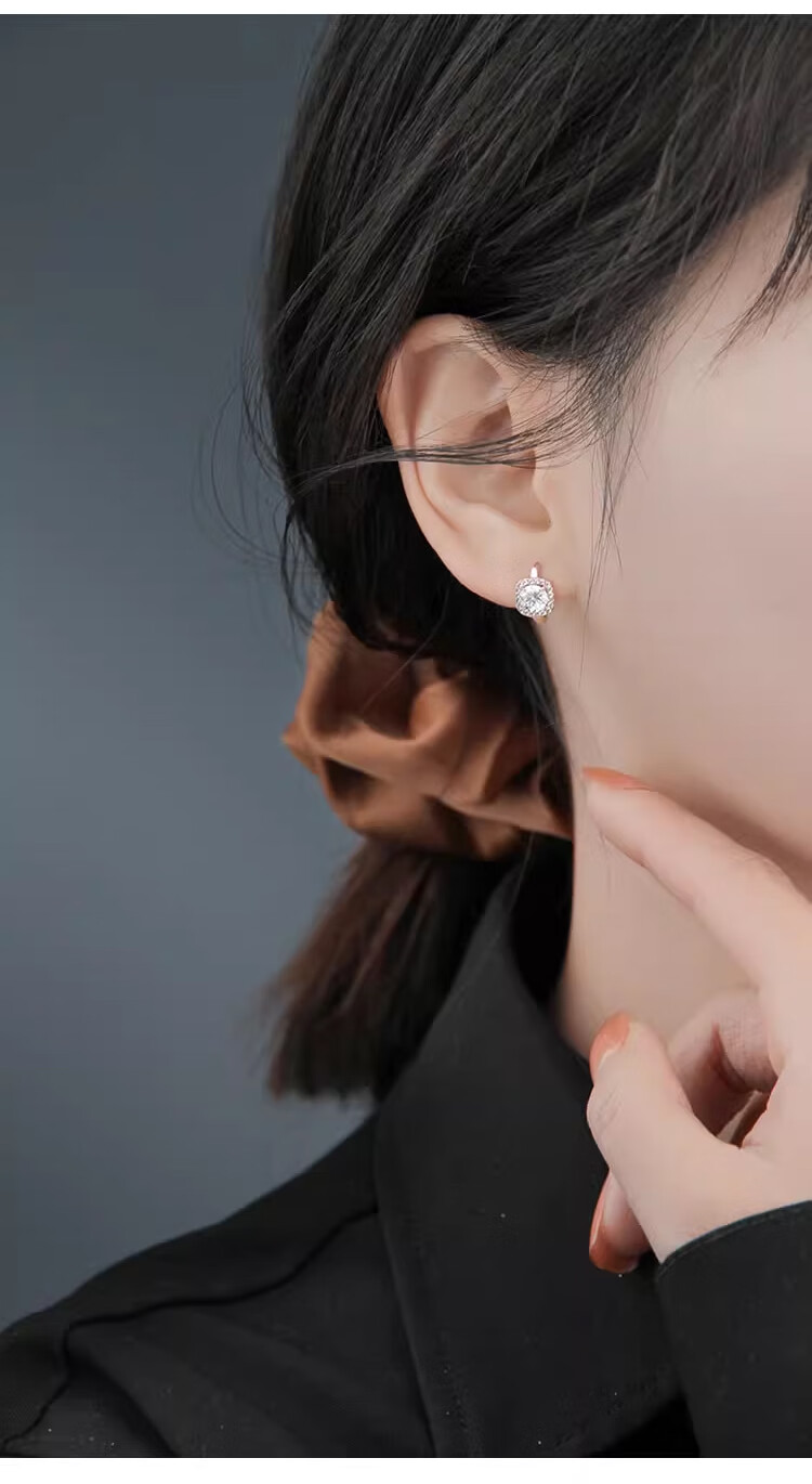 LnieerS925 Silver Sugar Cube Earrings Women's Ear Piercing Earrings Light Luxury High-end Earrings Earrings Studs Fashionable and Versatile Popular Earrings S925 Silver Sugar Cube Earrings