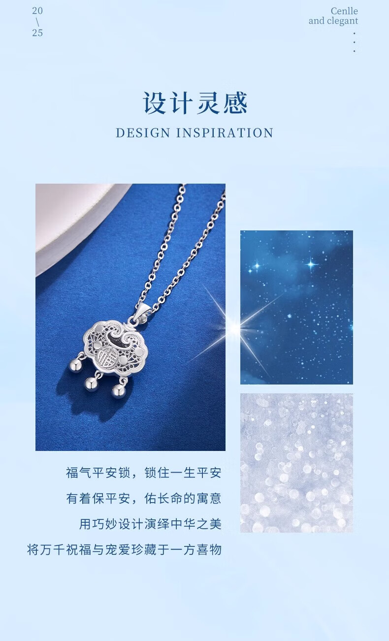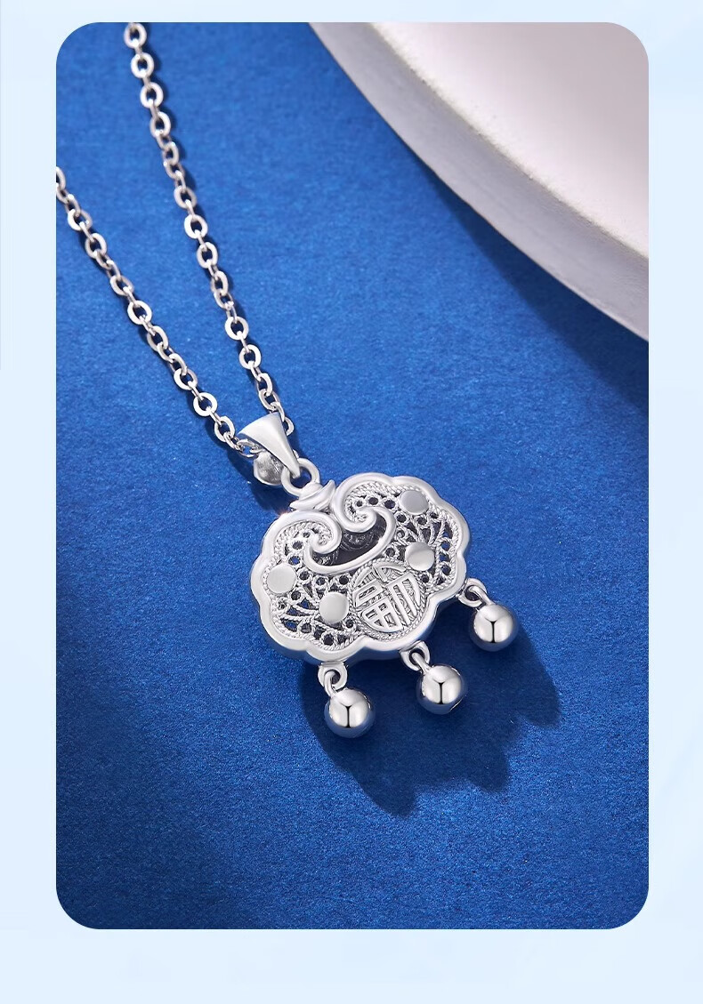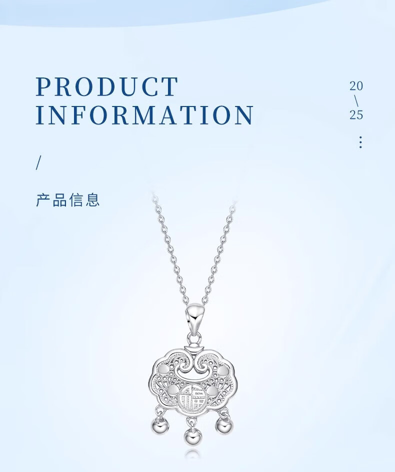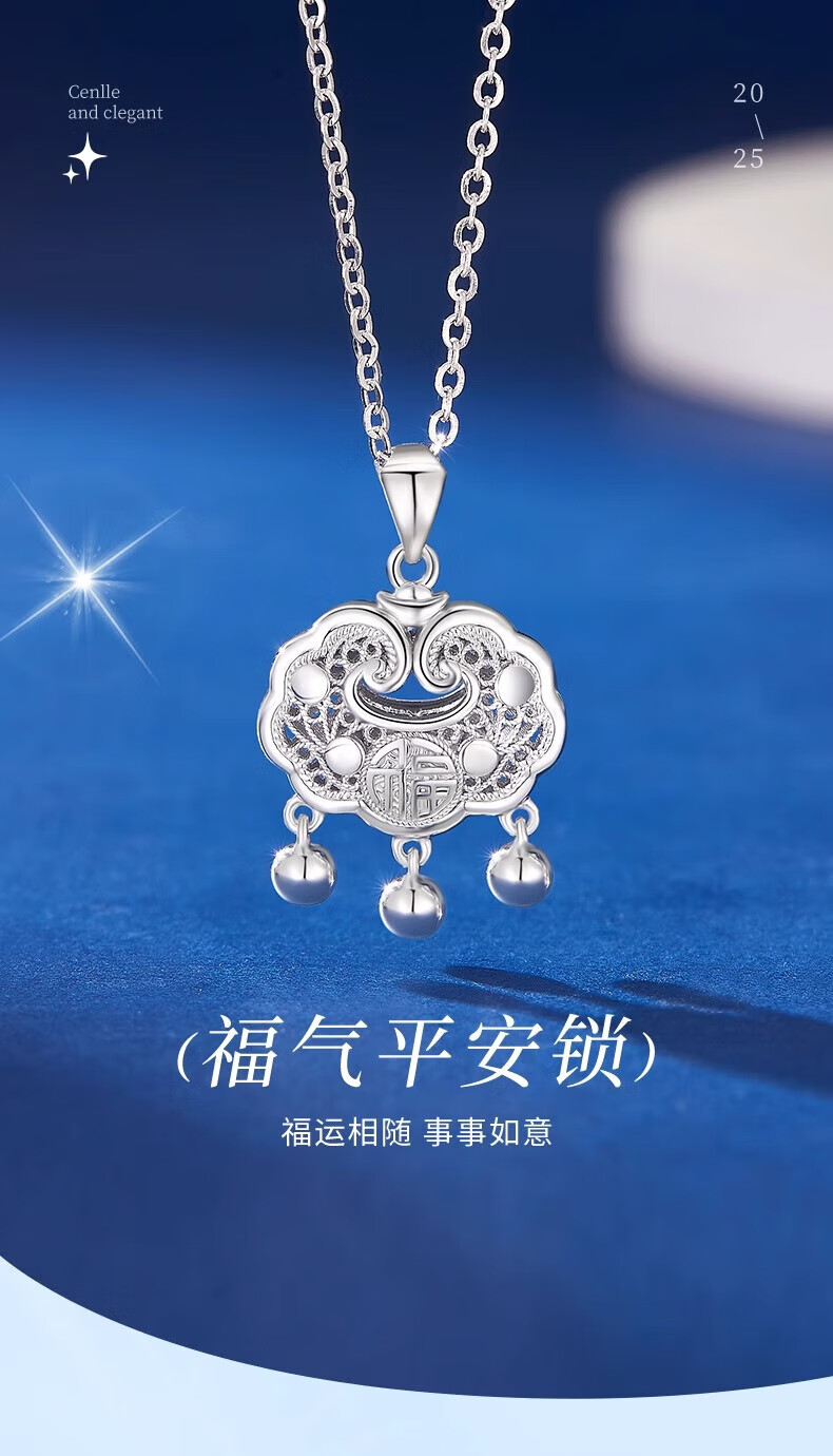 Lao Fengxiang PT950 platinum safety lock pendant for women new platinum clavicle necklace birthday gift for girlfriend and wife PT950 platinum safety lock pendant about 4g free silver chain