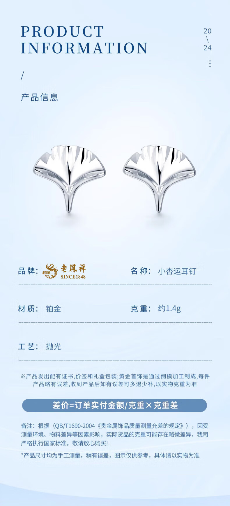 Lao Fengxiang Ginkgo Leaf Platinum Earrings for Women New Fashion Ears Anniversary Birthday Gift for Girlfriend and Wife Ginkgo Leaf Platinum Earrings About 1.4g Brand Gift Box