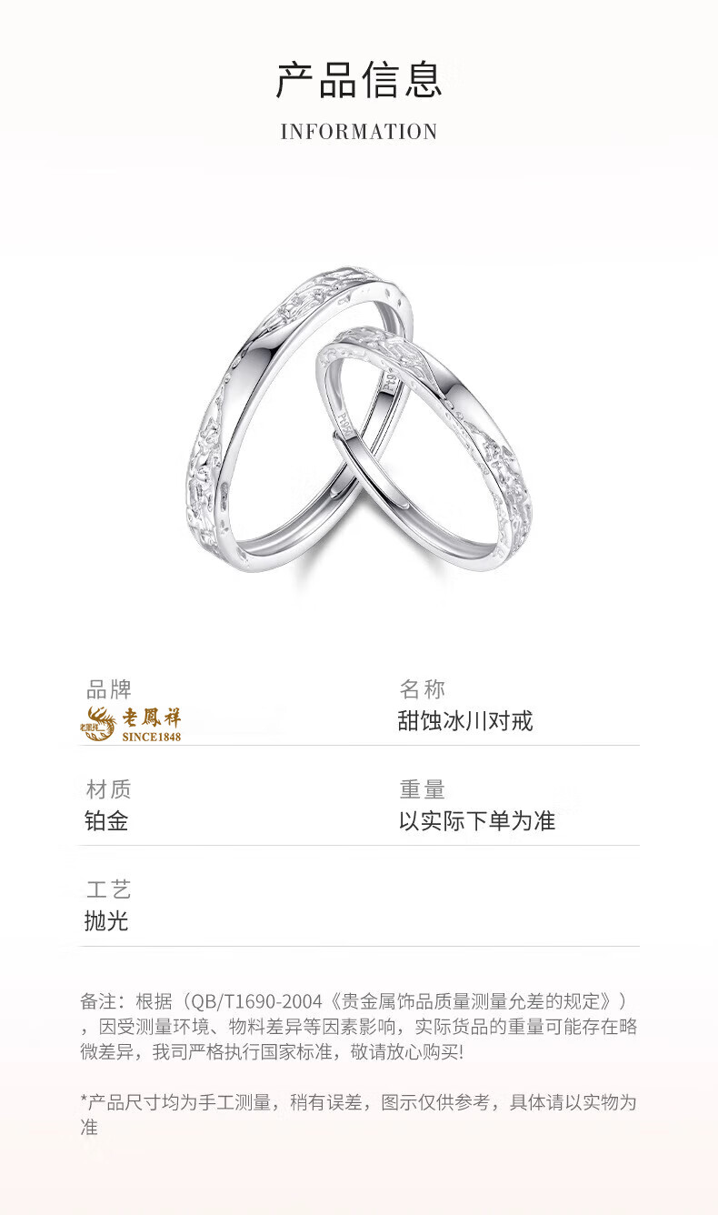 Lao Fengxiang Platinum Glacier Ring Couple Ring PT950 Plain Ring Anniversary Birthday Gift for Boyfriend and Girlfriend Platinum Glacier Ring Women's Approximately 1.6g