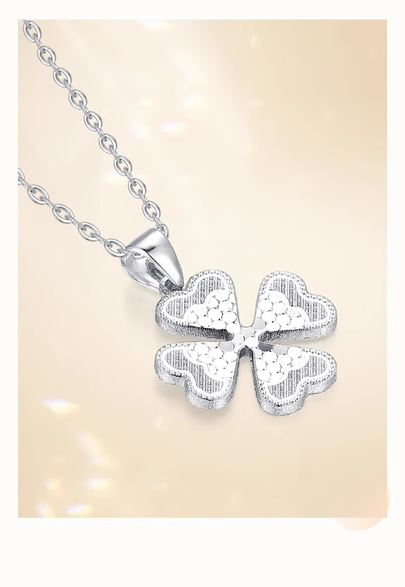 Lao Fengxiang PT950 platinum scale four-leaf clover pendant for women, new sexy necklace jewelry birthday gift for girlfriend, platinum lucky four-leaf clover pendant, about 2.8g, free silver chain