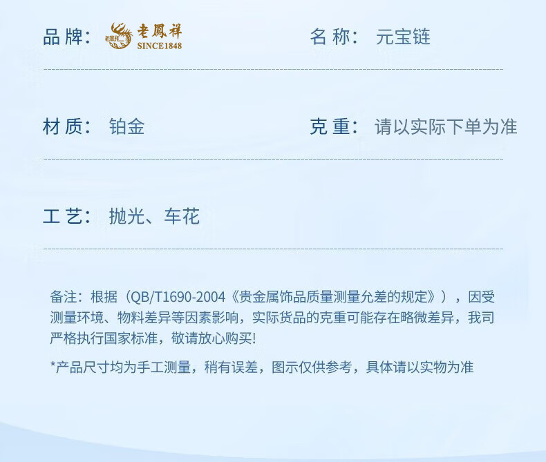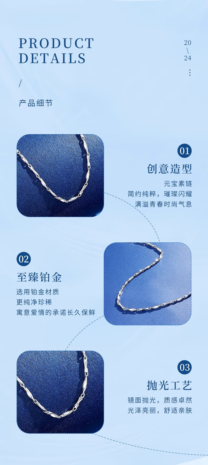 Lao Fengxiang PT950 platinum ingot chain for women, platinum necklace without pendant, fashionable sweater chain for girlfriend’s birthday gift PT950 platinum ingot chain, about 5.8g, brand gift box