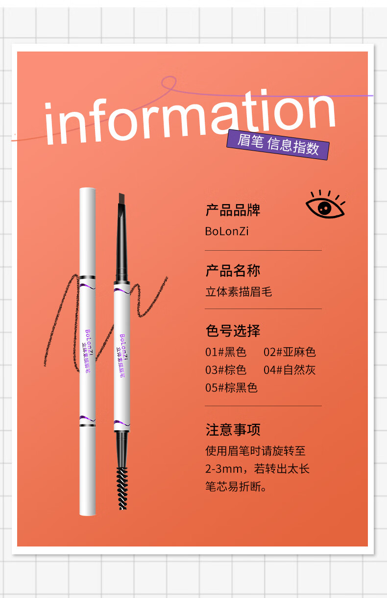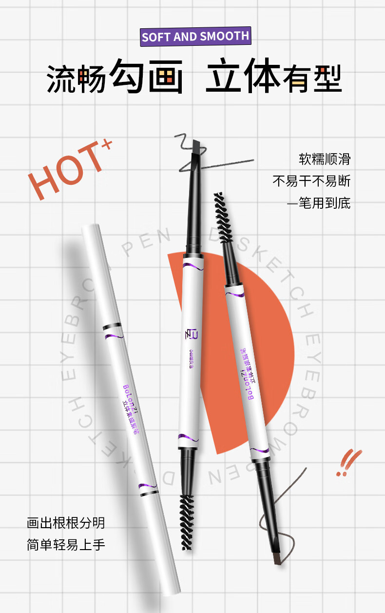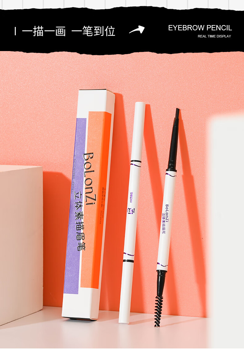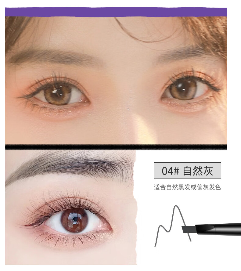Small white pole frosted extremely fine double-ended eyebrow pencil triangle machete three-dimensional sketch eyebrow pencil for students waterproof, sweat-proof and non-smudged 04# smoke gray 1 piece