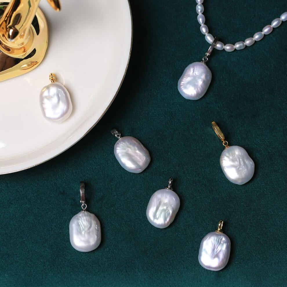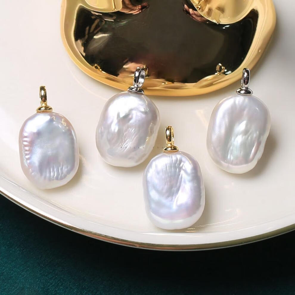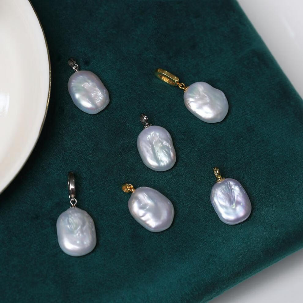 Fat Donglai's same style natural freshwater pearl pendant, small sugar cube, natural freshwater baroque pearl aurora, gold without diamond buckle