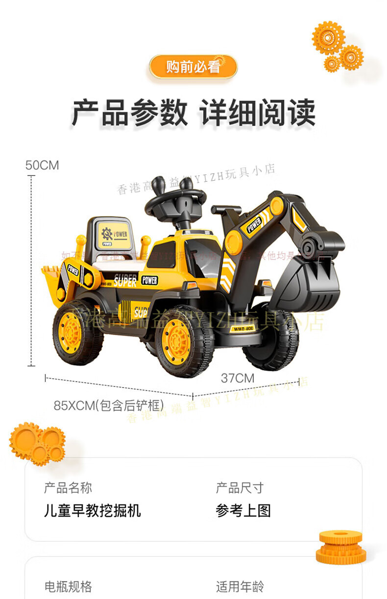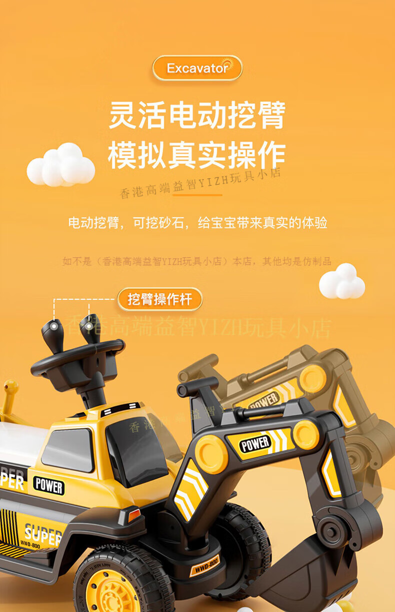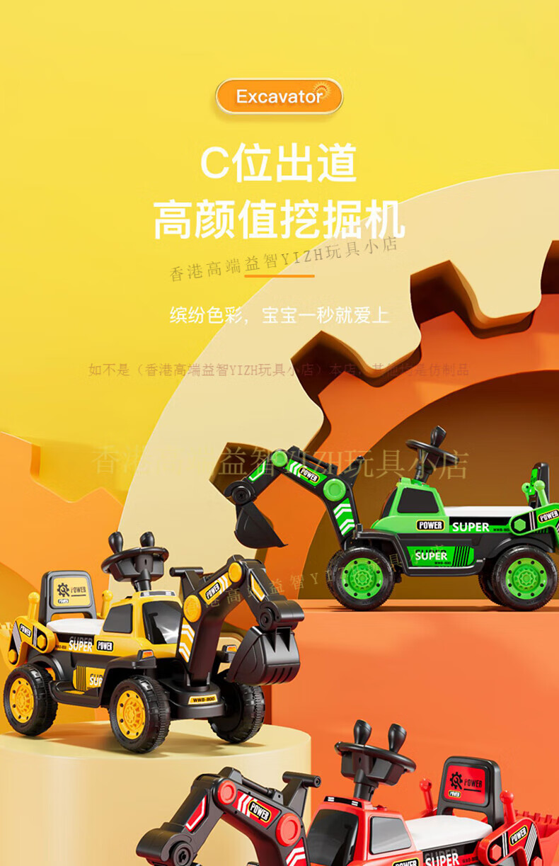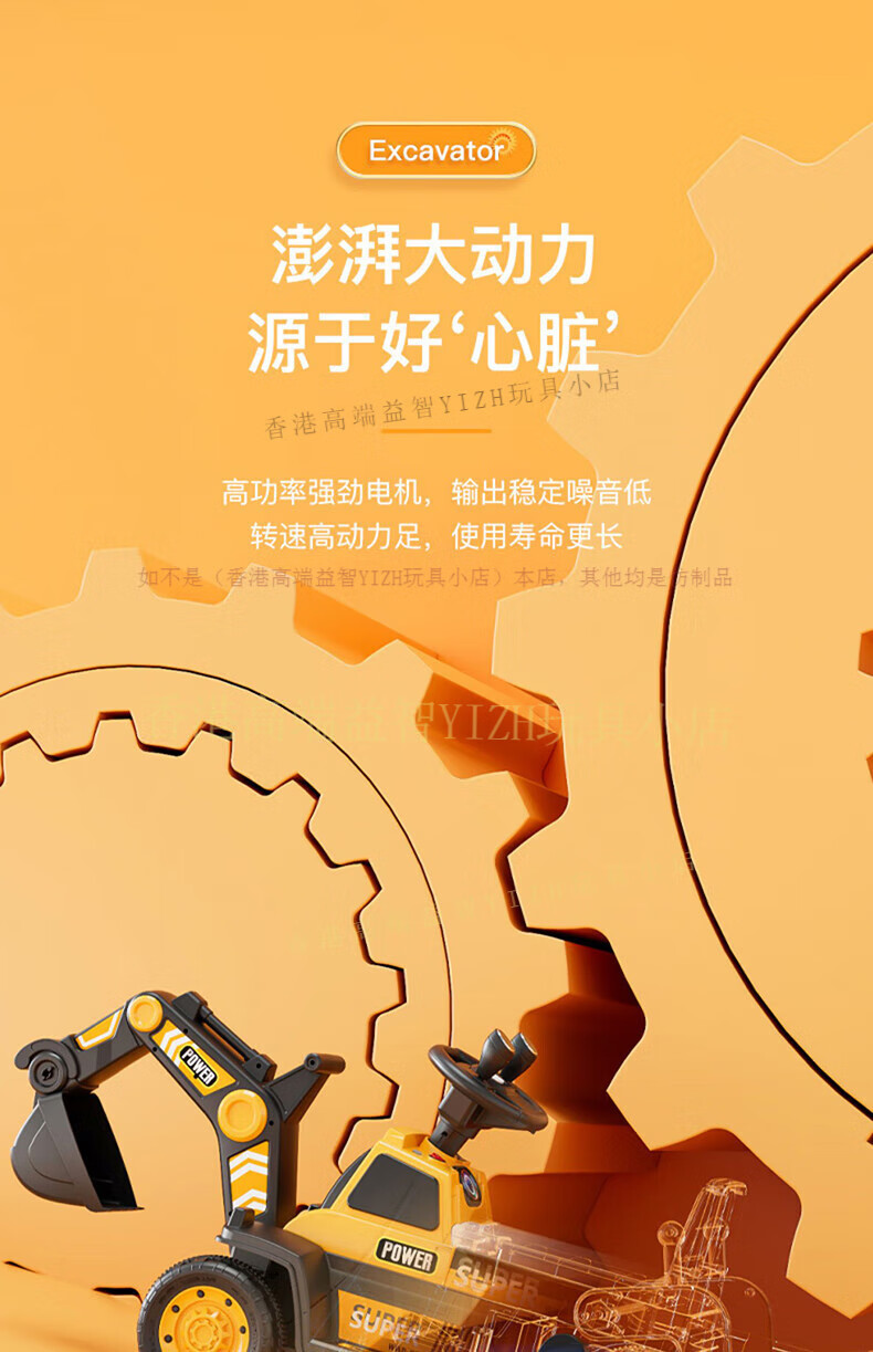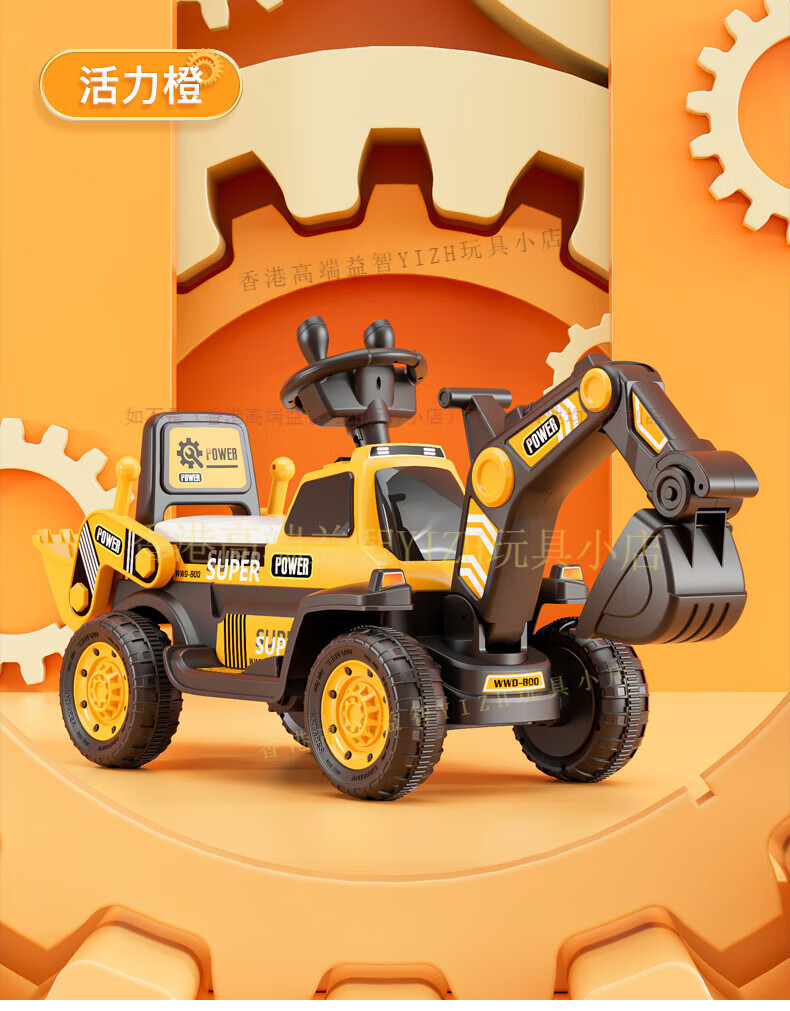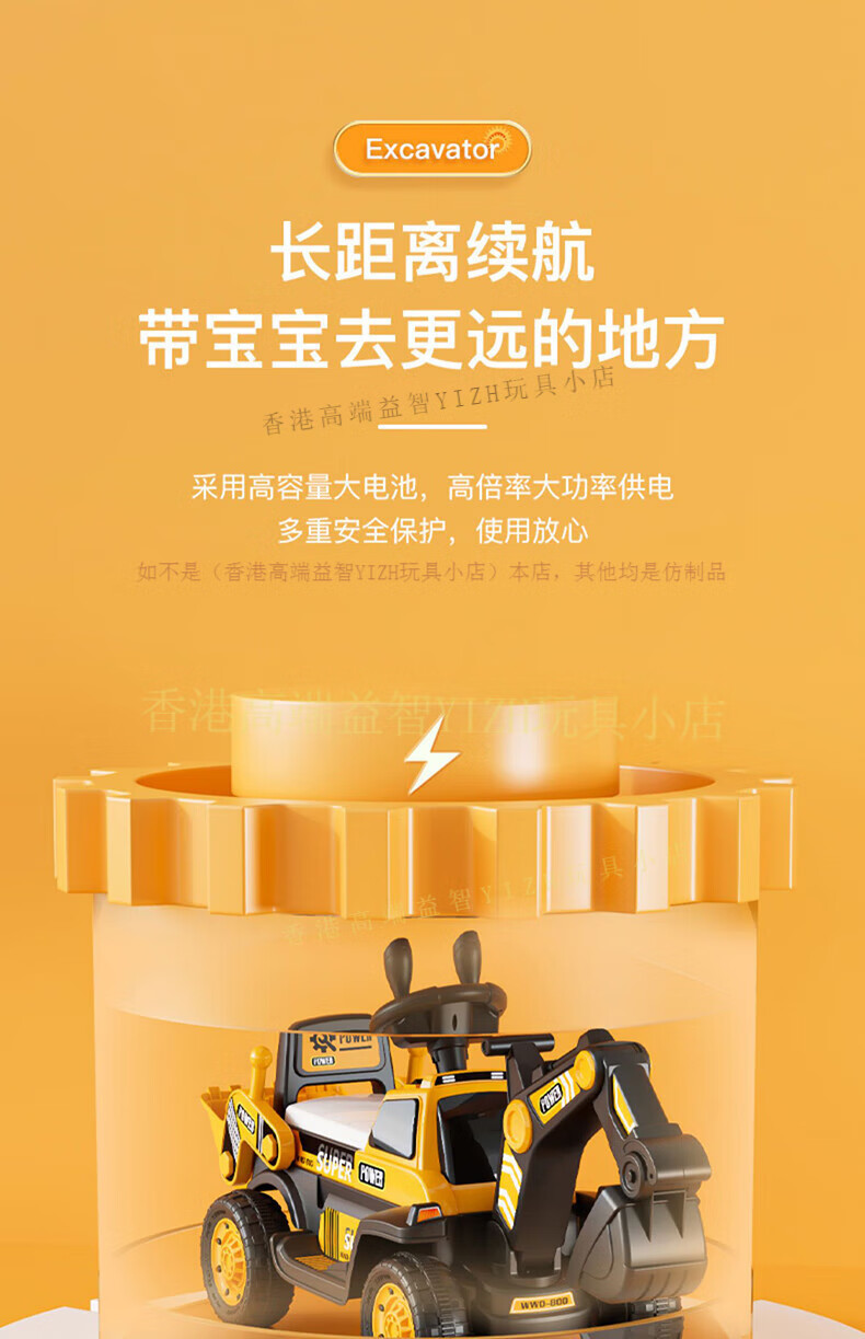 HTI children's electric remote control excavator toy car boy's excavator can sit on the extra large remote control car excavator can sit on people (Energy Orange)