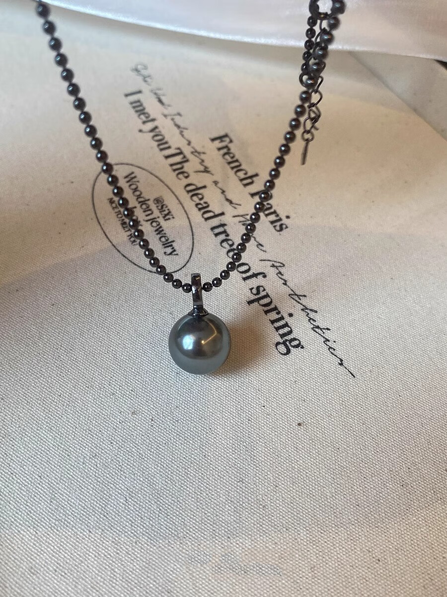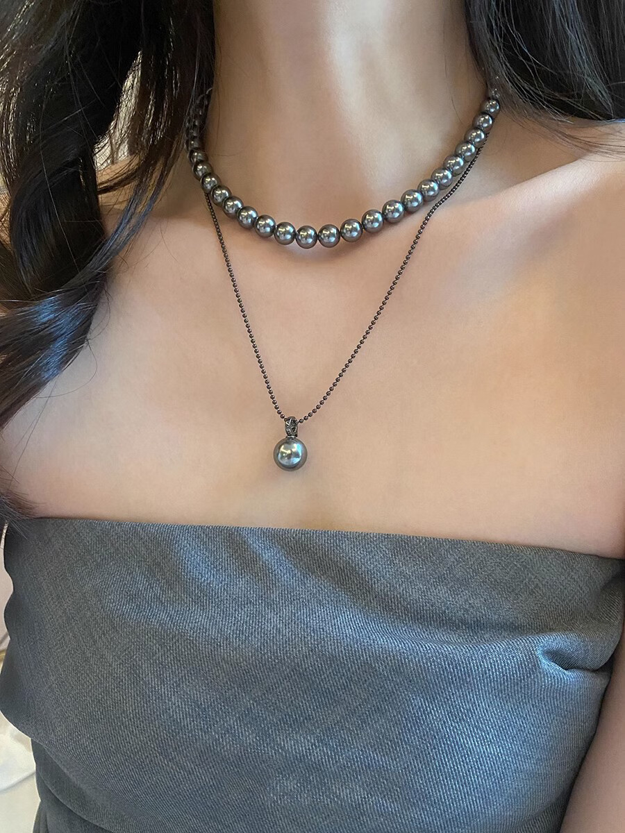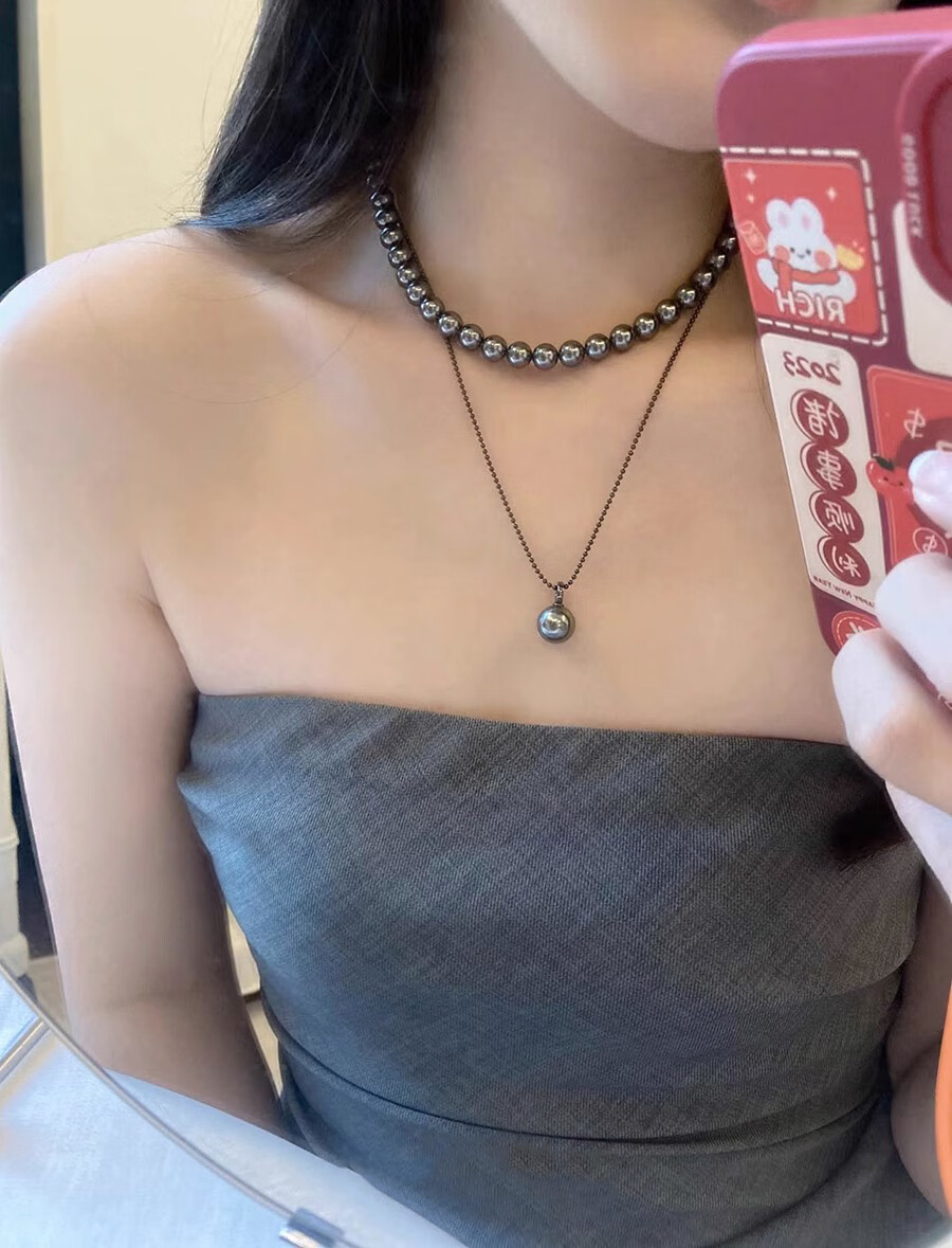 Fat Donglai's same Tahitian black pearl pendant Milan black pearl clavicle chain niche black pearl necklace 12mm