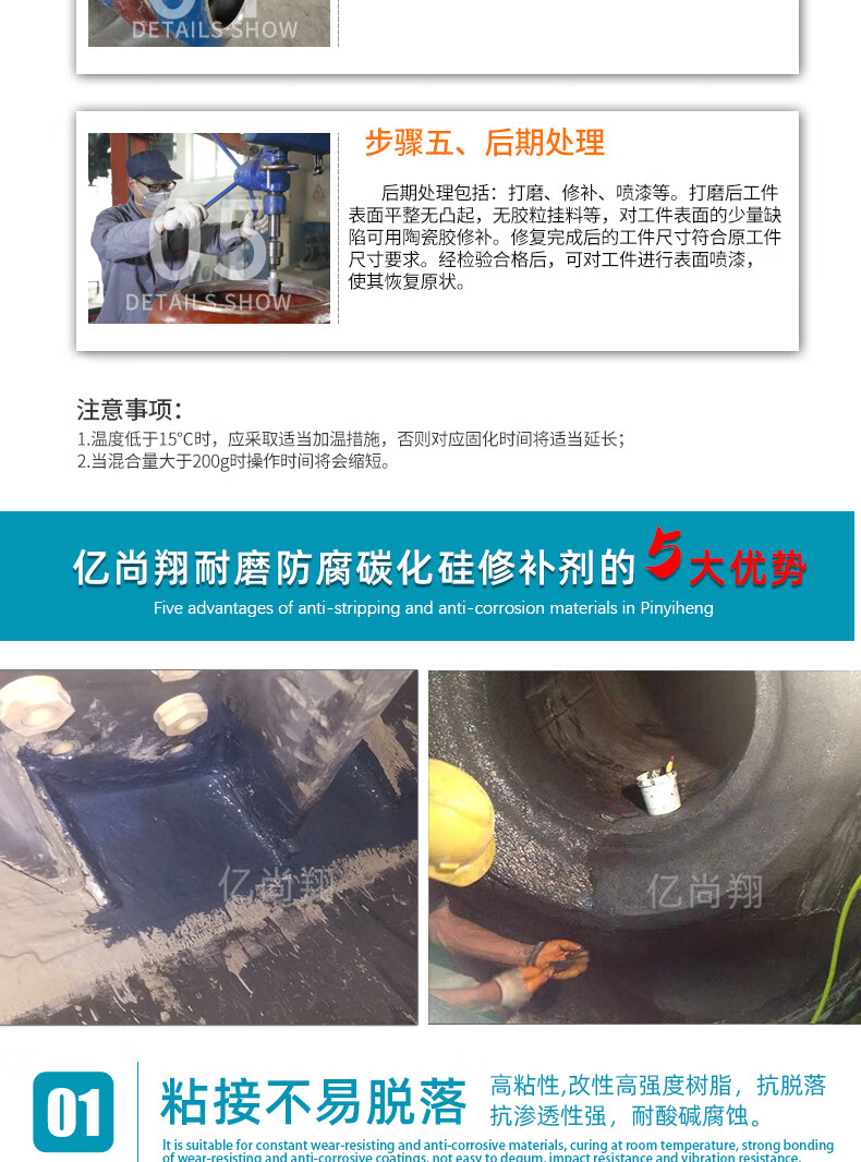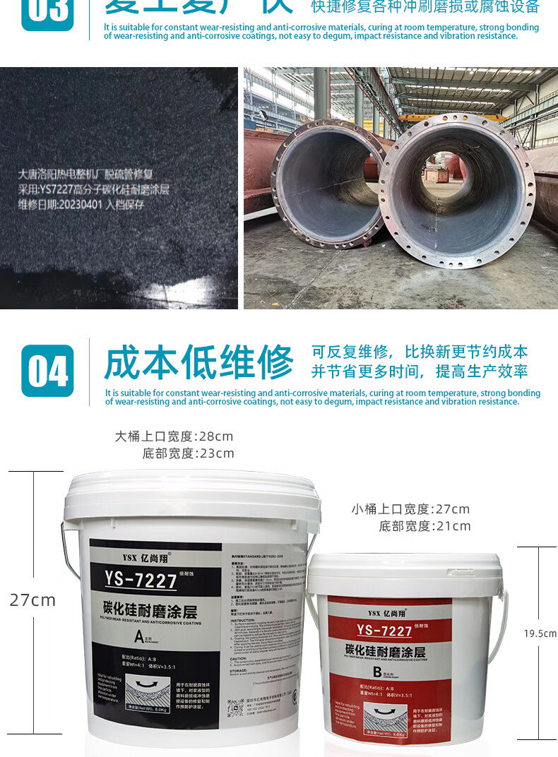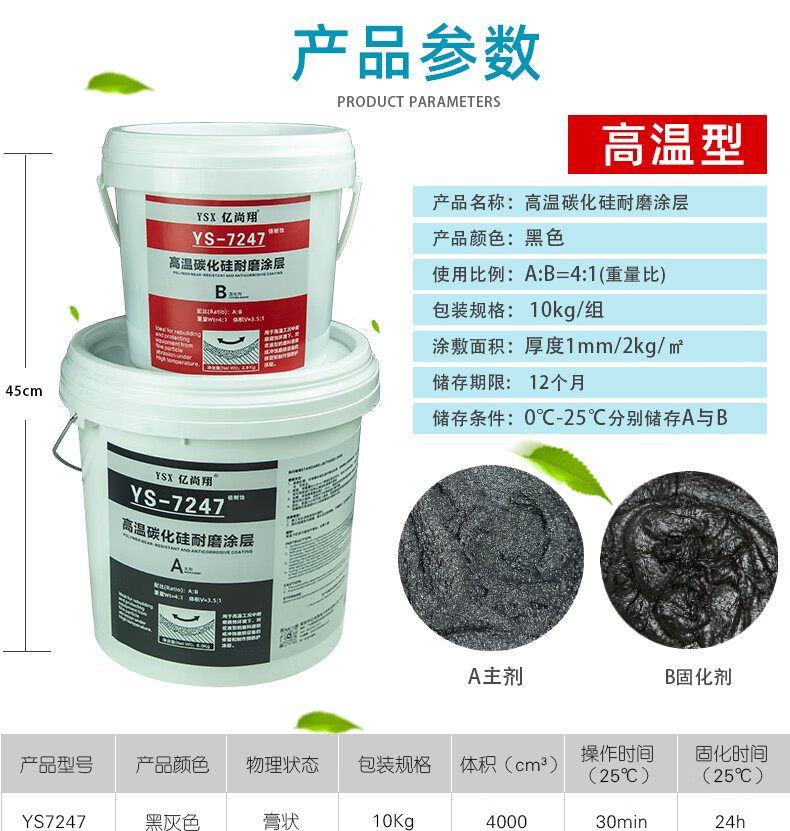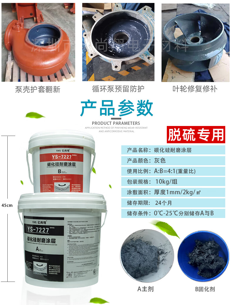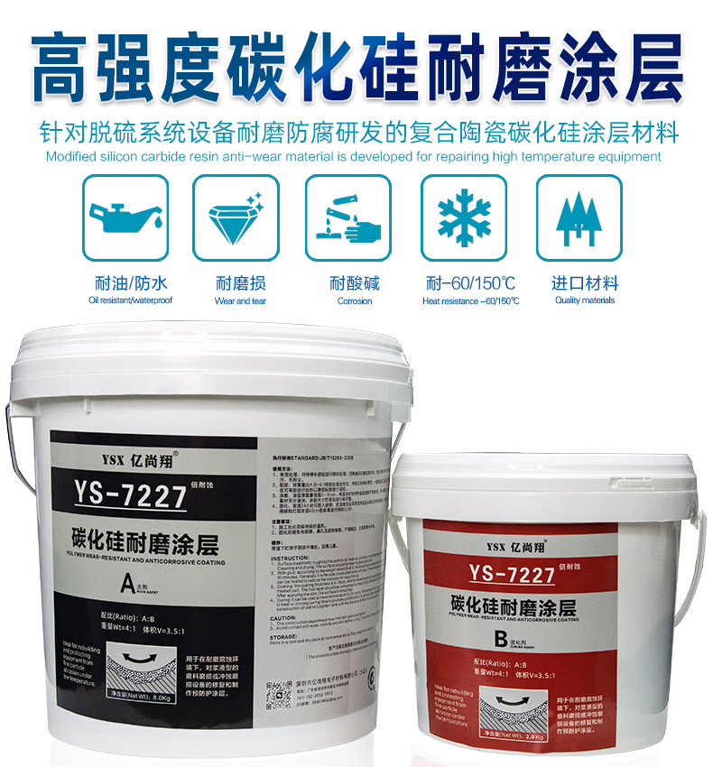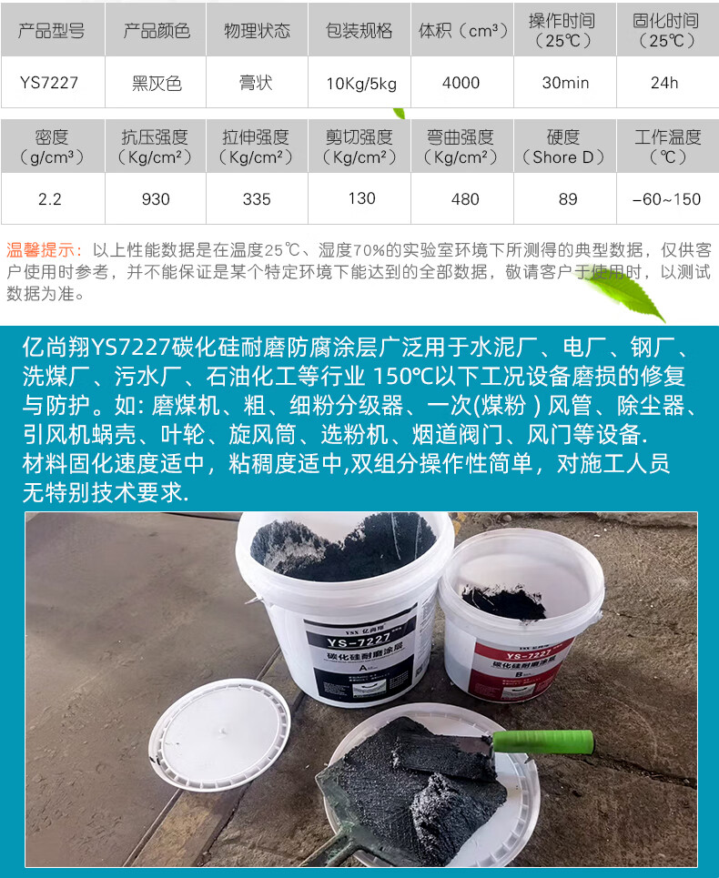 YS7227 silicon carbide repair agent wear-resistant anti-corrosion coating erosion cavitation toughness good bonding high strength high temperature resistance gray 7227*500g