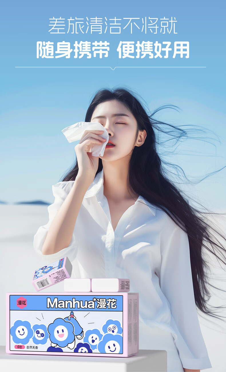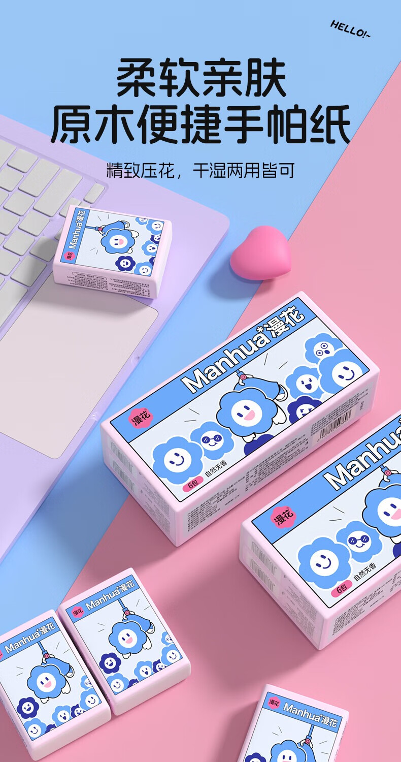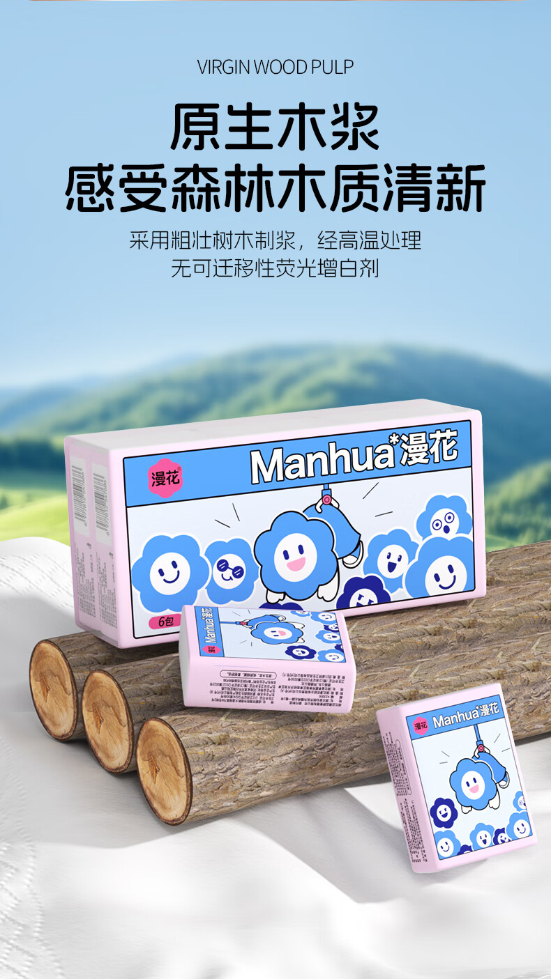 Video Game Series: Blossom Handkerchief Paper Small Pack Tissue Paper Toilet Paper Portable Flexible Student Facial Tissue 3 Layers 6 Pieces*6 Pack Video Game Handkerchief Paper