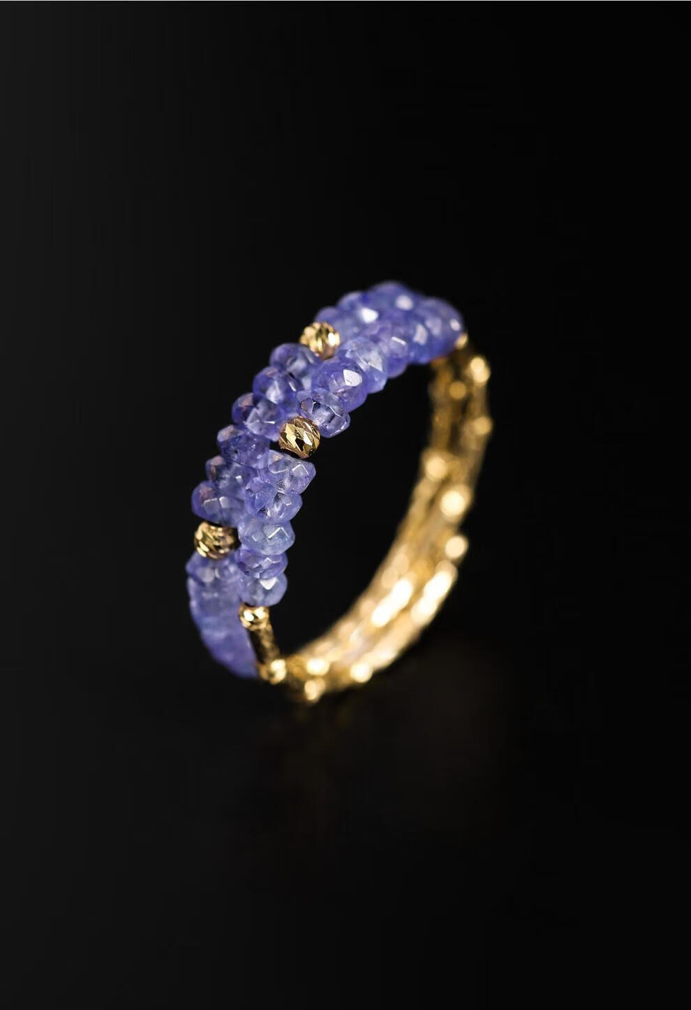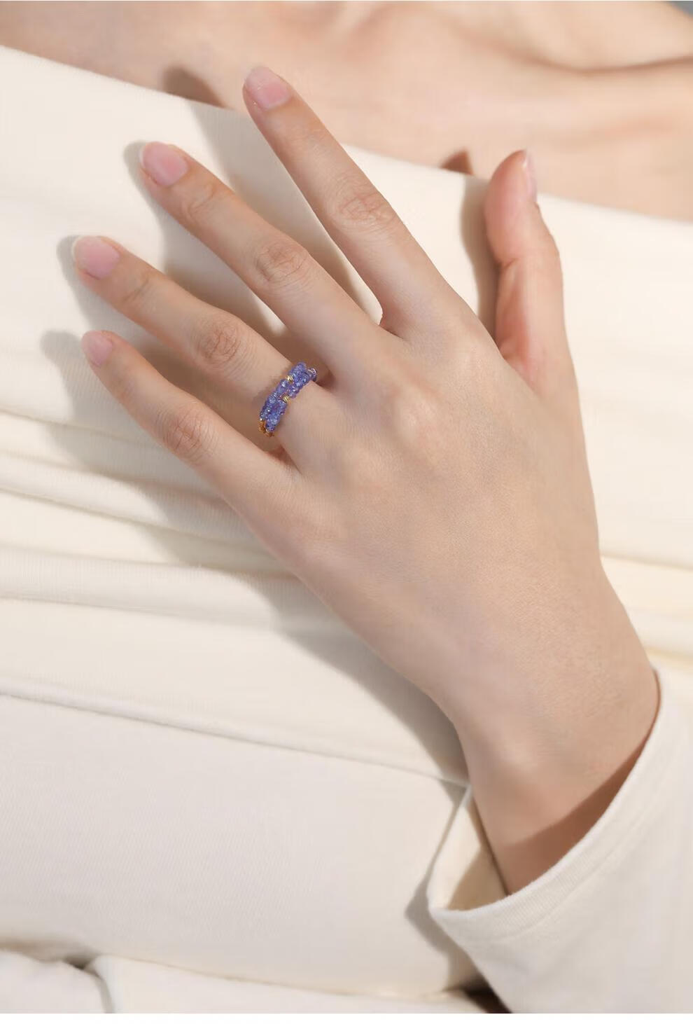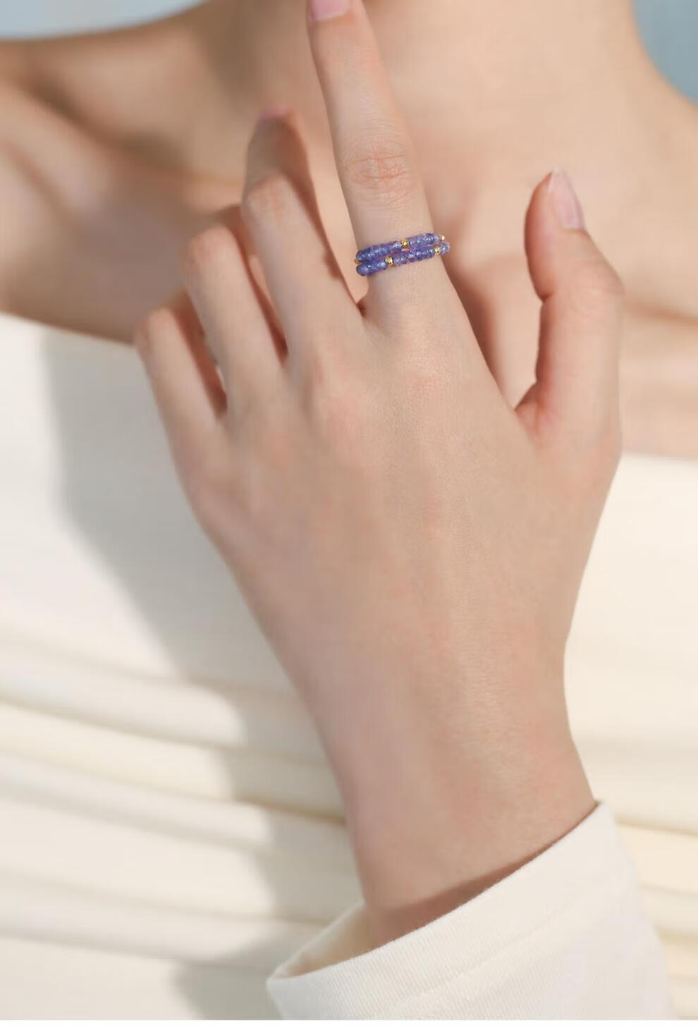 Fat Donglai's same gemstone ring, purple ring flower, natural tanzanite women's 18K gold tail ring, colorful treasure elastic ring gift 2-3mm/tanzanite/18K gold material, elasticity does not limit the ring size