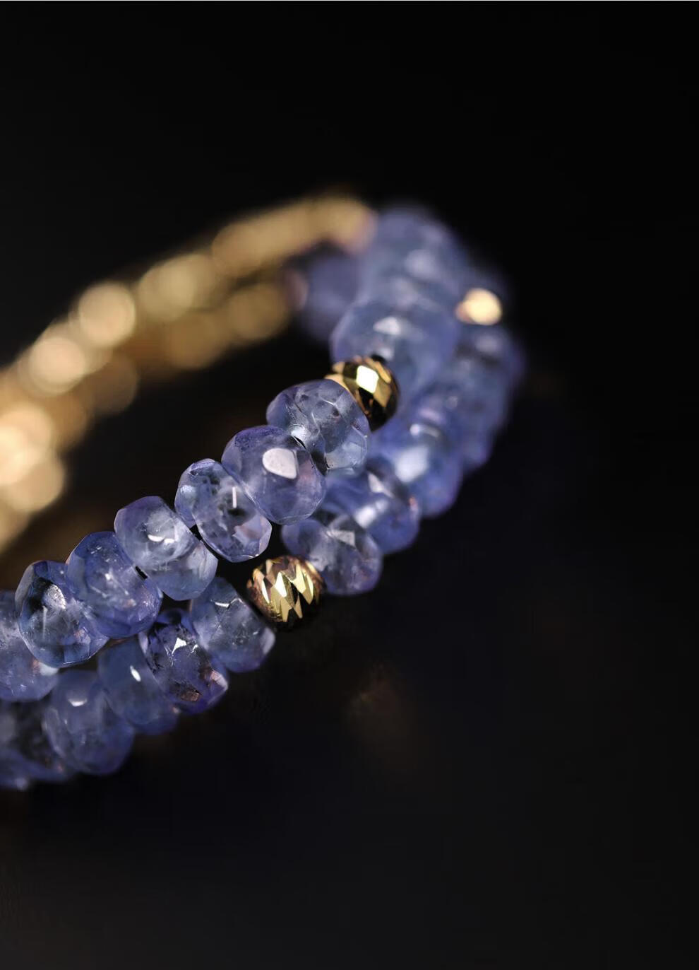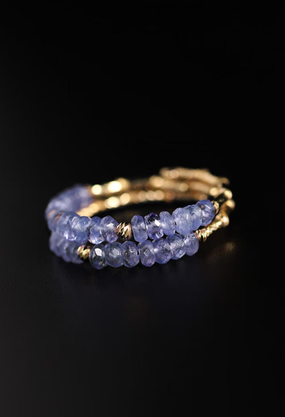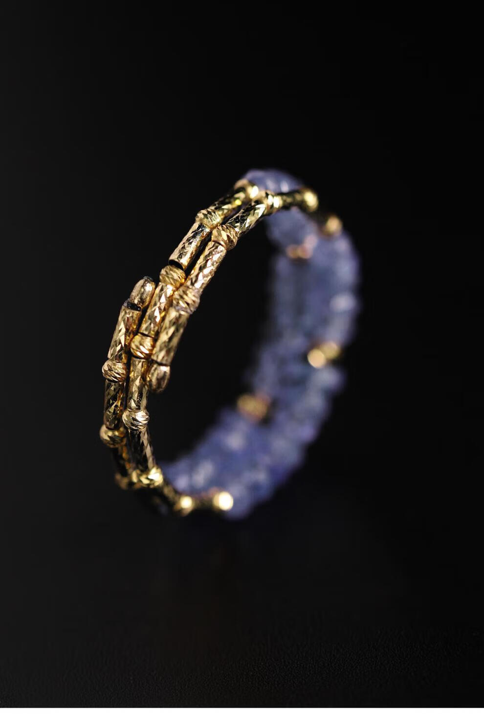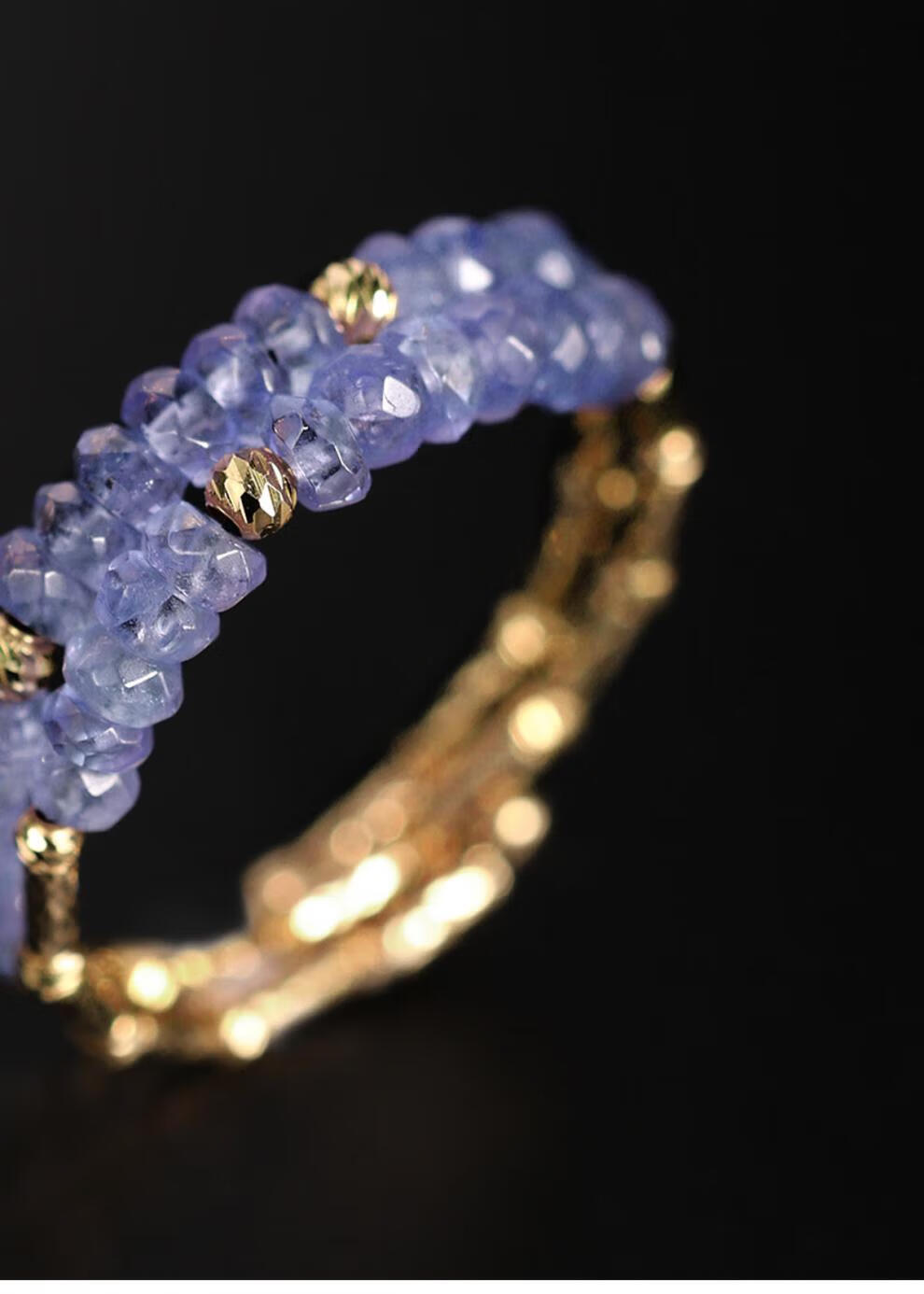 Fat Donglai's same gemstone ring, purple ring flower, natural tanzanite women's 18K gold tail ring, colorful treasure elastic ring gift 2-3mm/tanzanite/18K gold material, elasticity does not limit the ring size