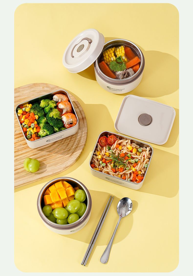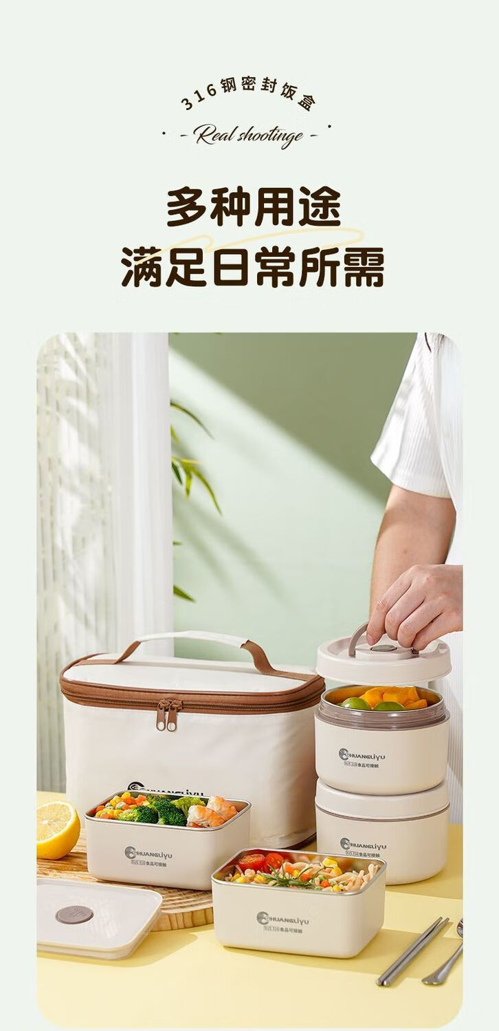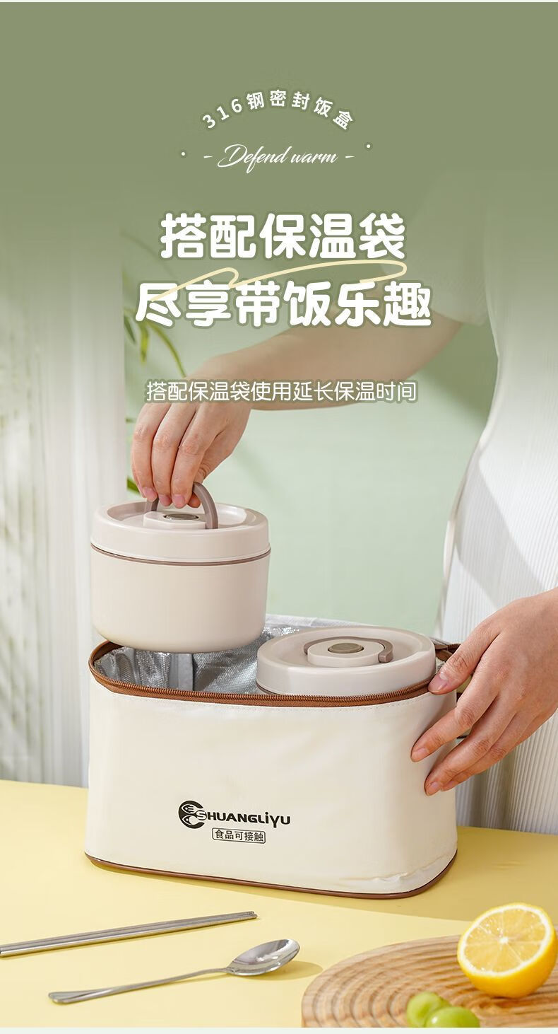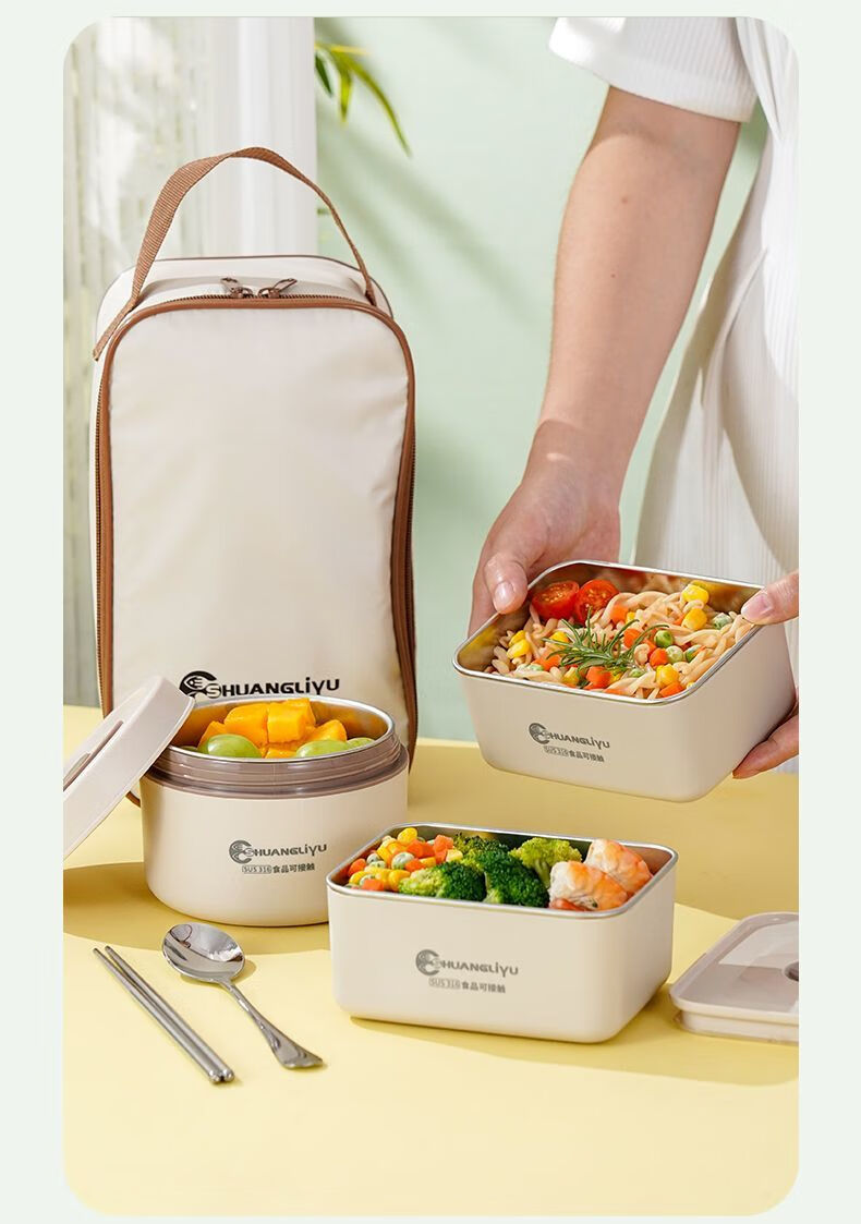 Fanxiang 316 stainless steel insulated lunch box, microwave oven special lunch box, multifunctional lunch box for office workers, student lunch box 600ml*4 (2 squares, 2 circles), free tableware + thermal bag