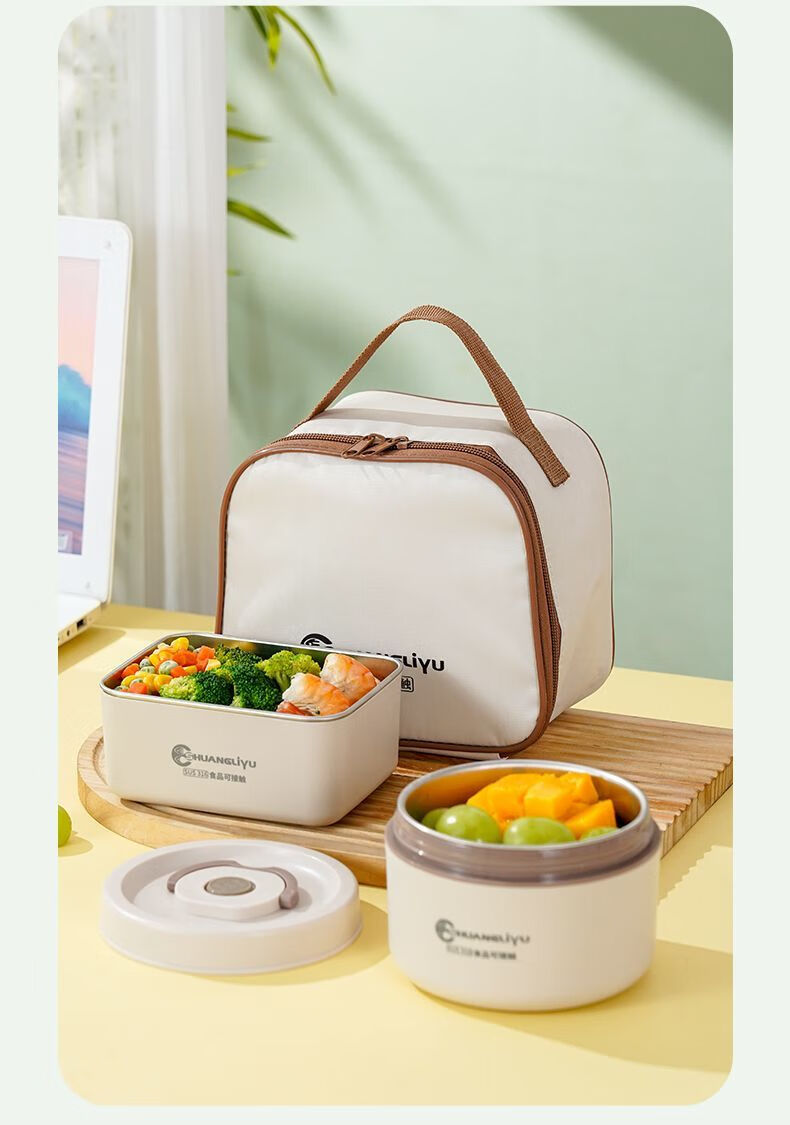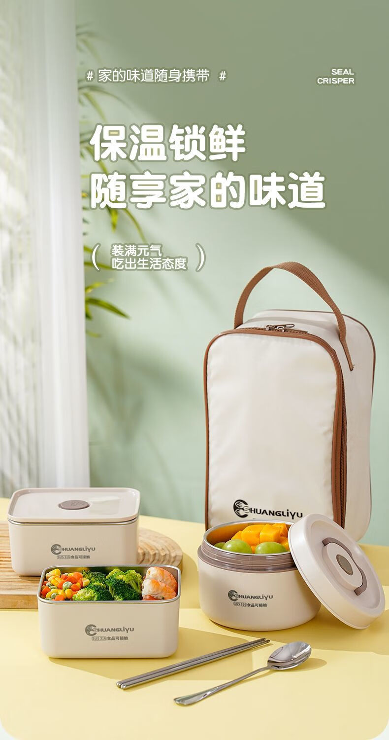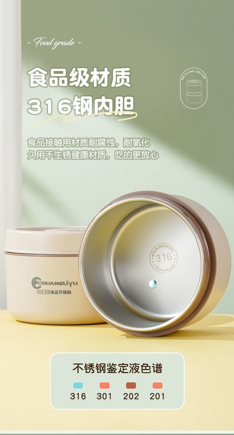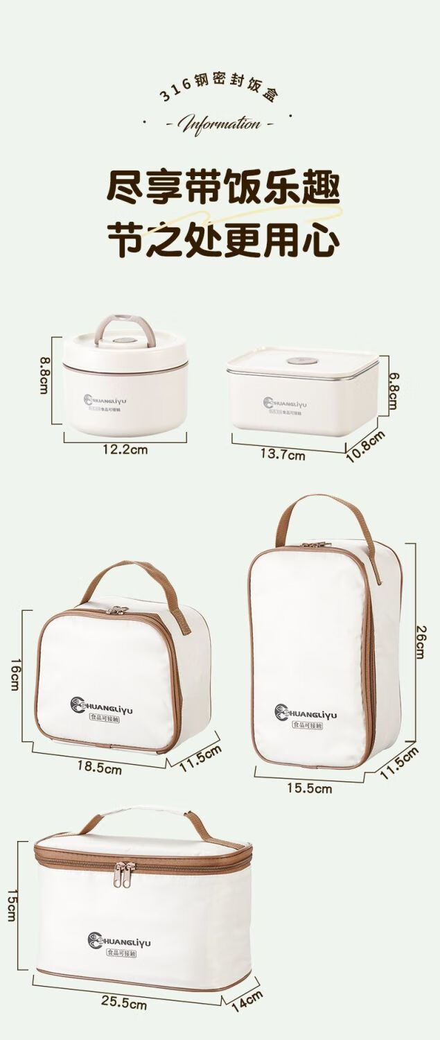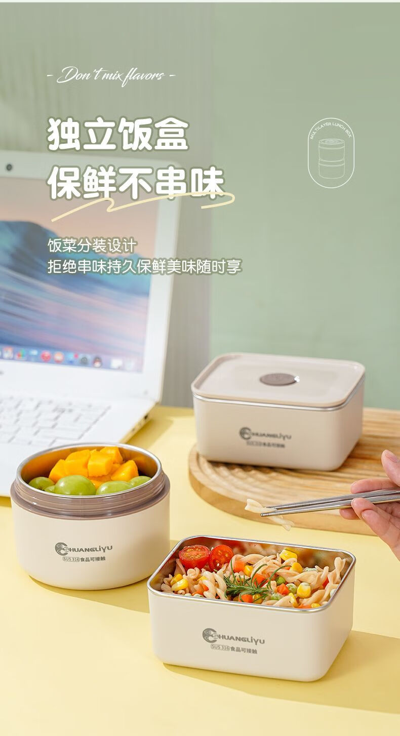 Fanxiang 316 stainless steel insulated lunch box, microwave oven special lunch box, multifunctional lunch box for office workers, student lunch box 600ml*4 (2 squares, 2 circles), free tableware + thermal bag