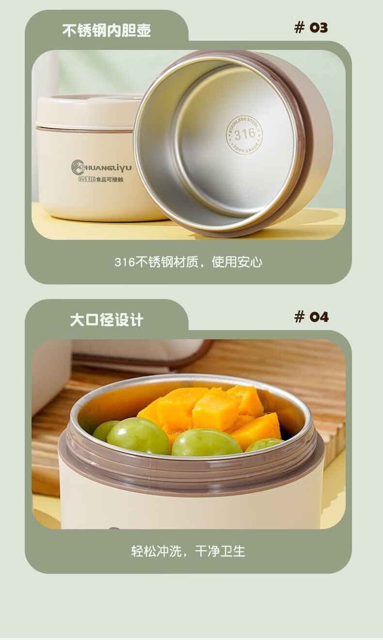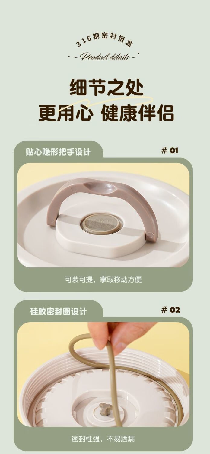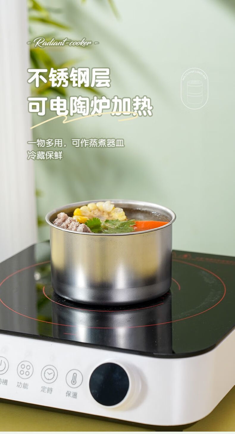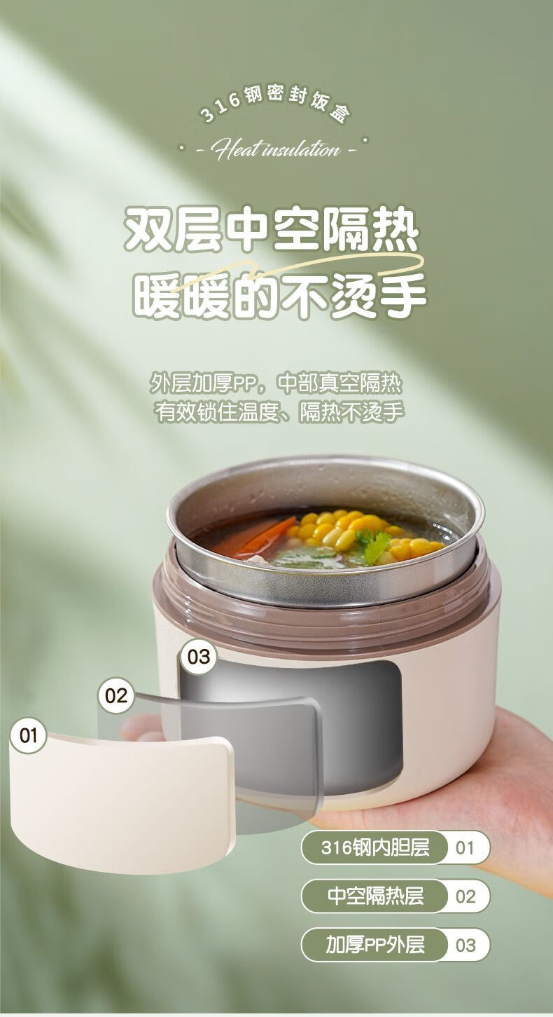 Fanxiang 316 stainless steel insulated lunch box, microwave oven special lunch box, multifunctional lunch box for office workers, student lunch box 600ml*4 (2 squares, 2 circles), free tableware + thermal bag