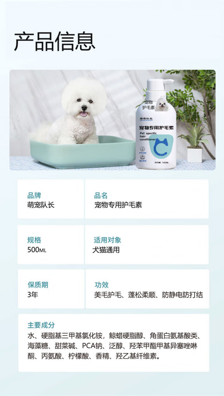 Pet Dog Cat Hair Conditioner Conditioner Teddy Bichon Long Hair Fluffy Nourishing, Smooth, Knot-Free and Anti-shedding Smooth Hair Care Set Knot Opening Spray + Hair Conditioner