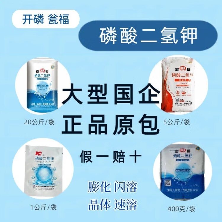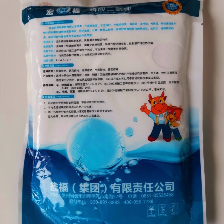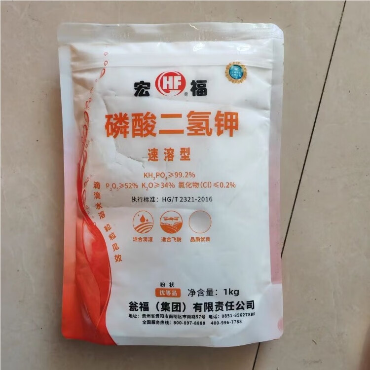 Hongfu Wengfu 99% high purity universal potassium dihydrogen phosphate large packaging agricultural foliar fertilizer Hongfu powder instant crystal 2Jin Jin equal to 0.5kg expanded powder