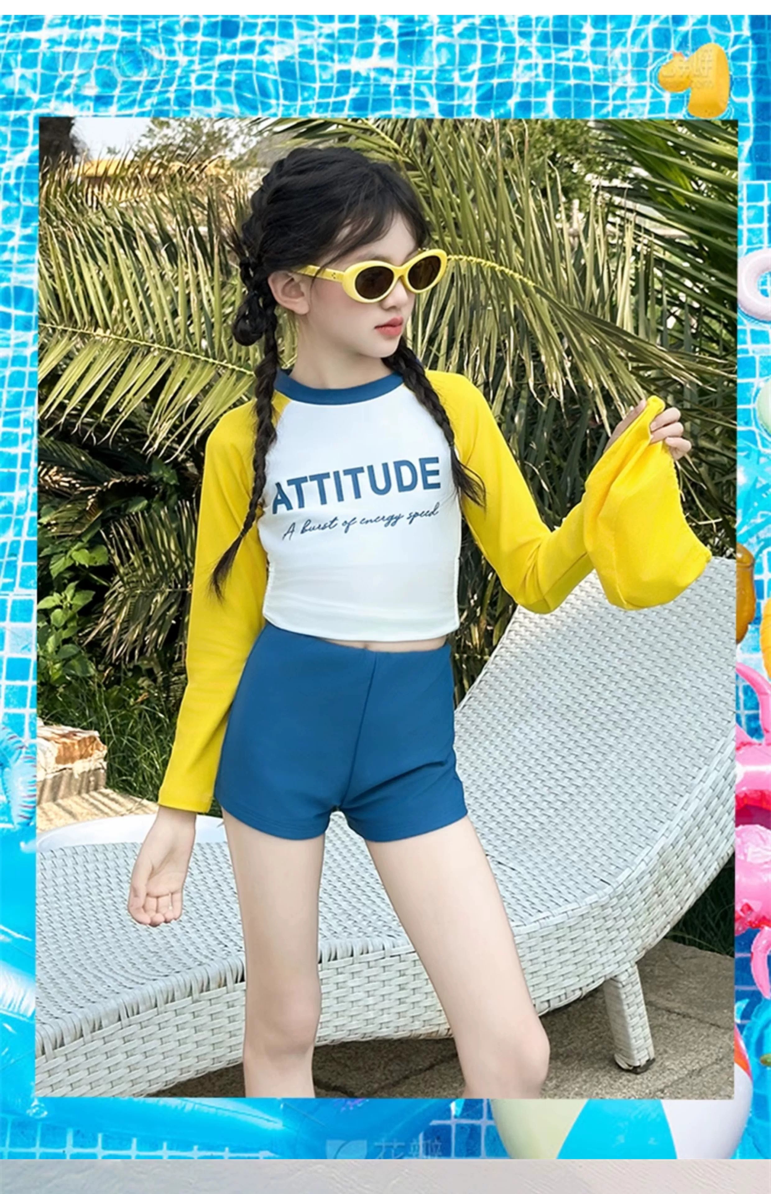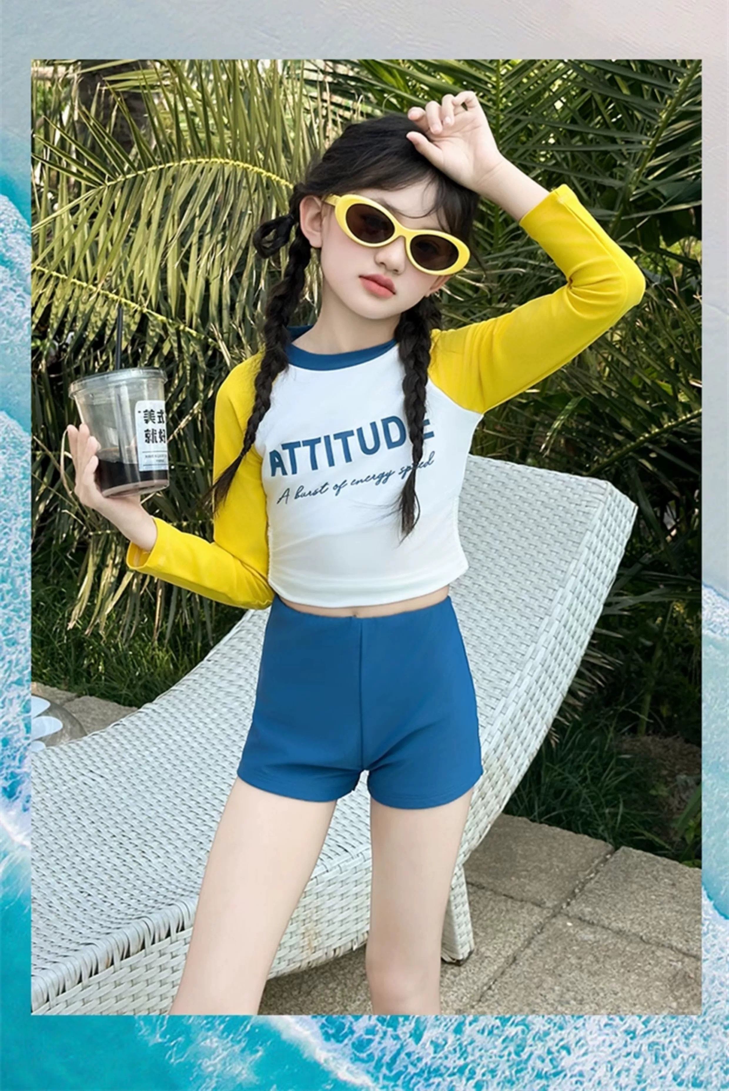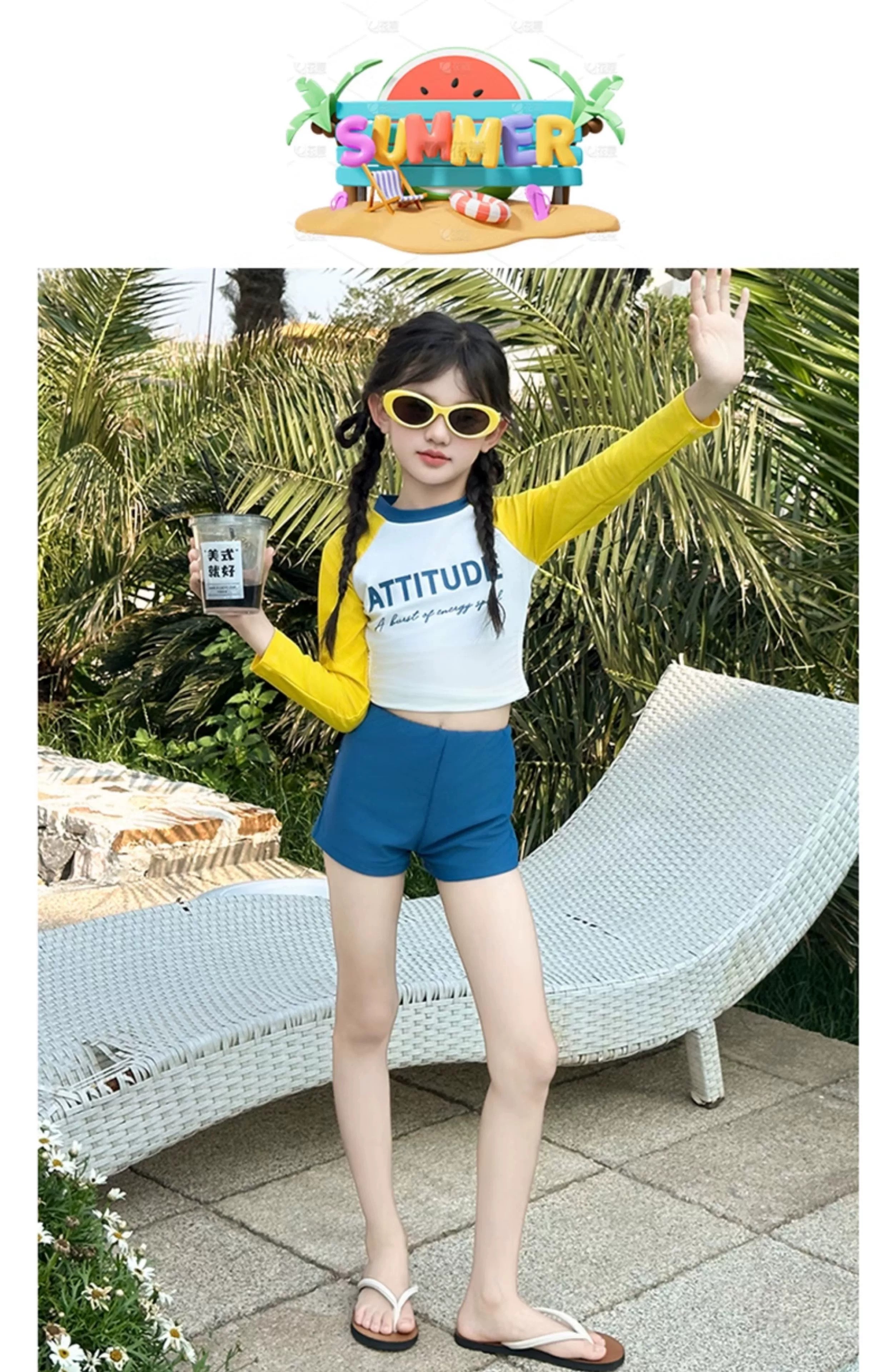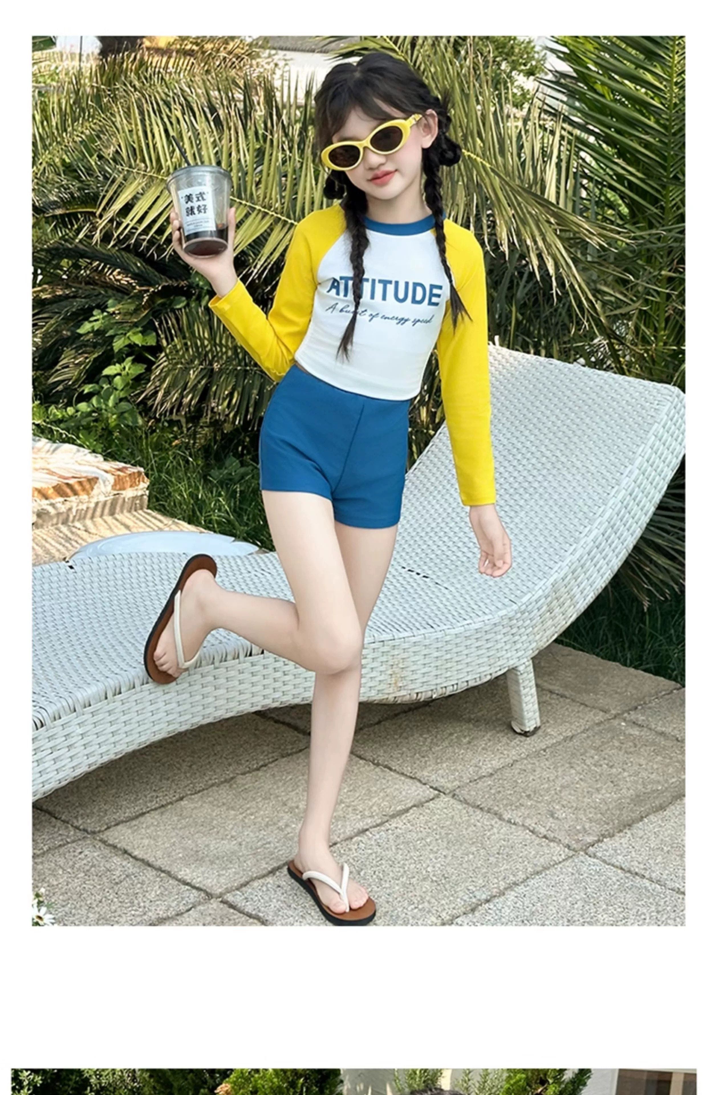 Children's swimsuit summer 2025 new style girl's long-sleeved sunscreen split swimsuit girls dopamine swimsuit dopamine swimsuit free swimming cap 160 with removable chest pad
