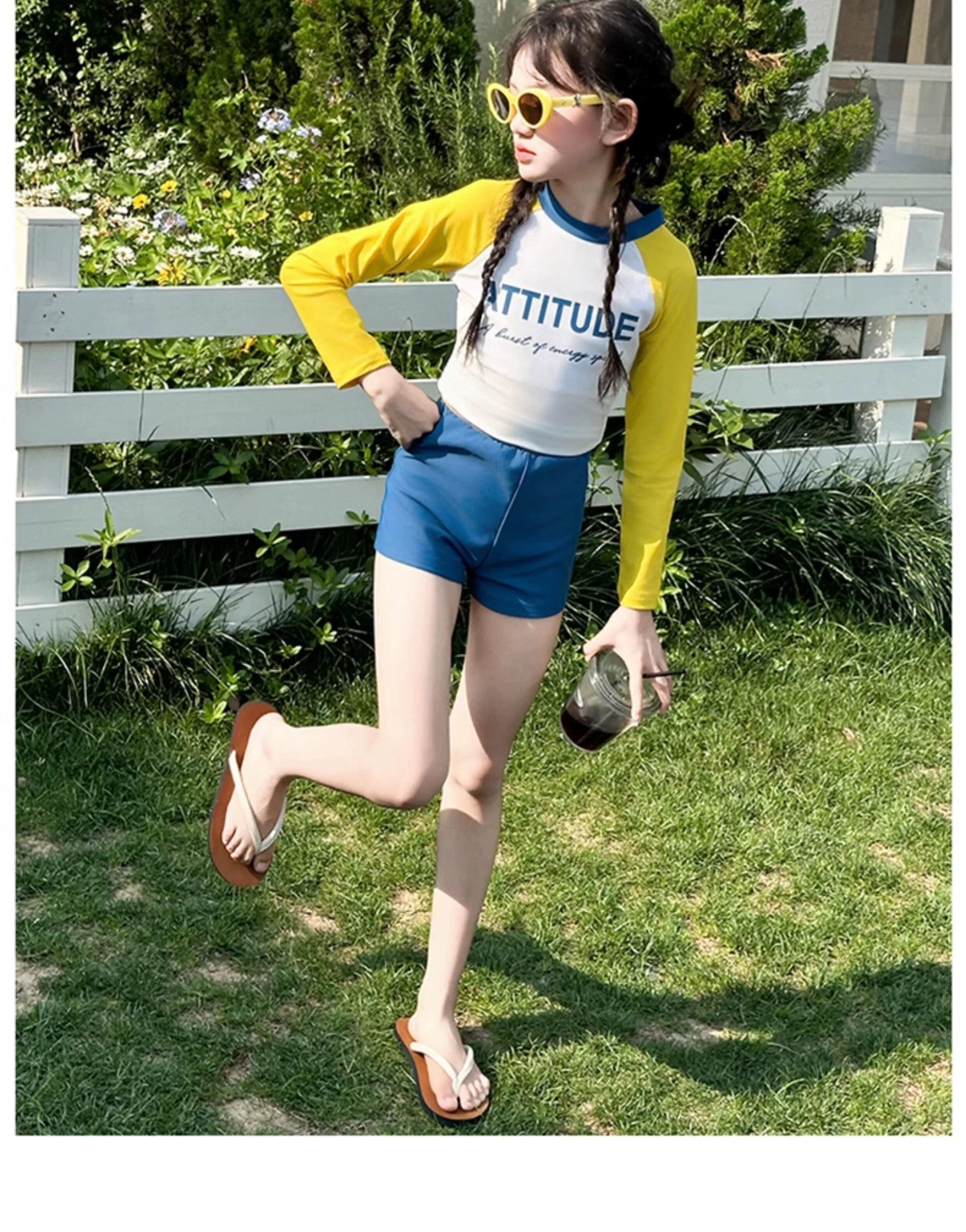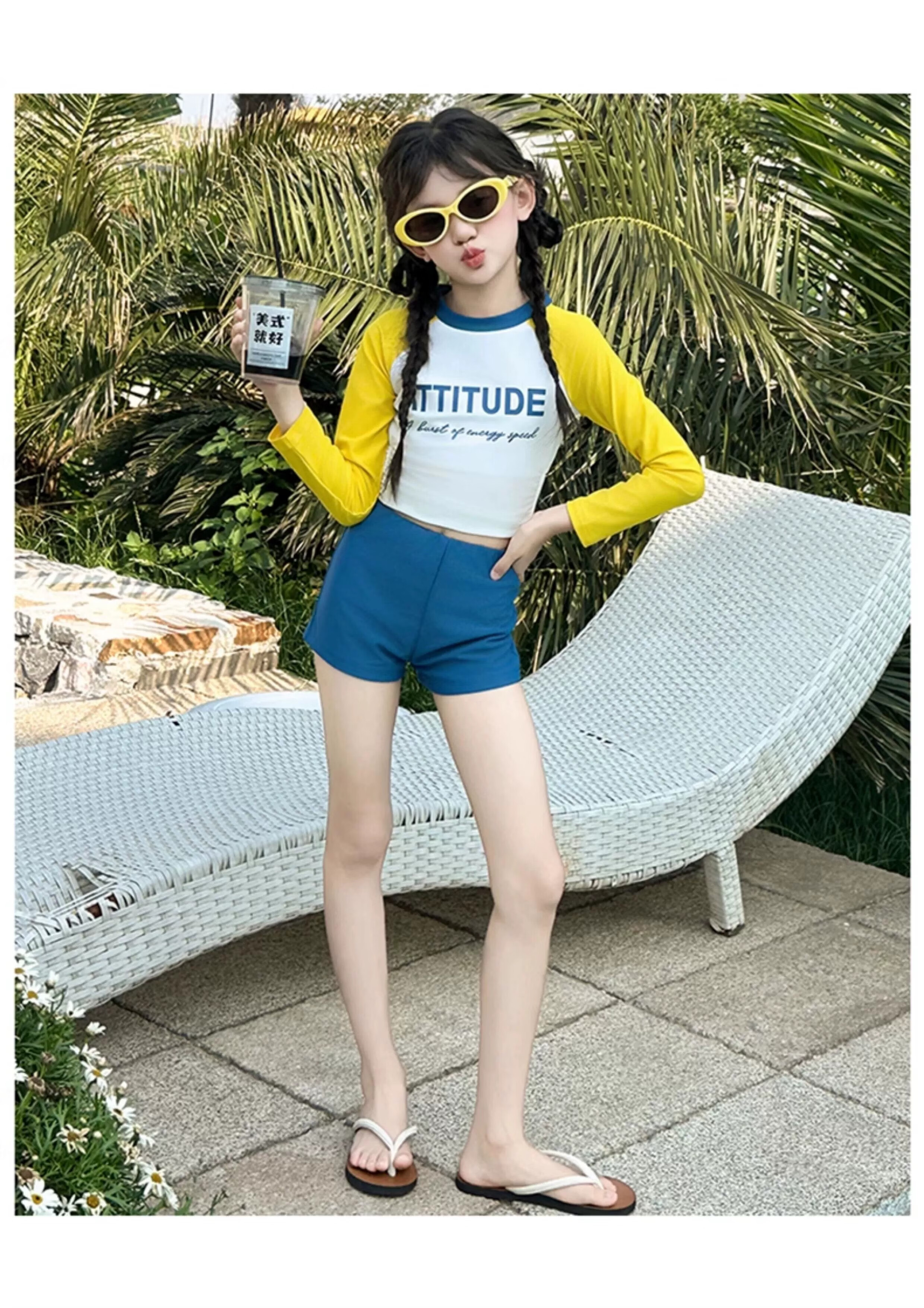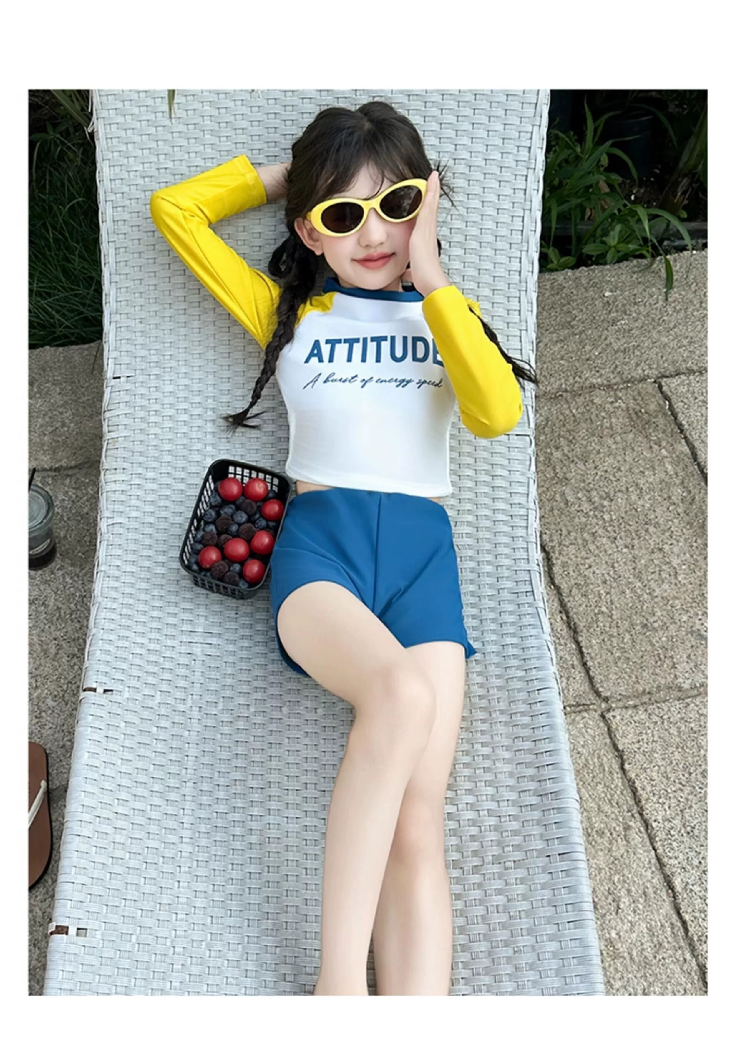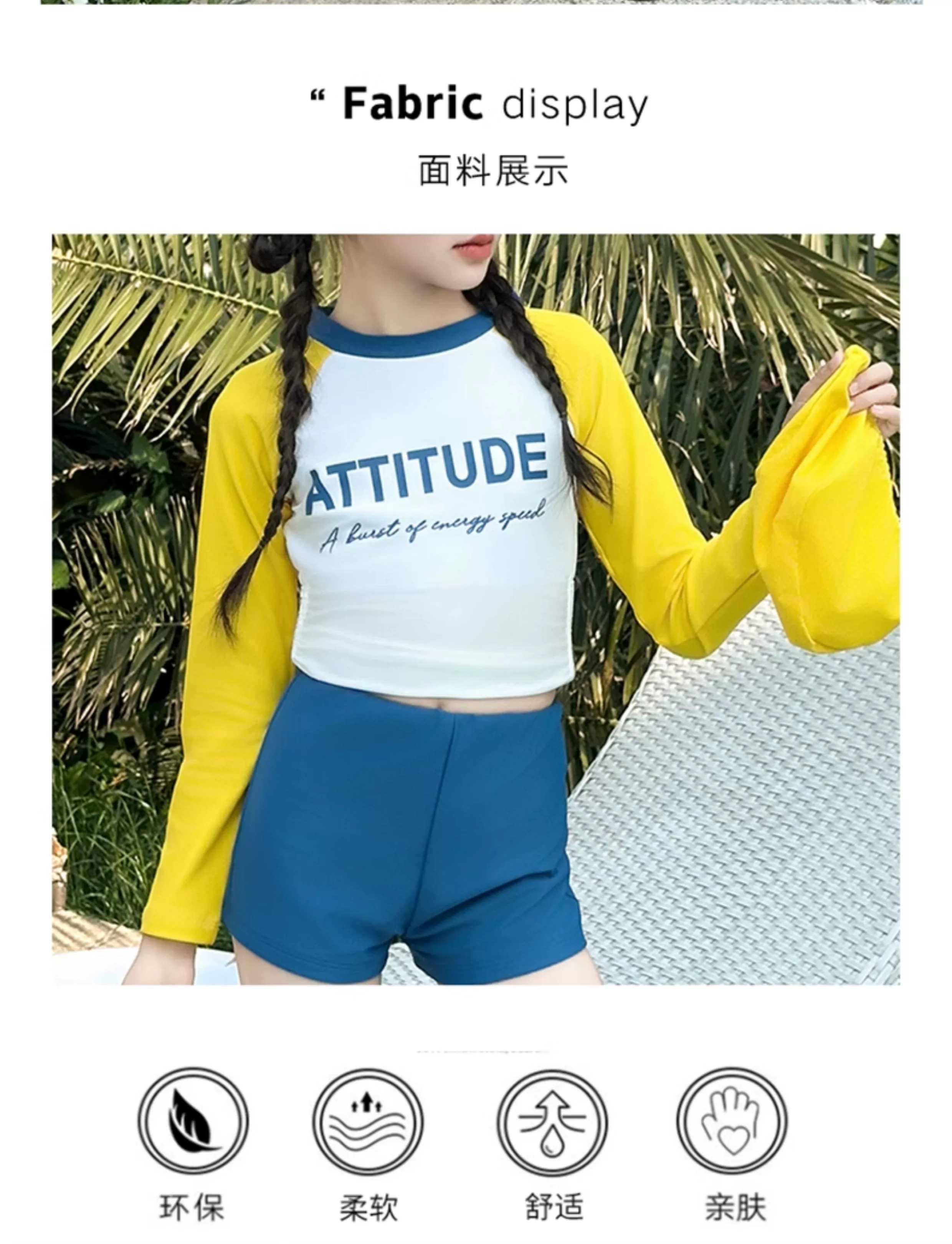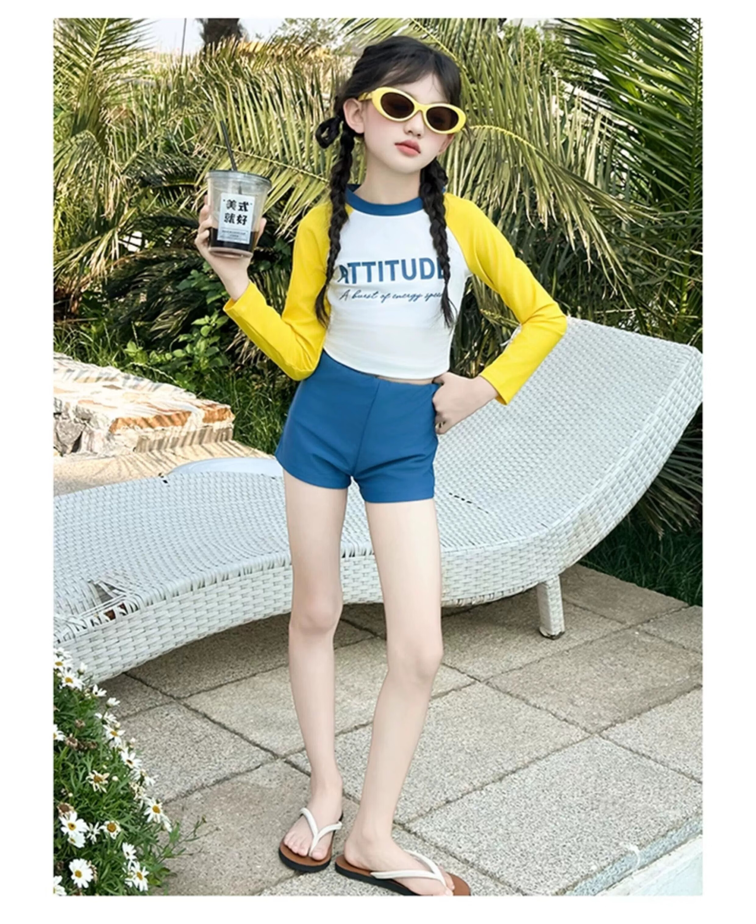 Children's swimsuit summer 2025 new style girl's long-sleeved sunscreen split swimsuit girls dopamine swimsuit dopamine swimsuit free swimming cap 160 with removable chest pad
