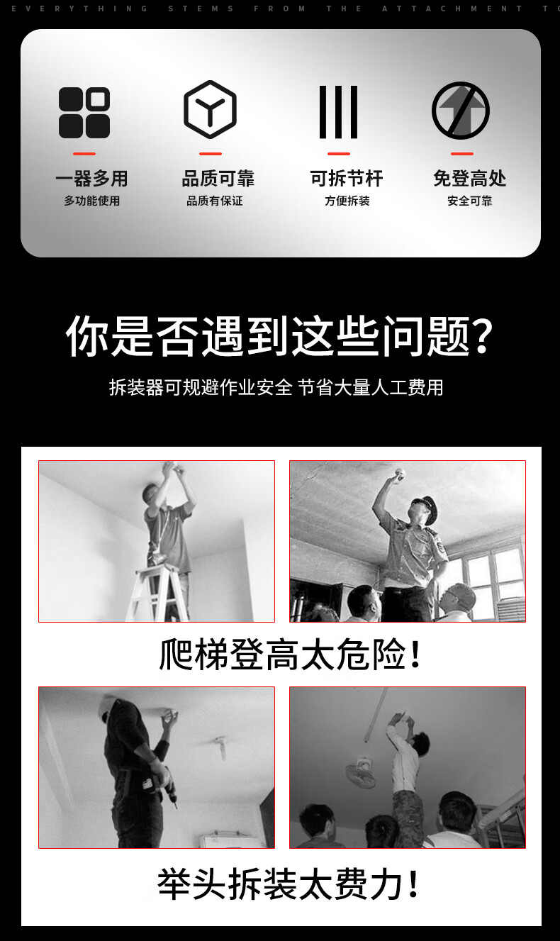 Smoke detector disassembly and installation artifact, fire temperature alarm detector, no need to climb high to dismantle and disassemble the installation rod tool, conventional small claw-only claw