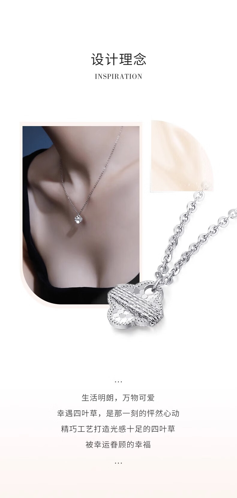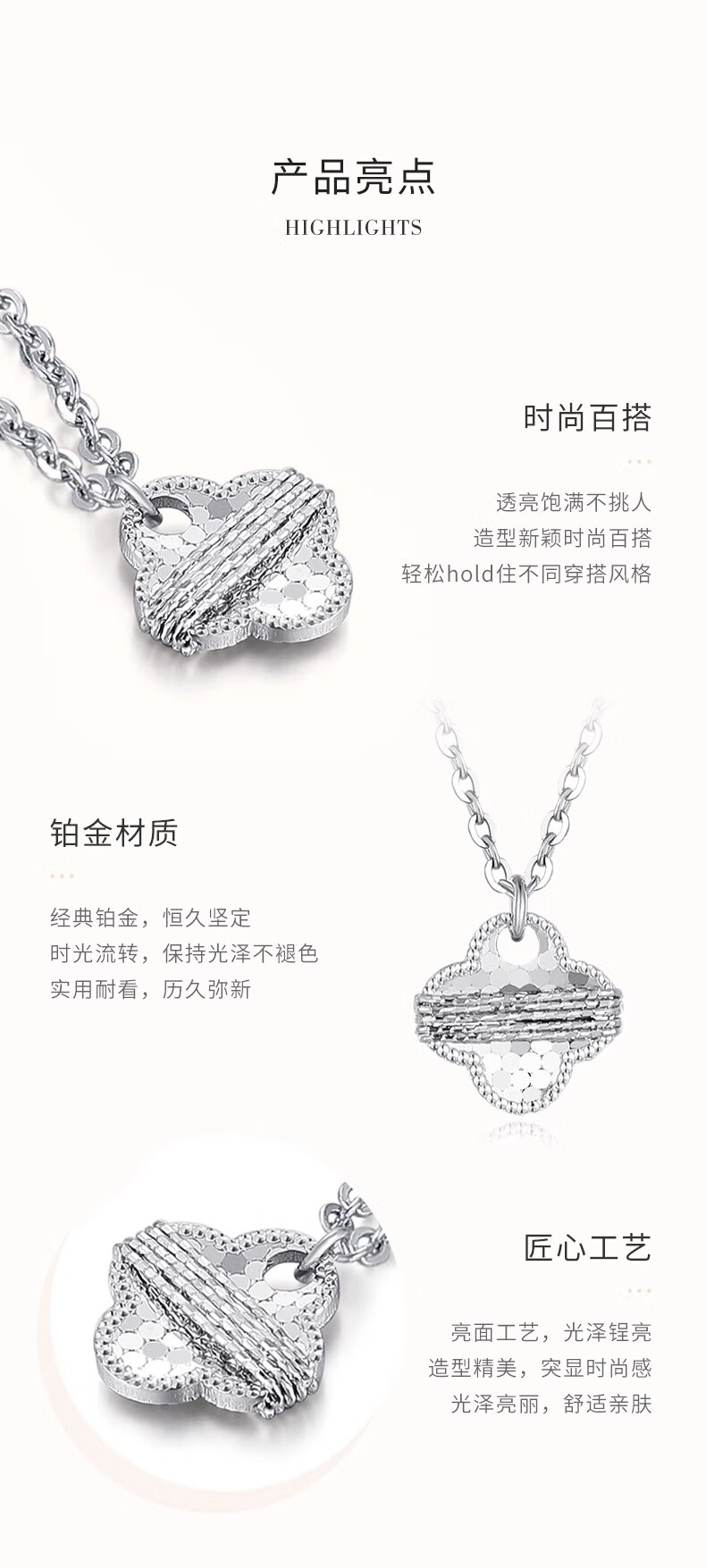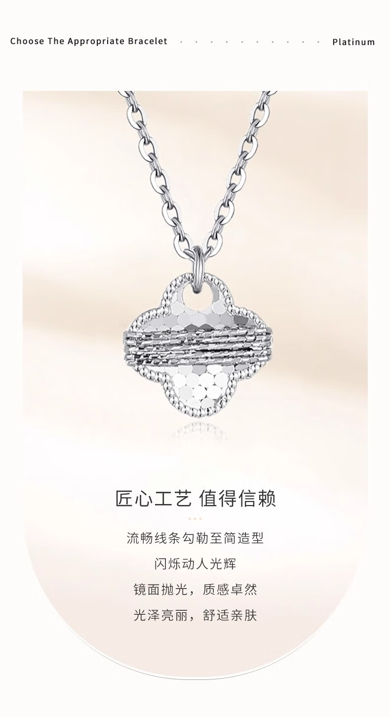China Gold (CHINA GOLD) PT950 platinum crushed ice ice necklace women's winding four-leaf clover Valentine's Day birthday gift for girlfriend and wife Platinum crushed ice four-leaf clover necklace about 4.8g