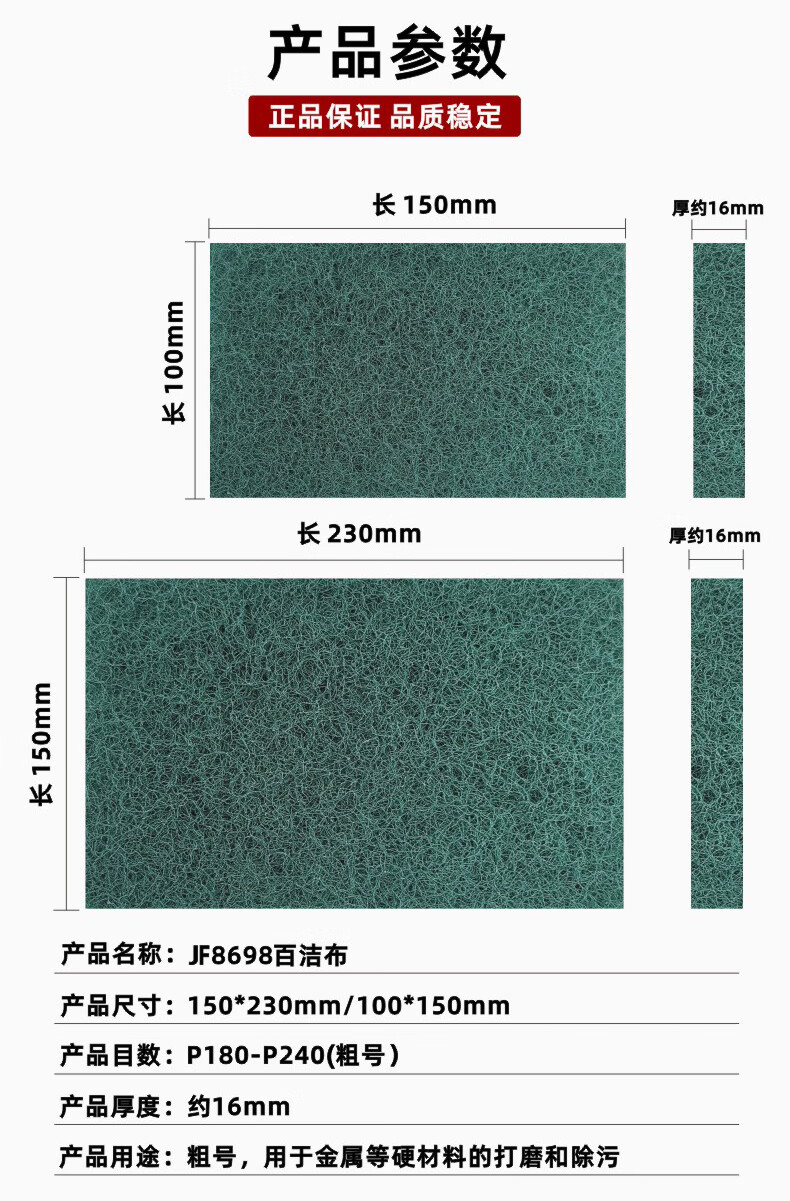 Imported 8698 industrial scouring pad square emery stainless steel polished brushed cloth rust removal pot kitchen cleaning JF8698 green 100 pieces 150*100mm