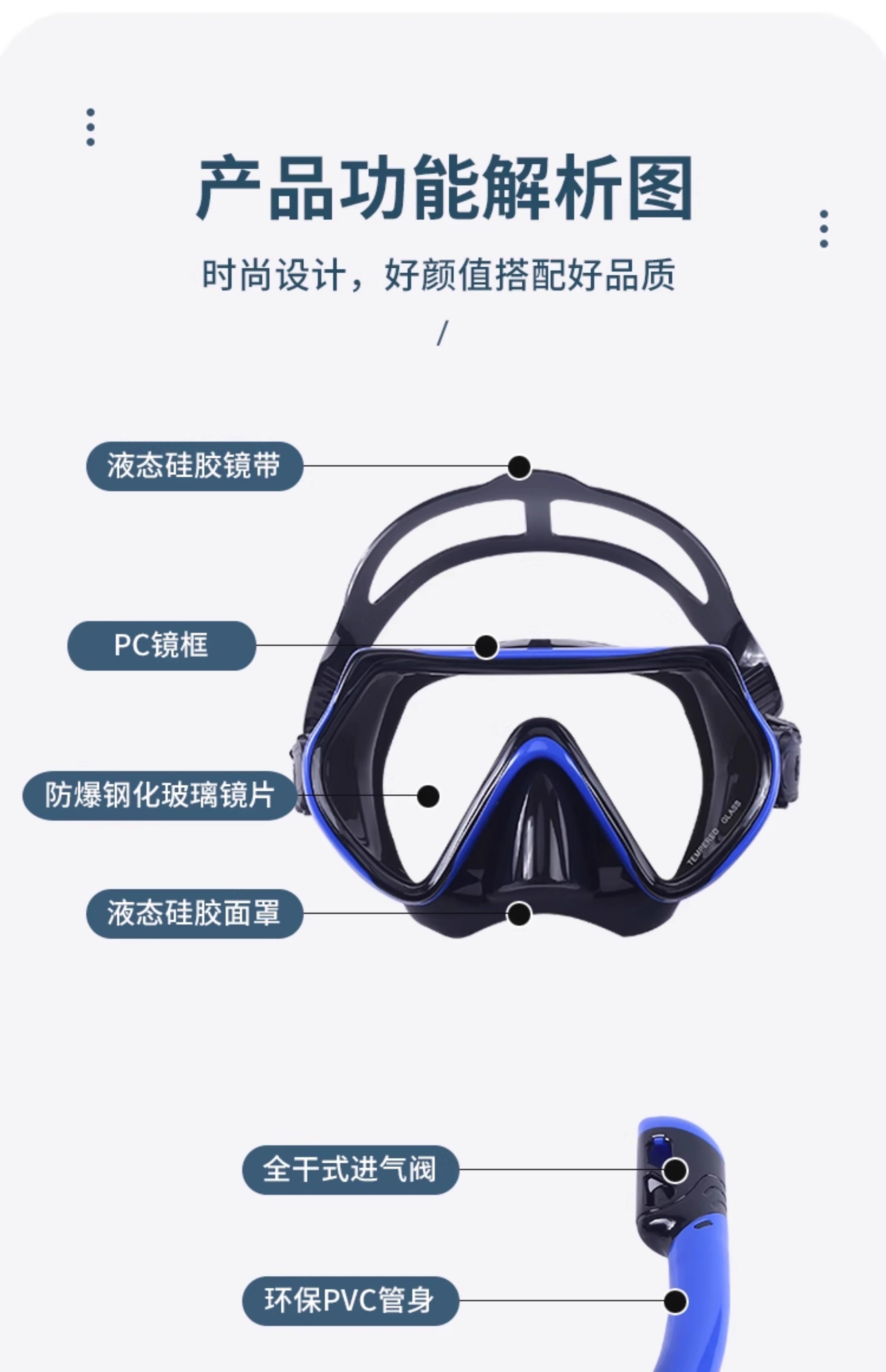Swimming goggles children's snorkeling Sambo diving goggles mask anti-choking fully dry breathing tube fins swimming goggles equipment ZHY308+198 yellow and white gold-plated + yellow and white suit one size