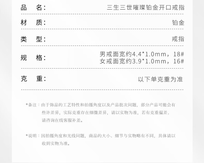 China Gold (CHINA GOLD) Platinum Pair Ring Three Lives Three Worlds Ring Platinum Living Ring for Girlfriend and Wife Birthday Gift Men's Ring About 6.3g Single Opening Adjustable