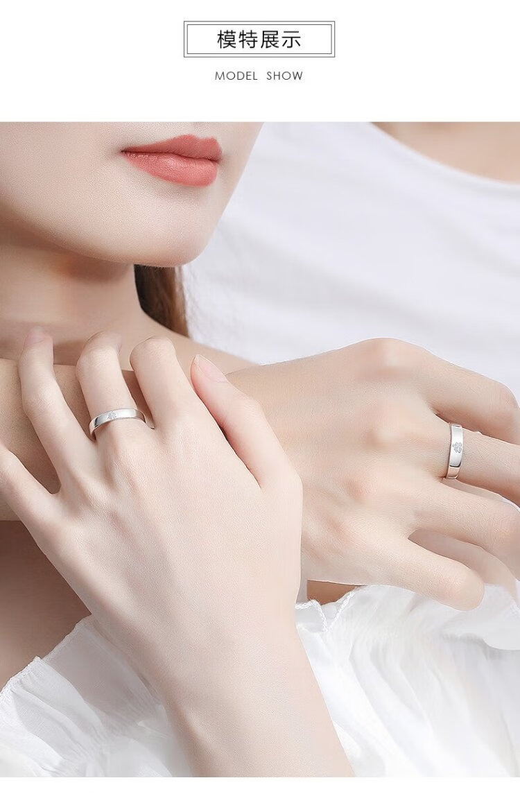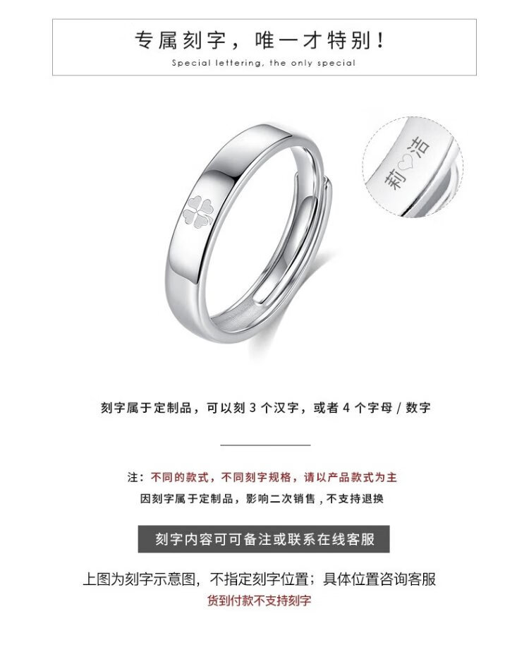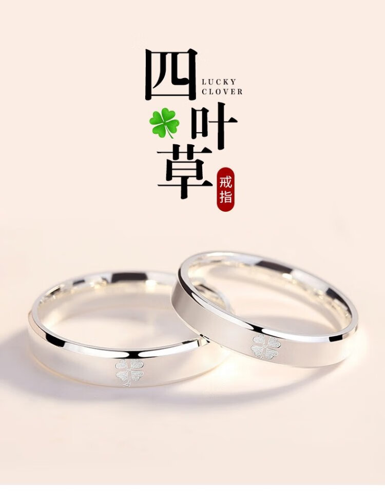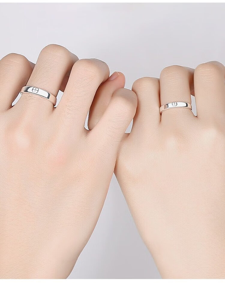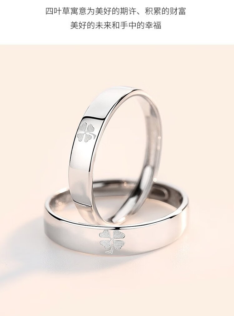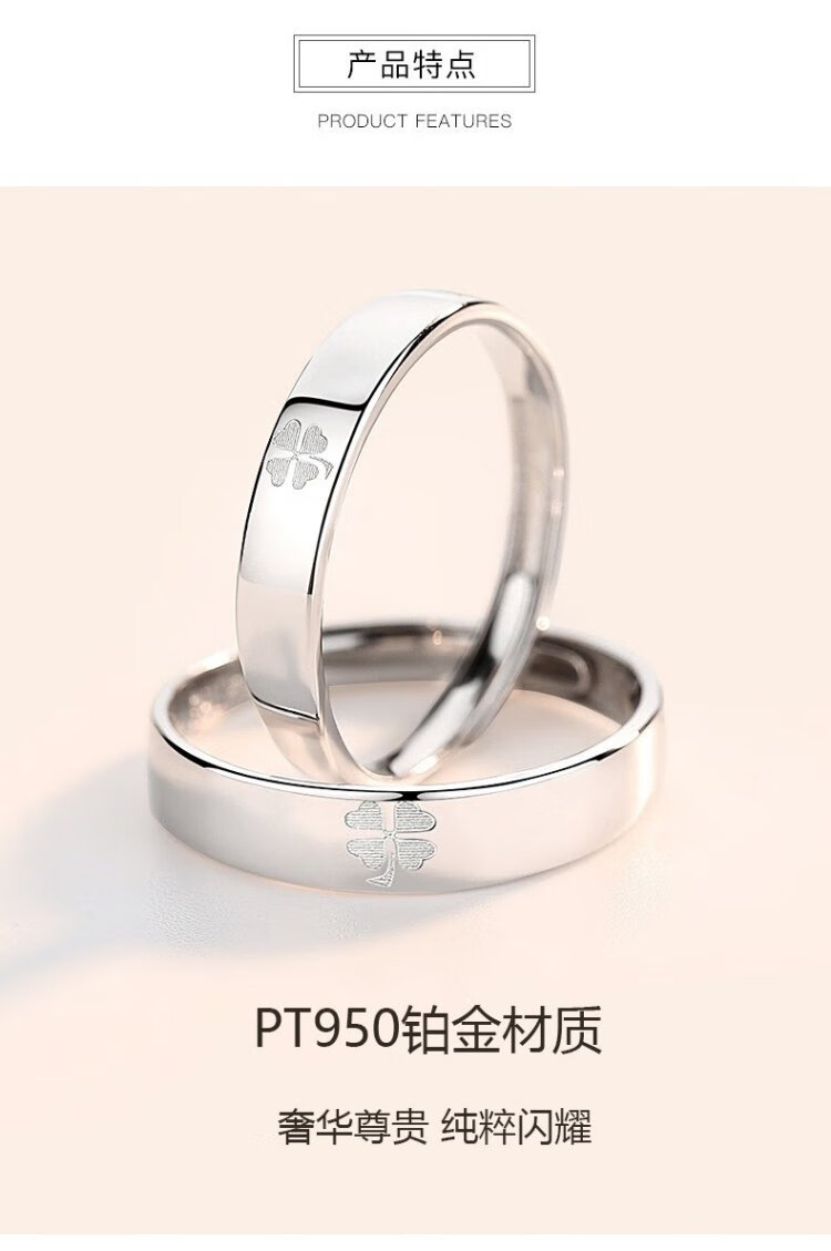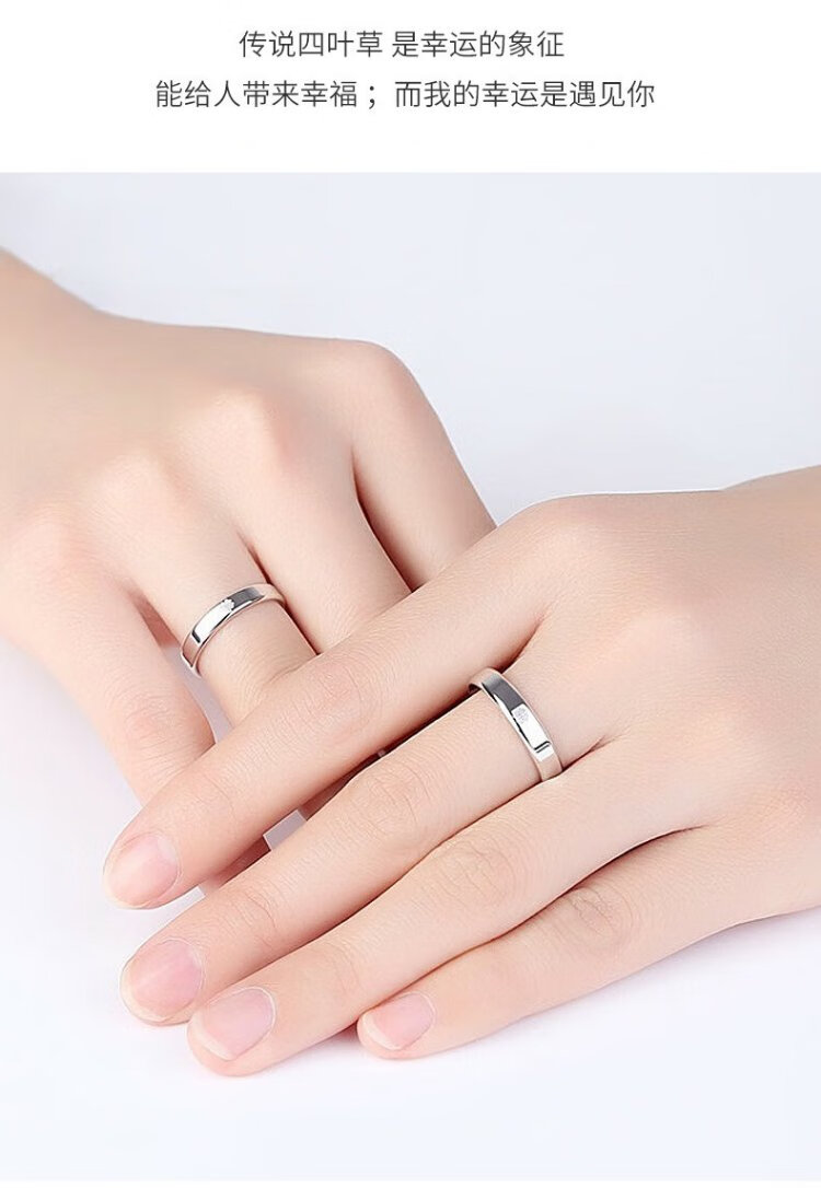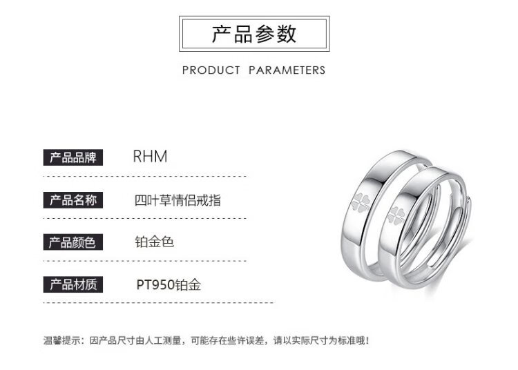 RHM four-leaf clover platinum couple ring simple platinum ring men's and women's ring plain ring birthday and Valentine's Day gift for girlfriend Platinum couple ring pair + certificate + gift box