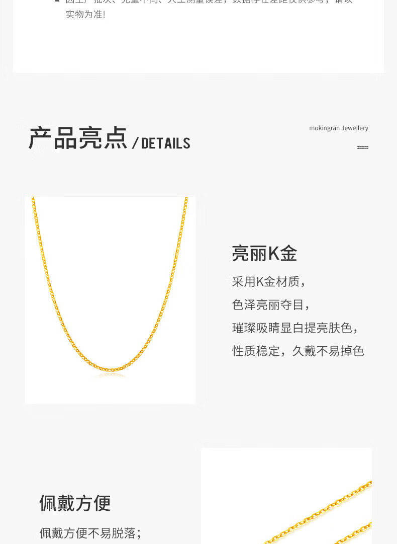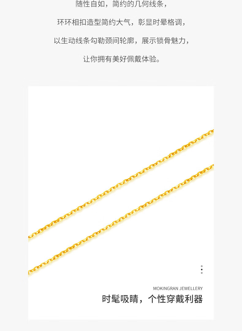 Yellow O-shaped chain 22K gold plain chain necklace for women AU916 color gold necklace, about 2.02g, chain length 45cm (gram weight is based on actual
